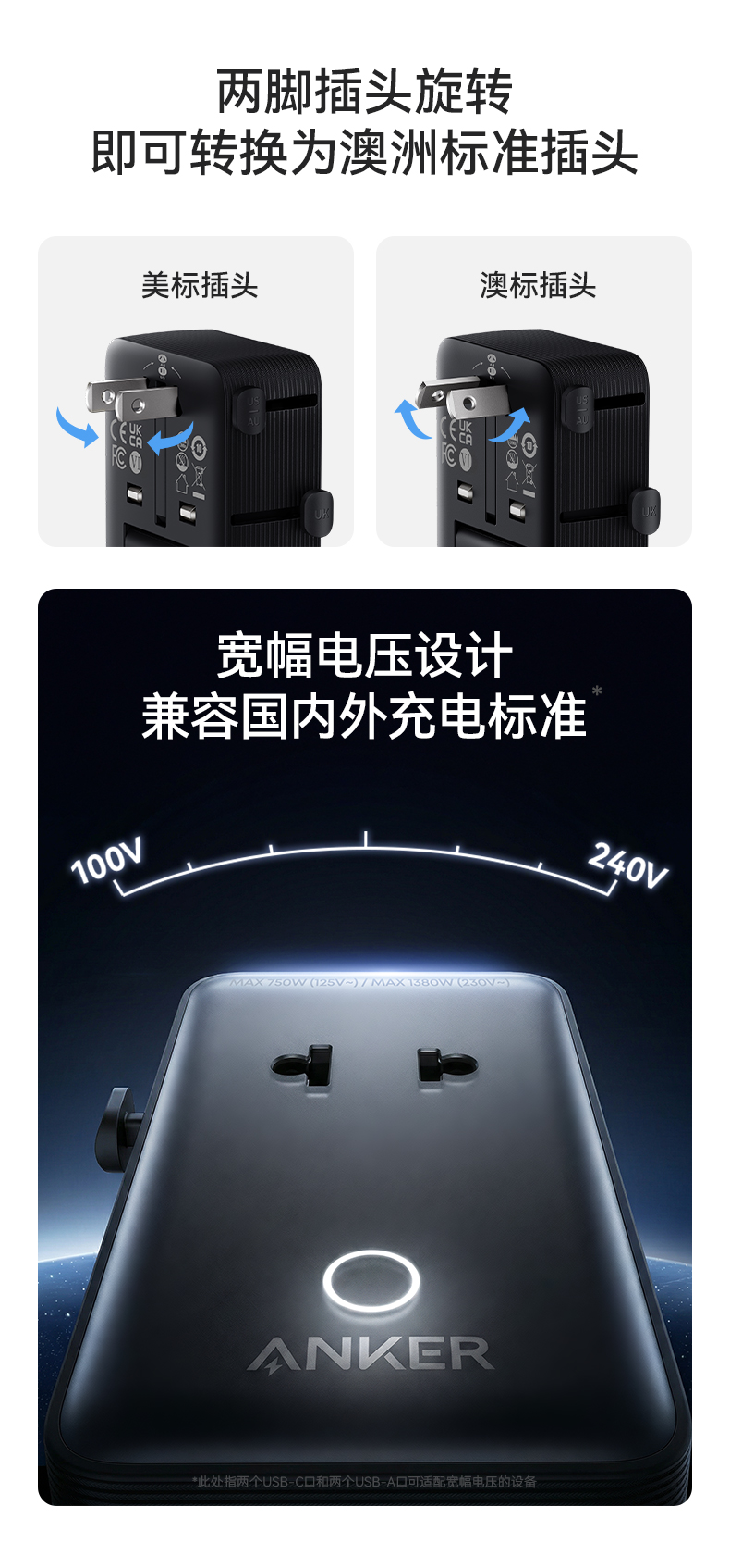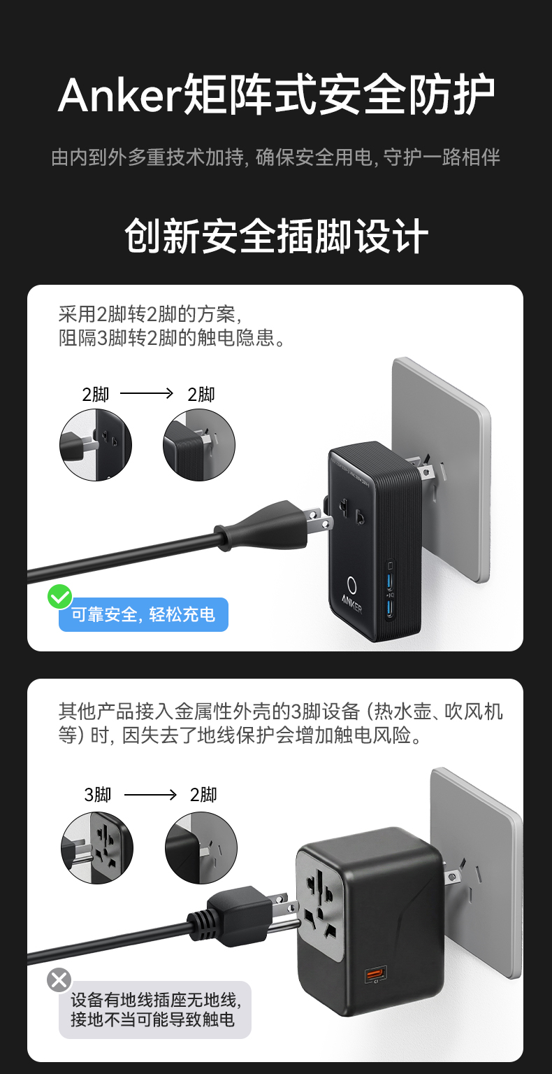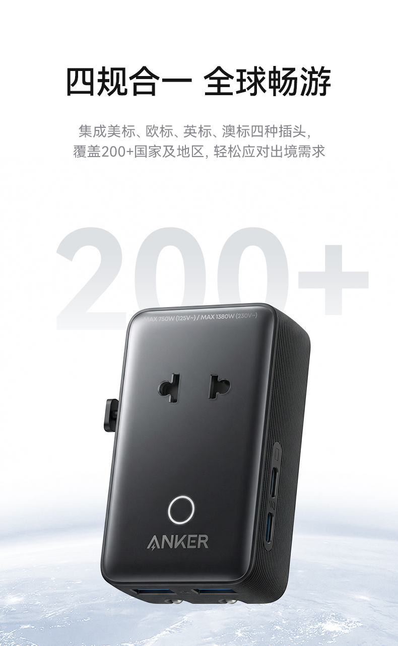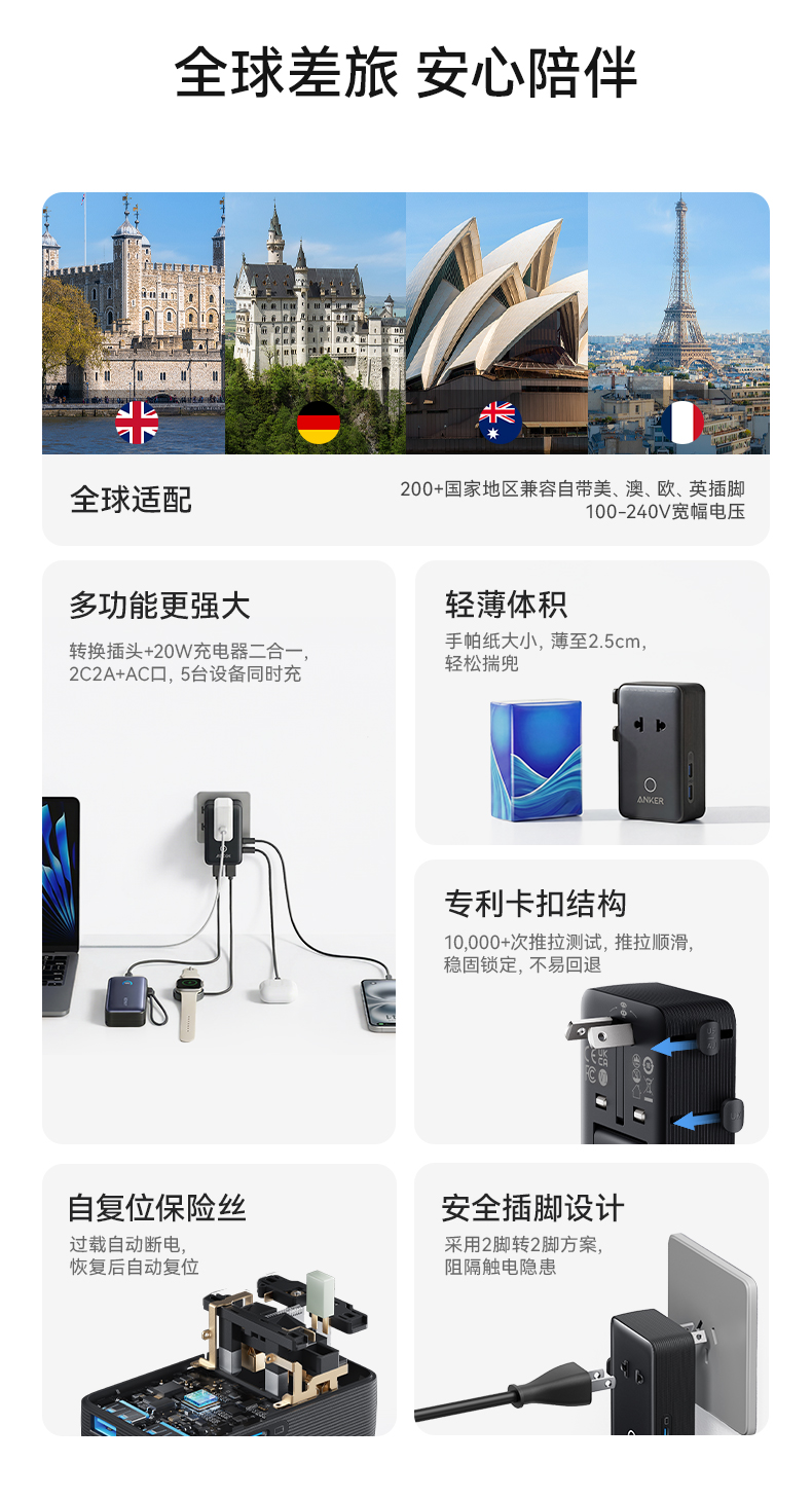 Anker安克 多国转换插头 自带英标欧标美澳旅充 A9215
