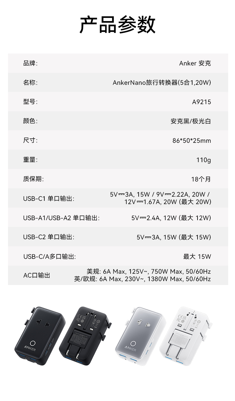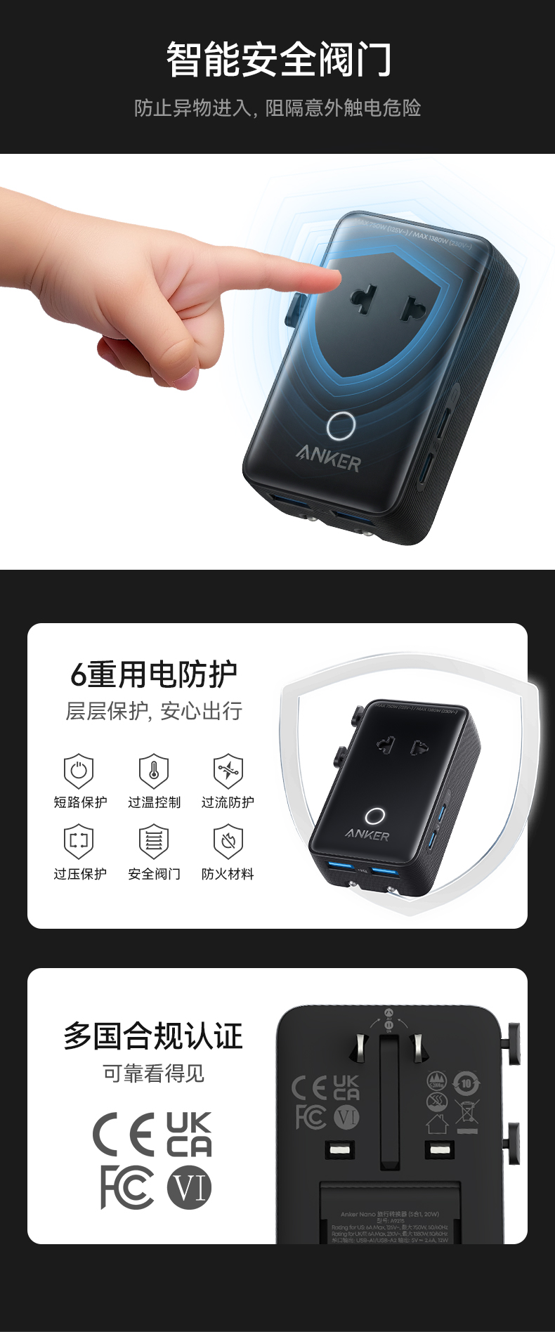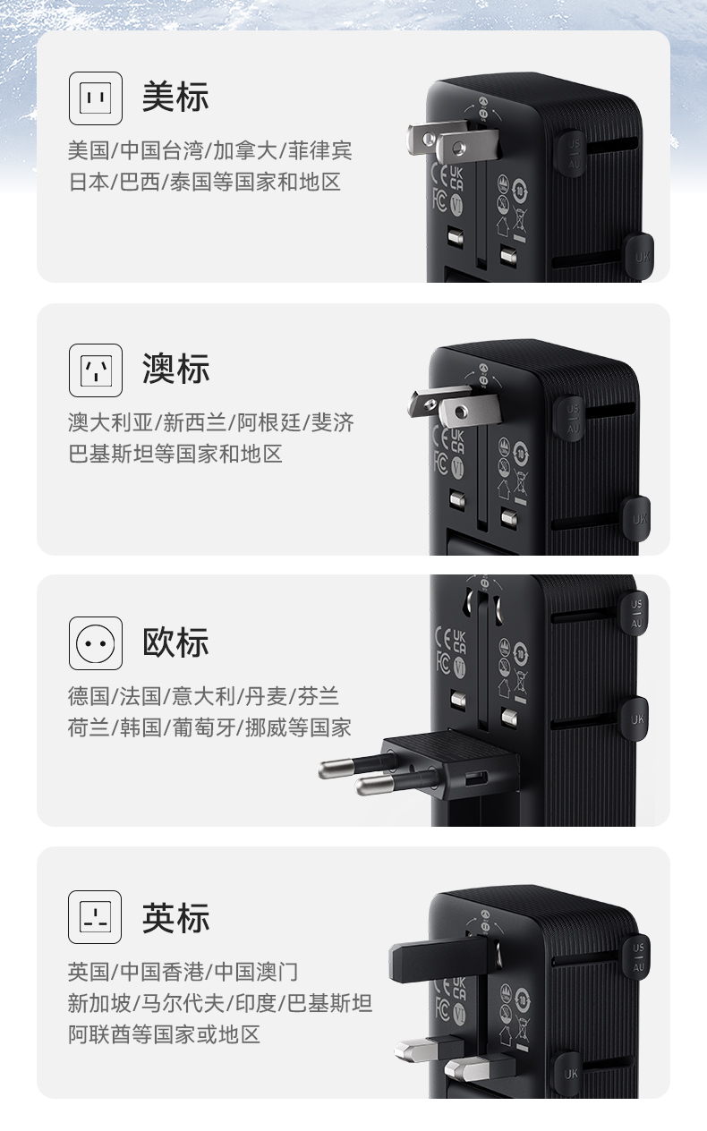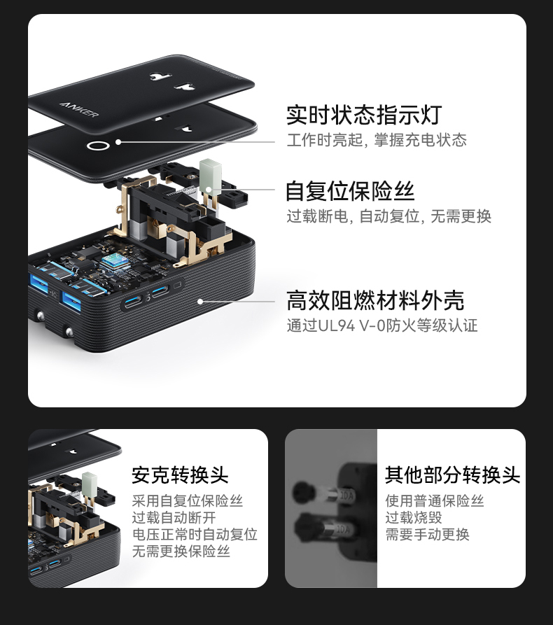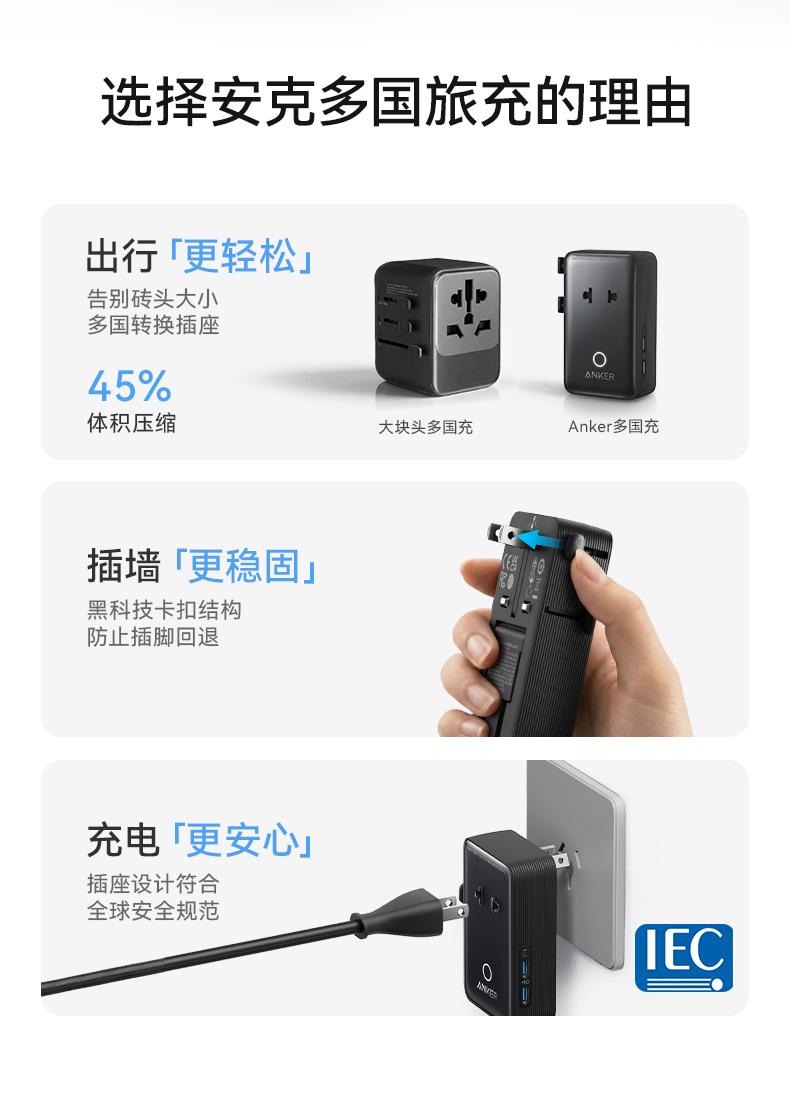 Anker安克 多国转换插头 自带英标欧标美澳旅充 A9215