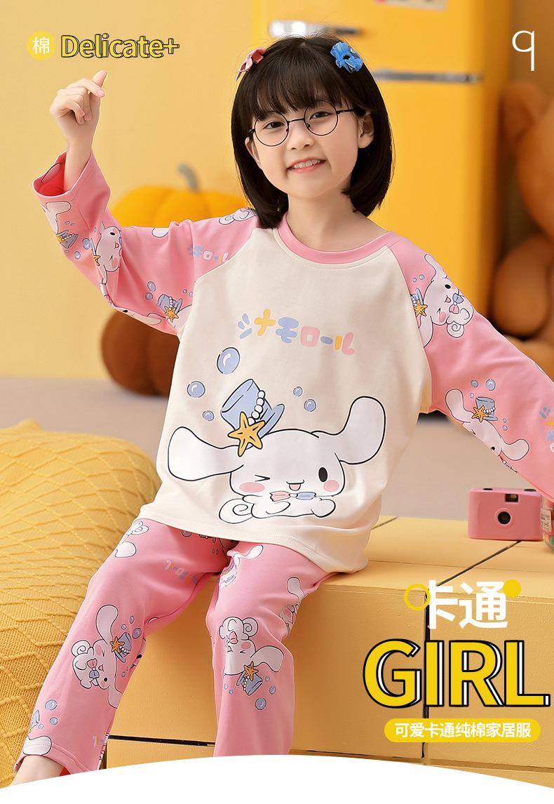 女童睡衣秋季2023新款纯棉薄款长袖套装儿童小女孩春秋洋气家居服