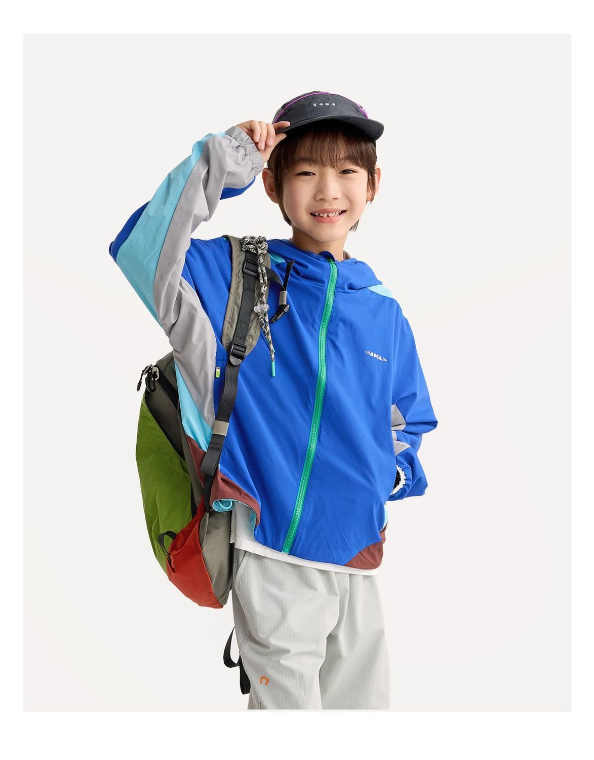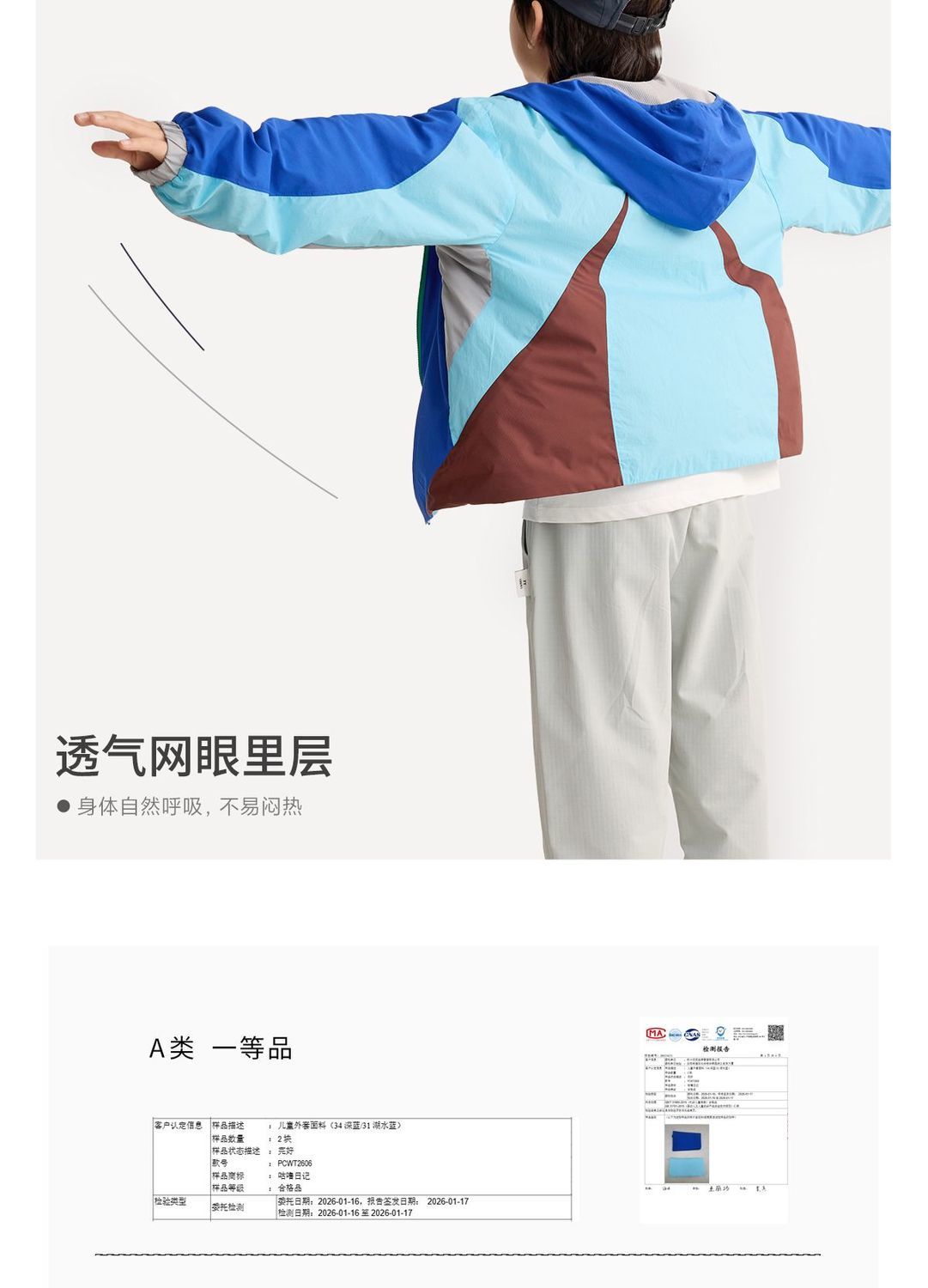 fx-咕噜日记儿童双层轻量夹克男童连帽2026春季女童拼色户外透气外套PCWT2606