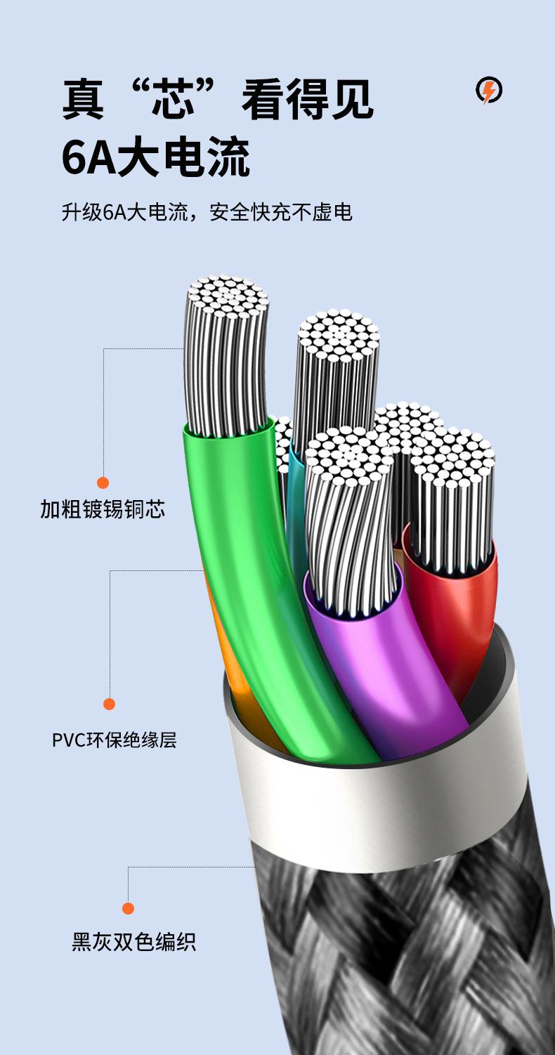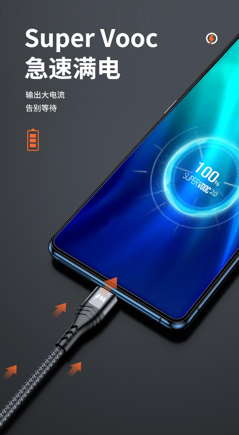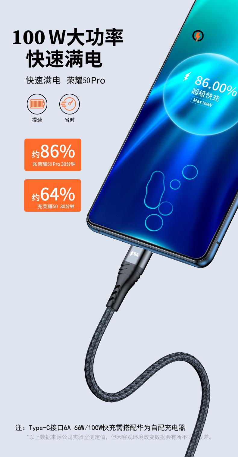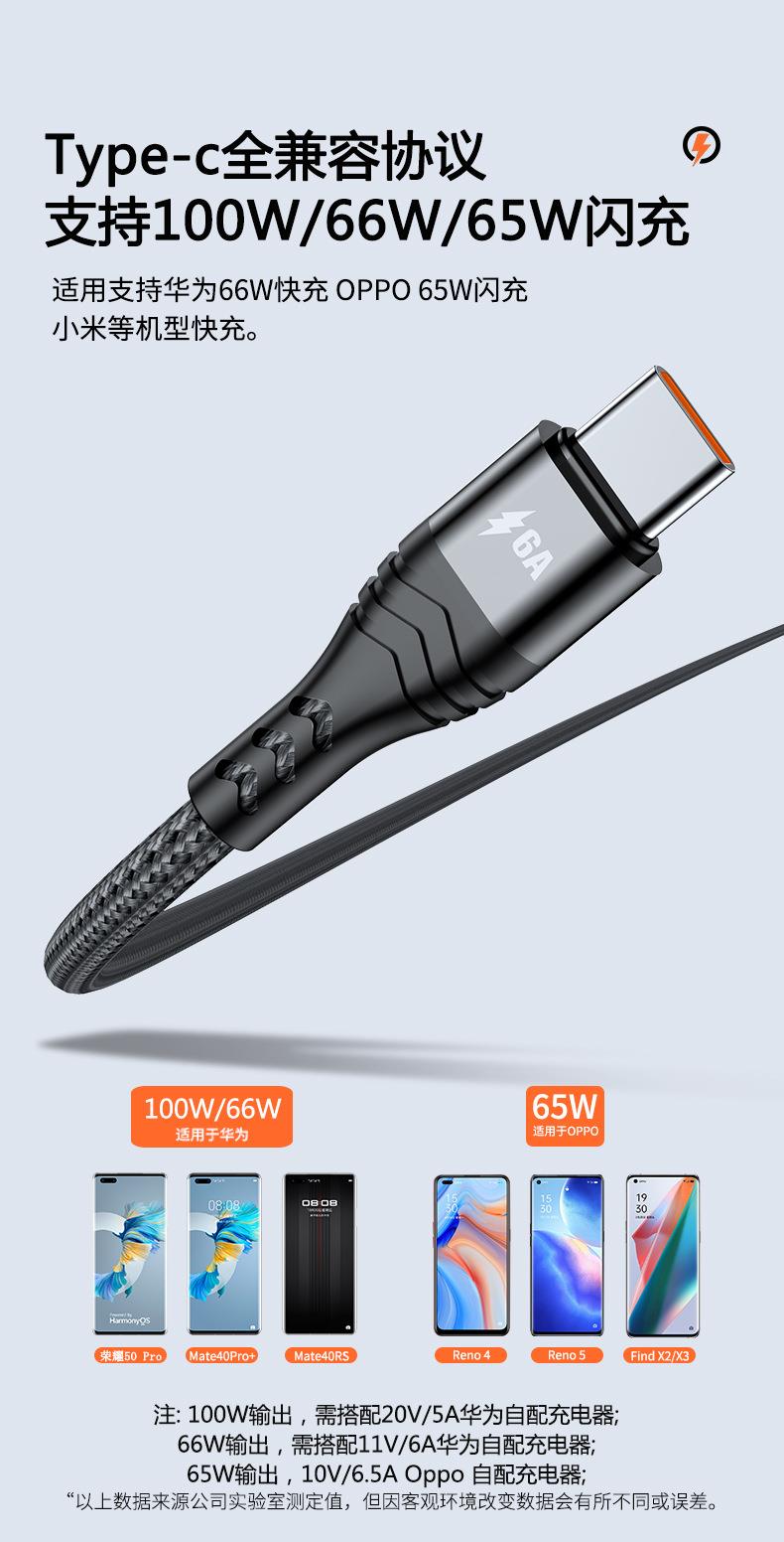 跨境PD100W一拖三6A超级快充数据线适用苹果type-c安卓全协议快充