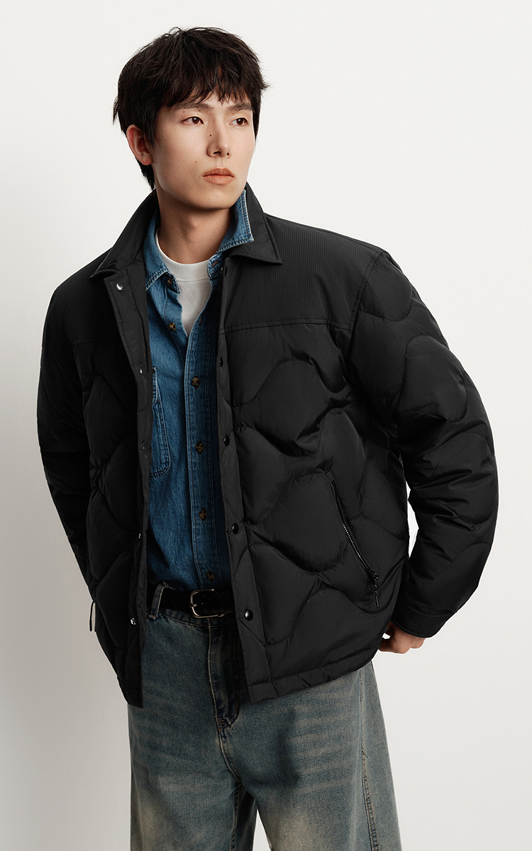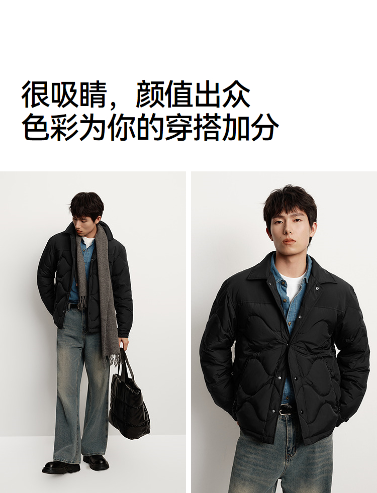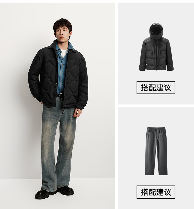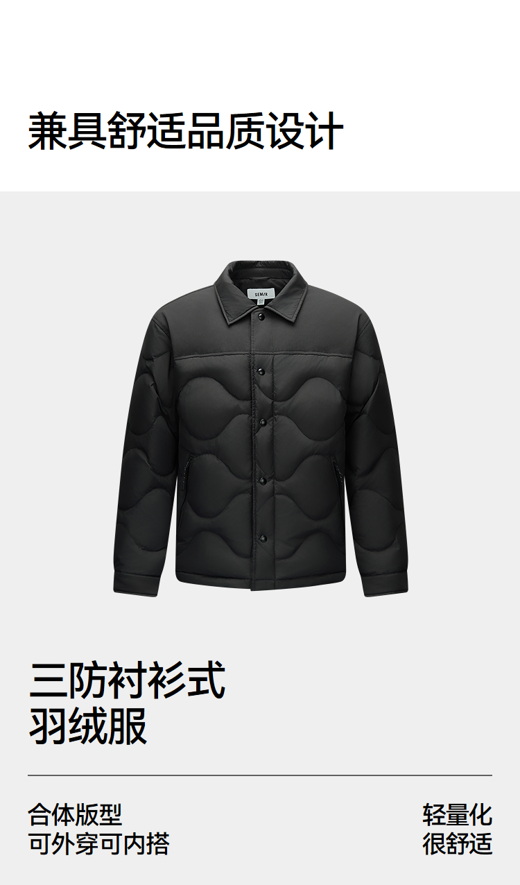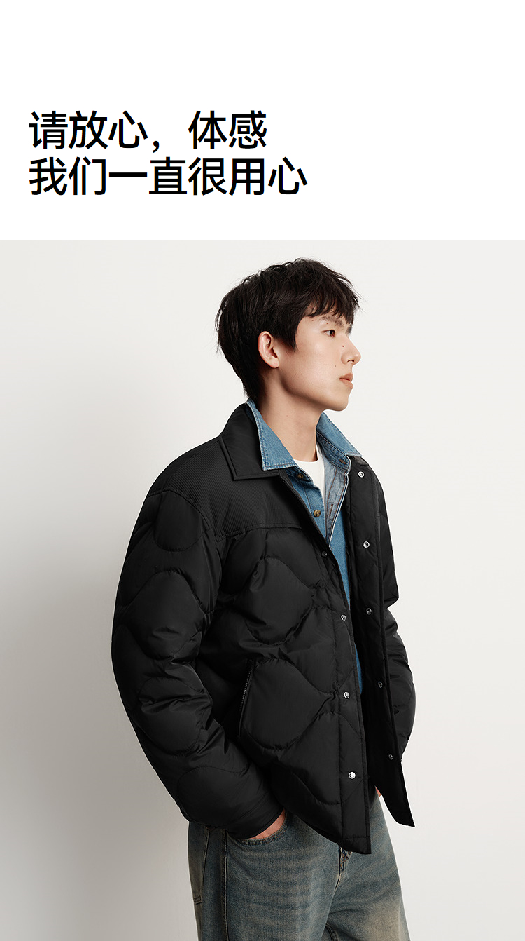 森马羽绒服男冬季80绒子三防衬衫式羽绒内胆2025新款拼接时尚外套
