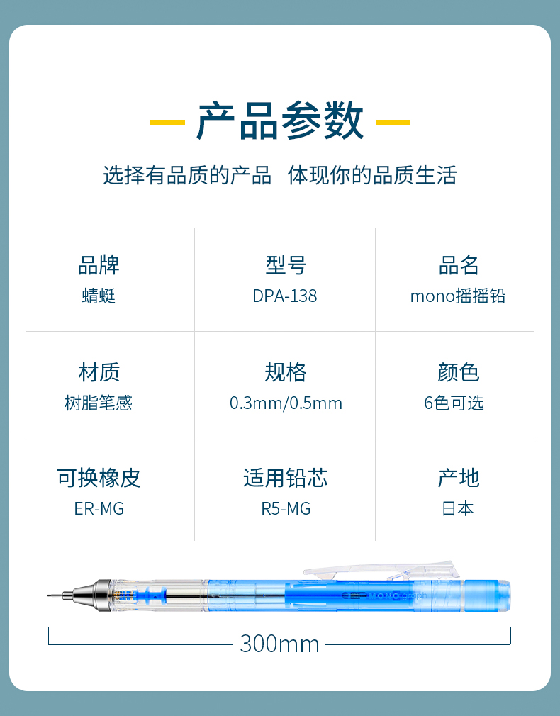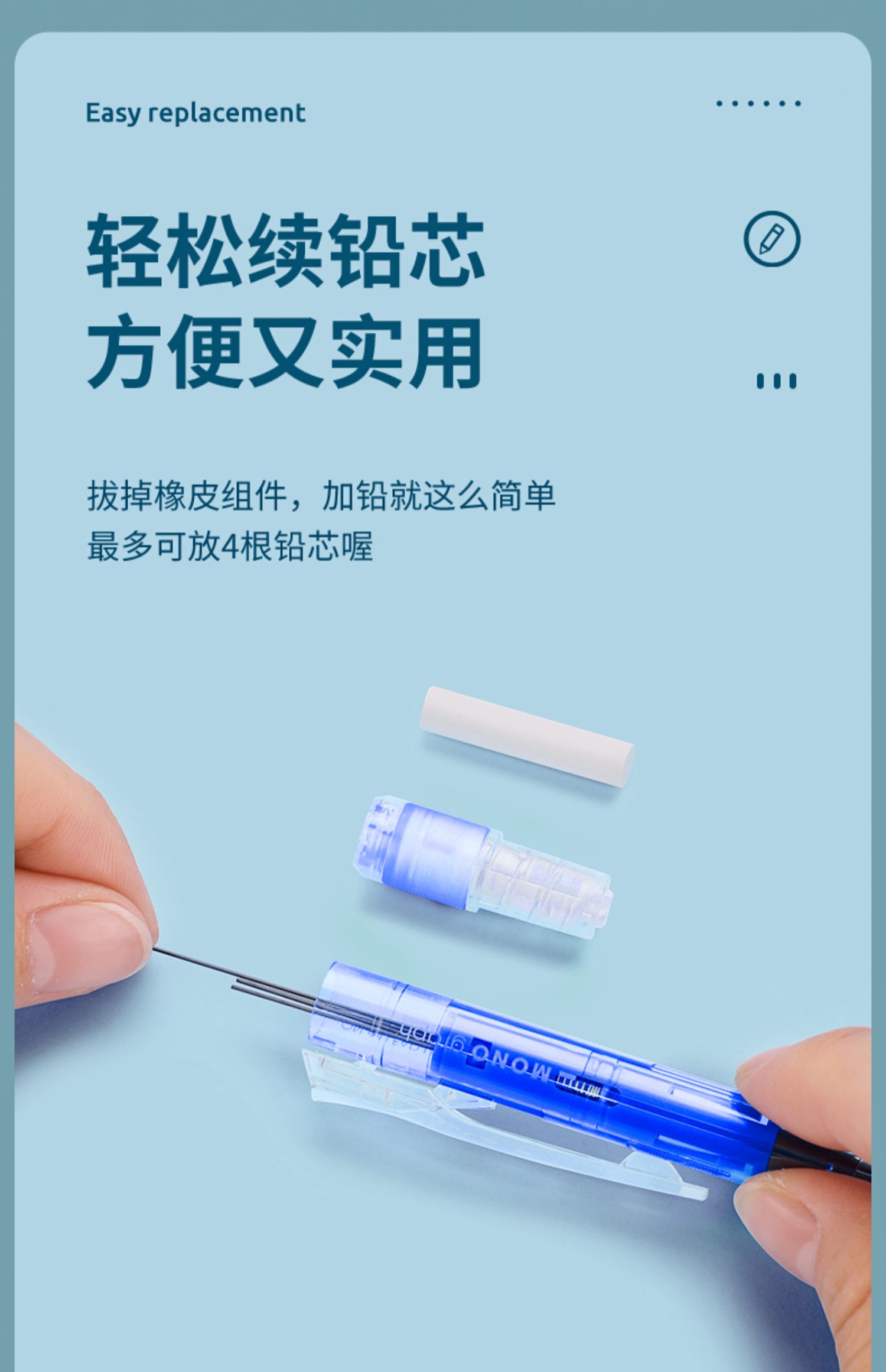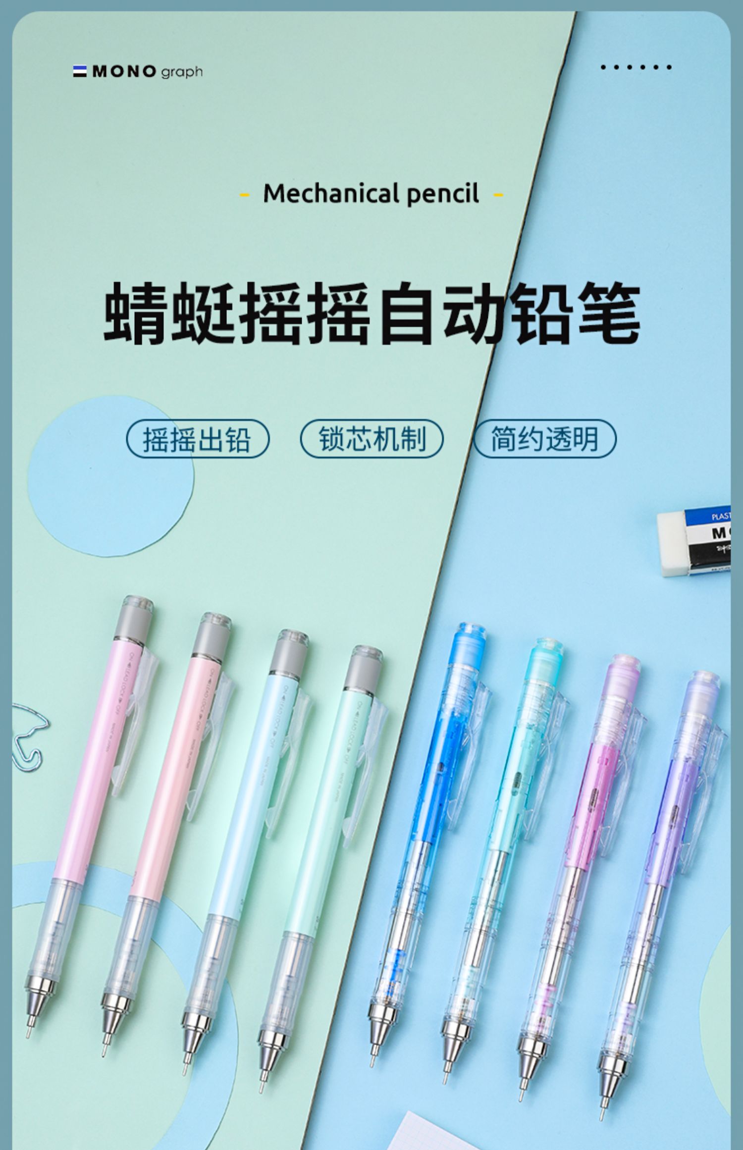 Tombow蜻蜓mono自动铅笔透明摇摇出铅橡皮替芯低重心小学生考试用绘图0.5活动铅大赏自动笔