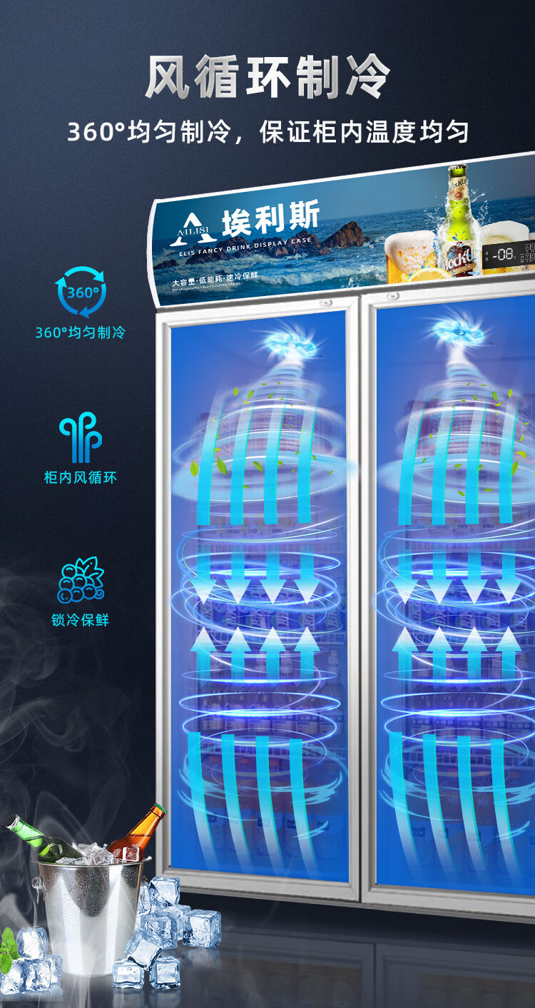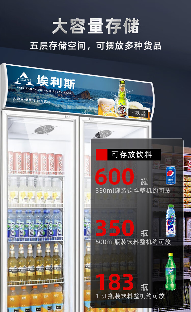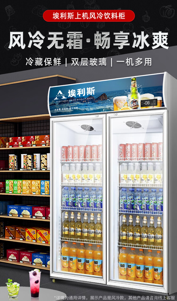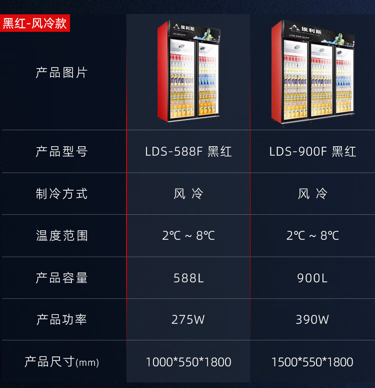 埃利斯(AILISI)商用立式展示柜 大容量冷藏柜保鲜柜 风冷便利店超市展示柜 啤酒柜饮料柜陈列柜900黑红