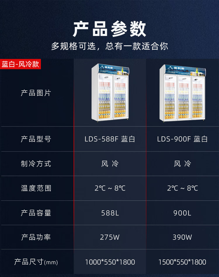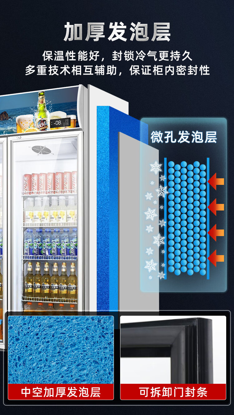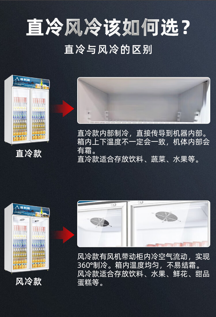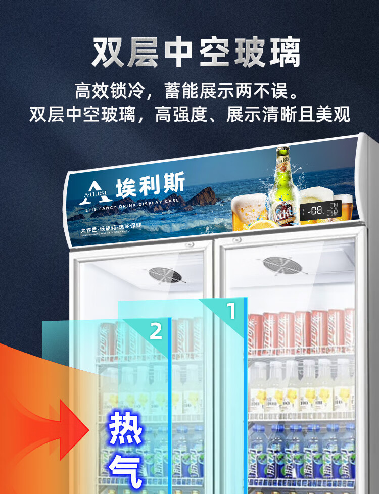 埃利斯(AILISI)商用立式展示柜 大容量冷藏柜保鲜柜 风冷便利店超市展示柜 啤酒柜饮料柜陈列柜900黑红