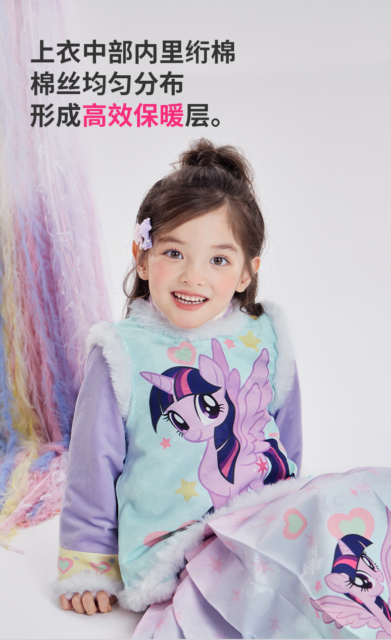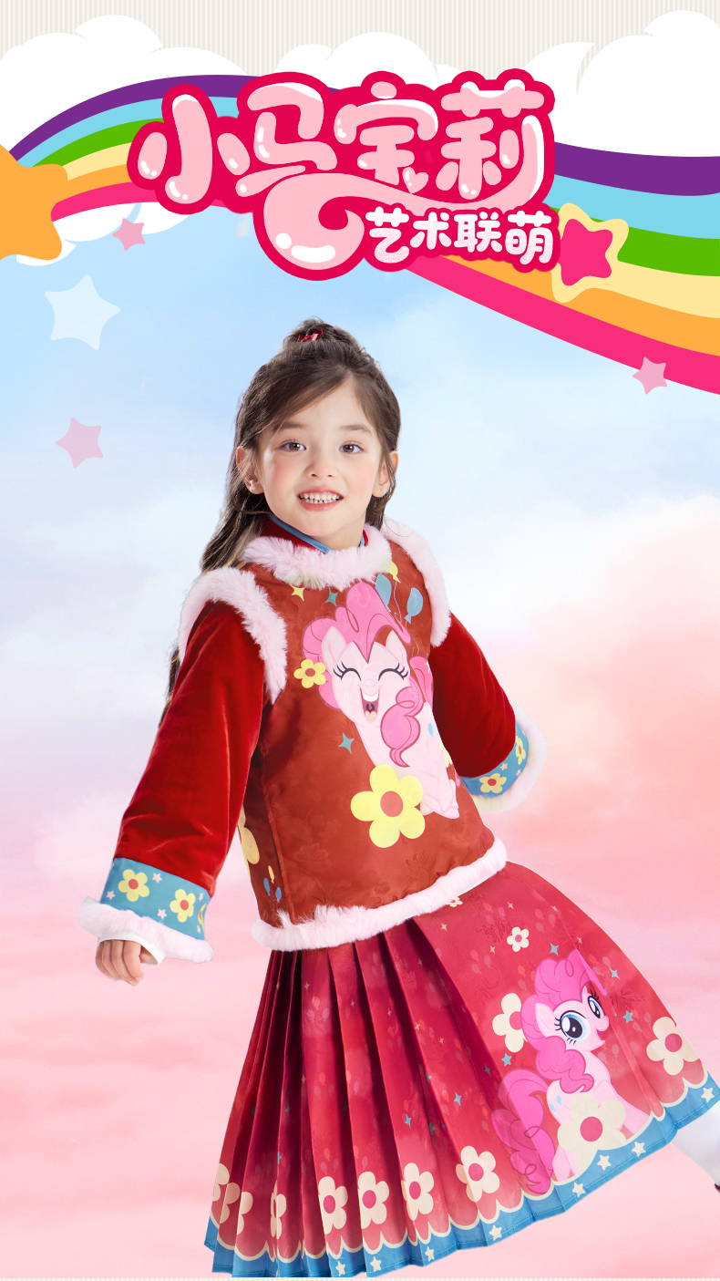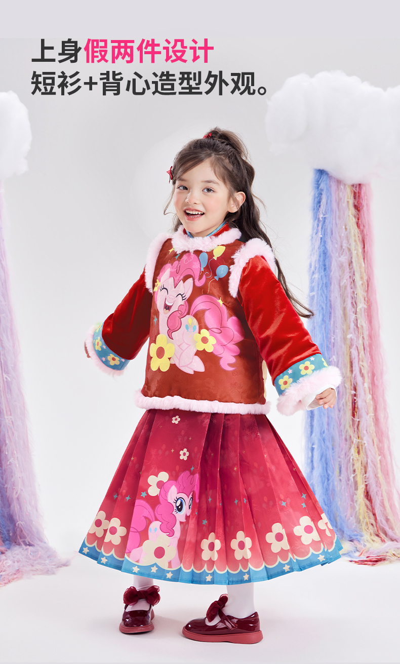 小马宝莉联名年衣童装中式套装女童秋冬新款加厚小马宝莉中式套装