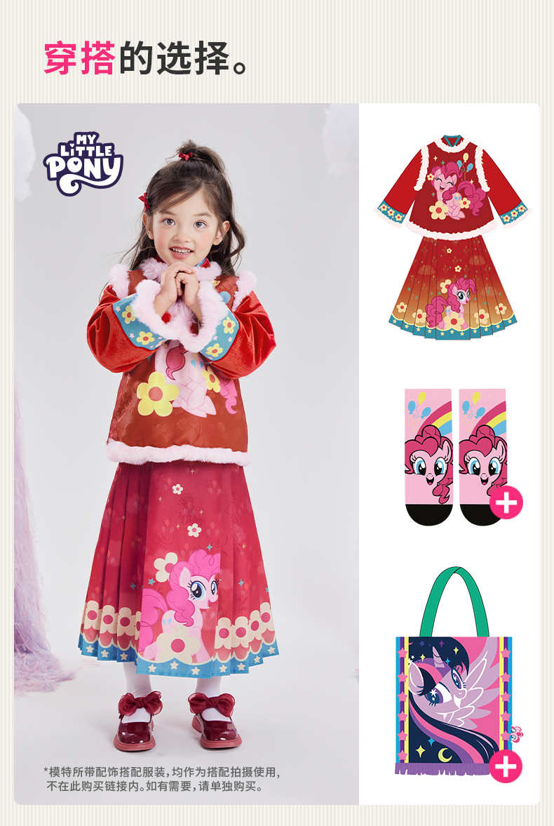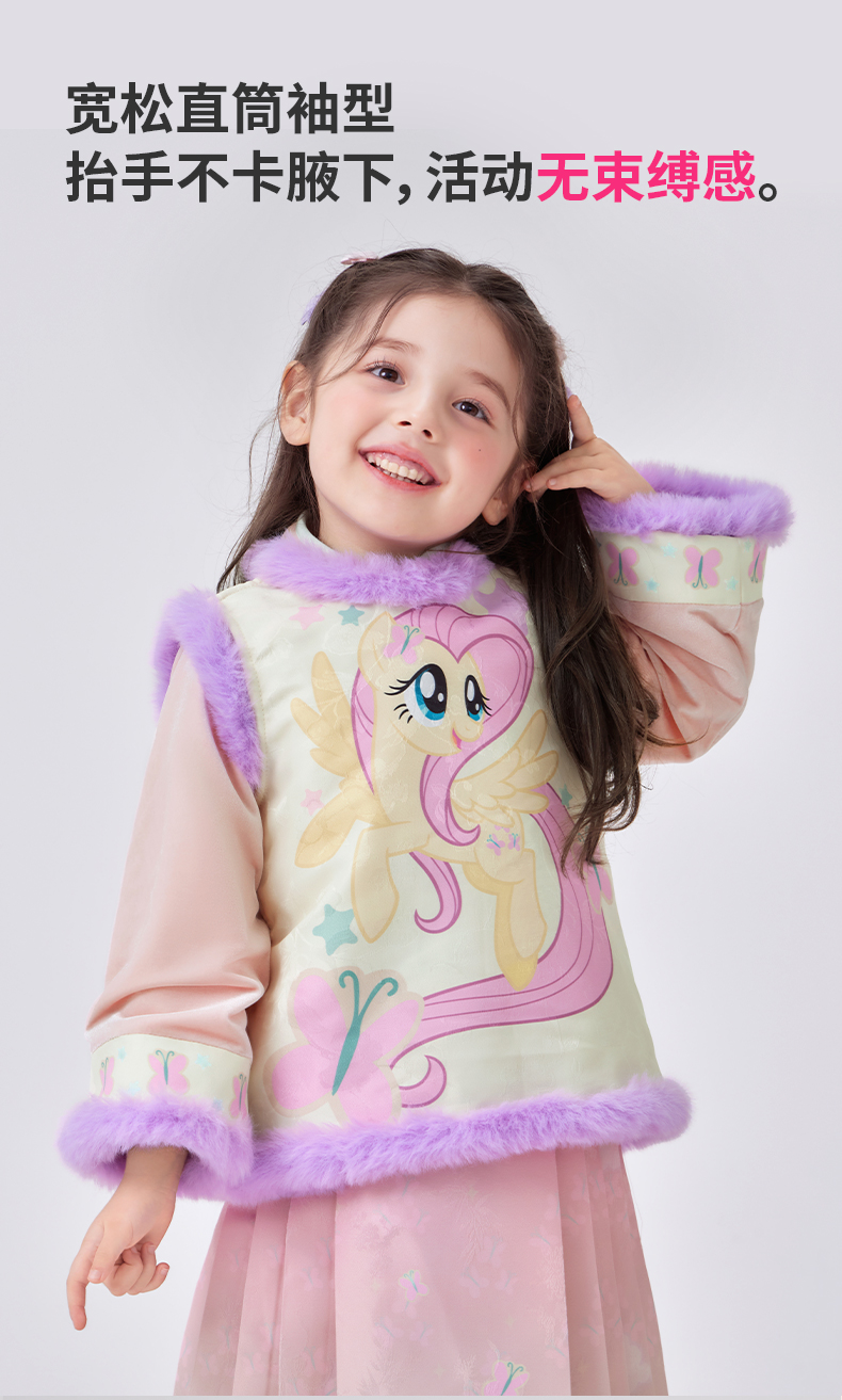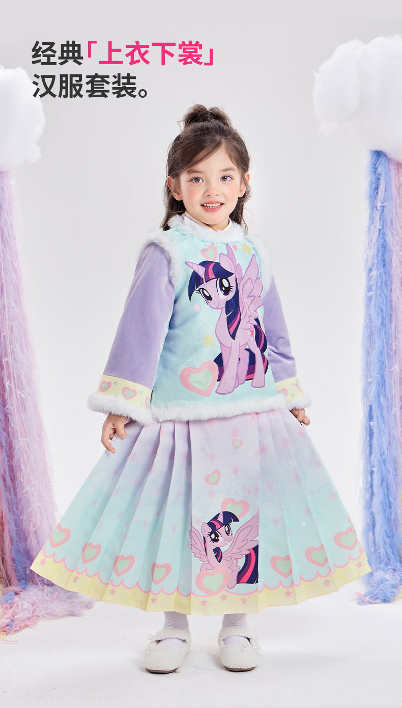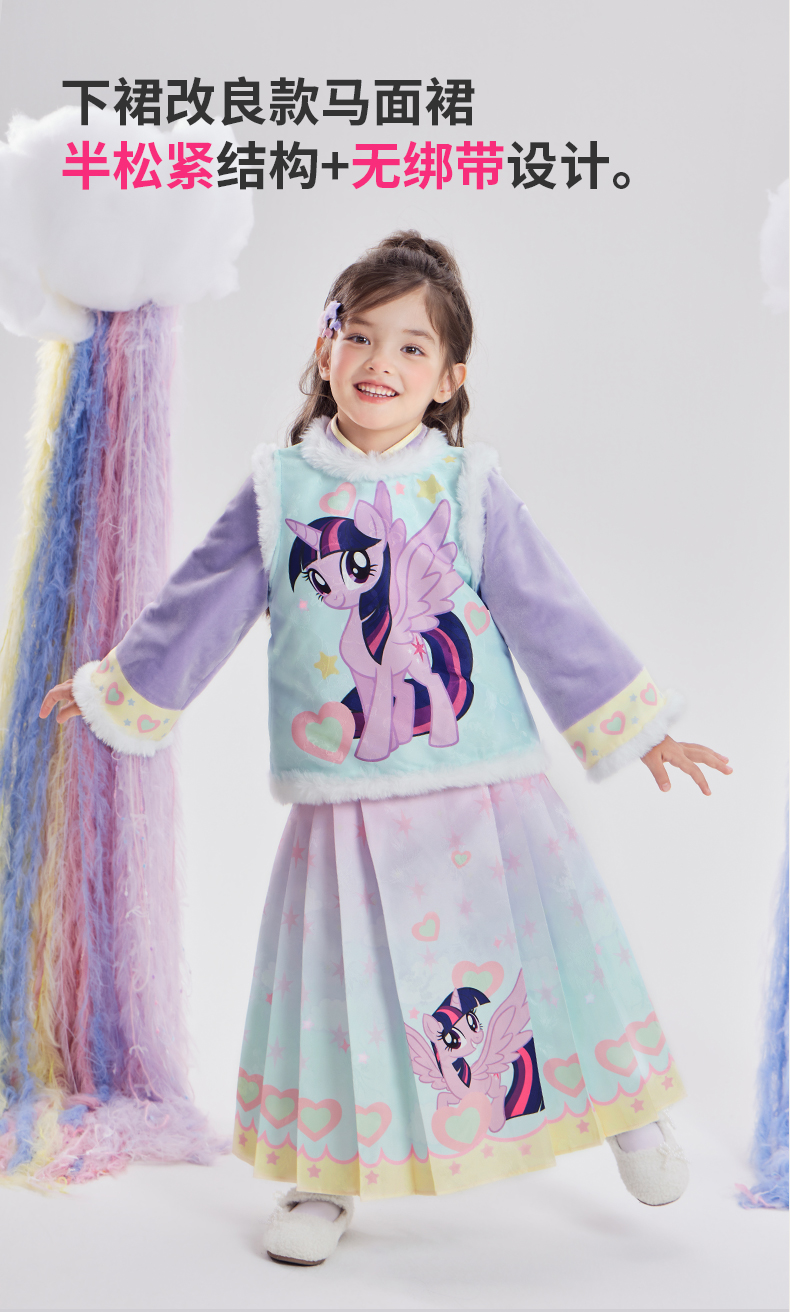 小马宝莉联名年衣童装中式套装女童秋冬新款加厚小马宝莉中式套装