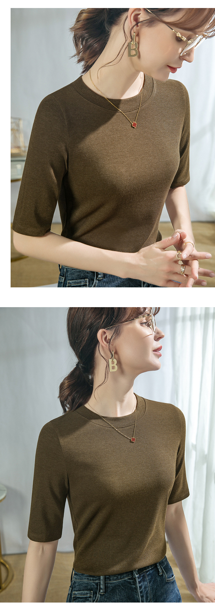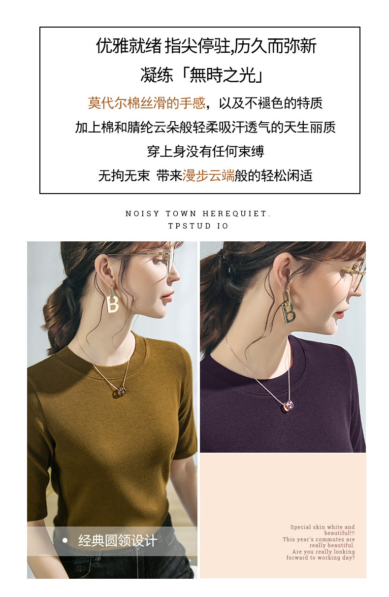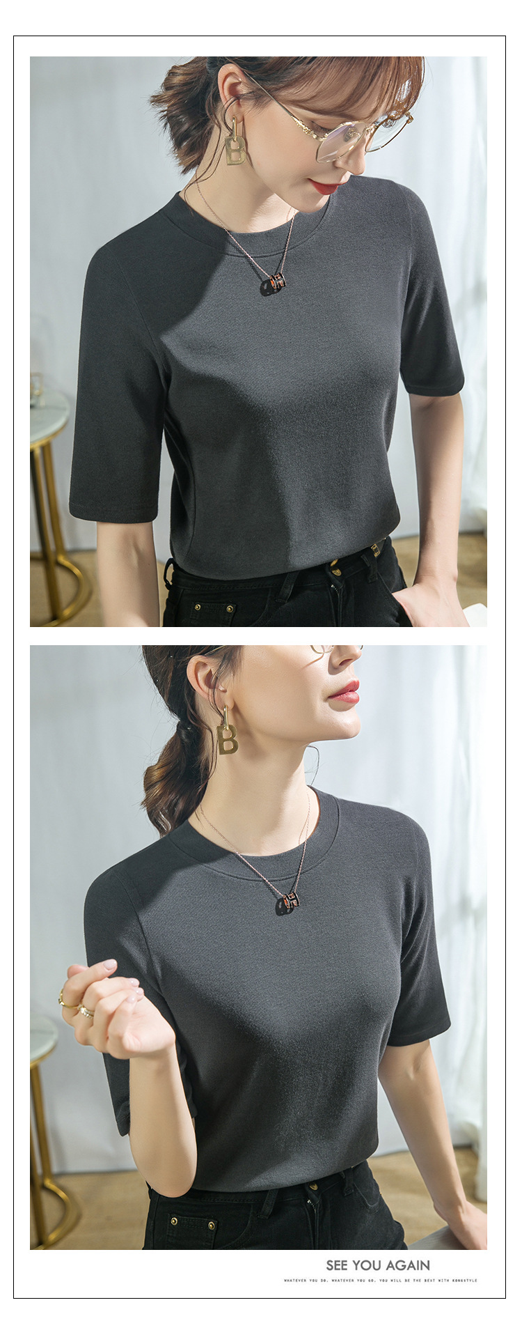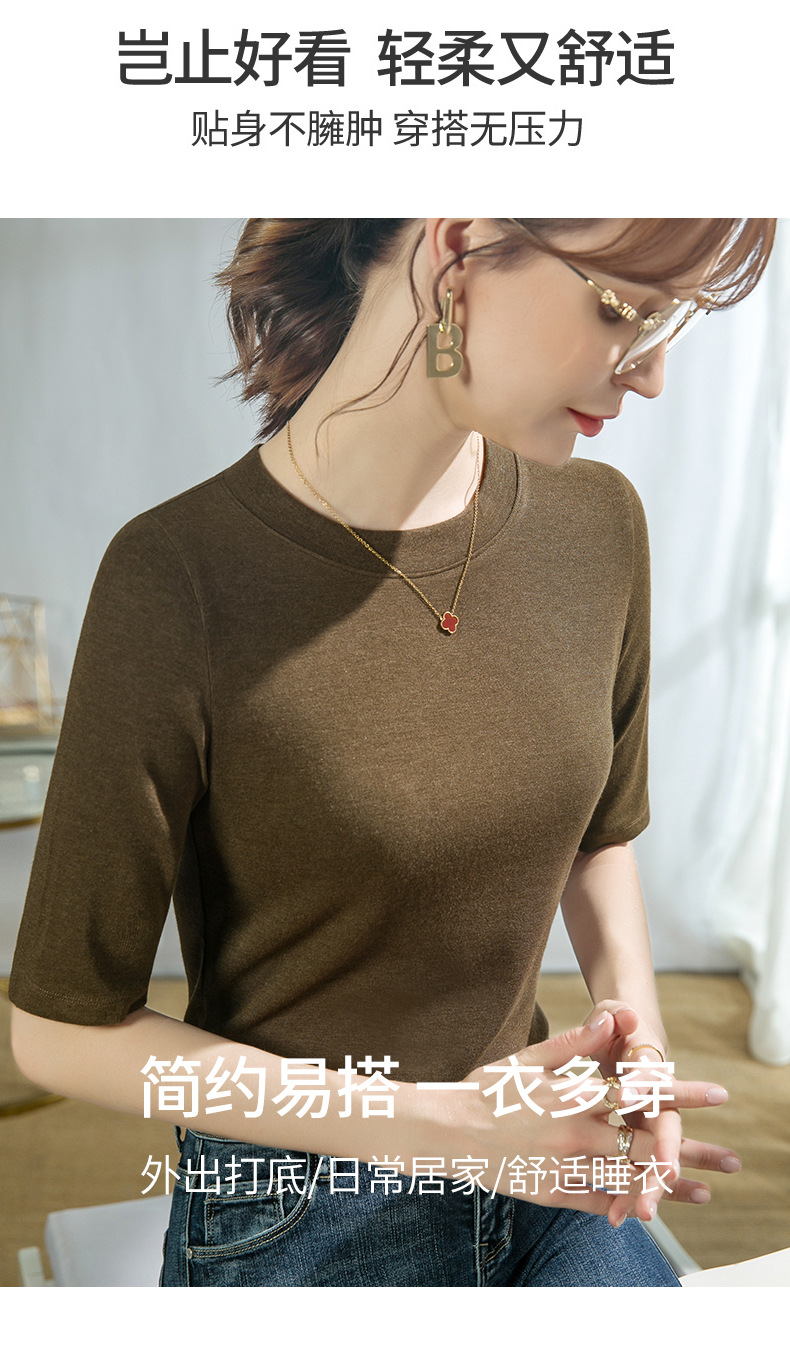 【大牌品质】莫代尔棉圆领中袖上衣 四季可穿内搭显瘦五分袖T恤