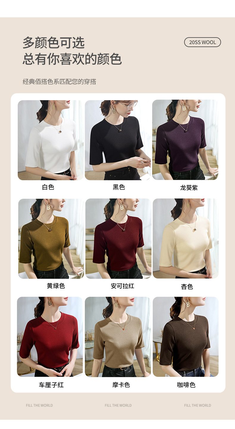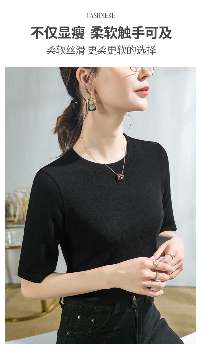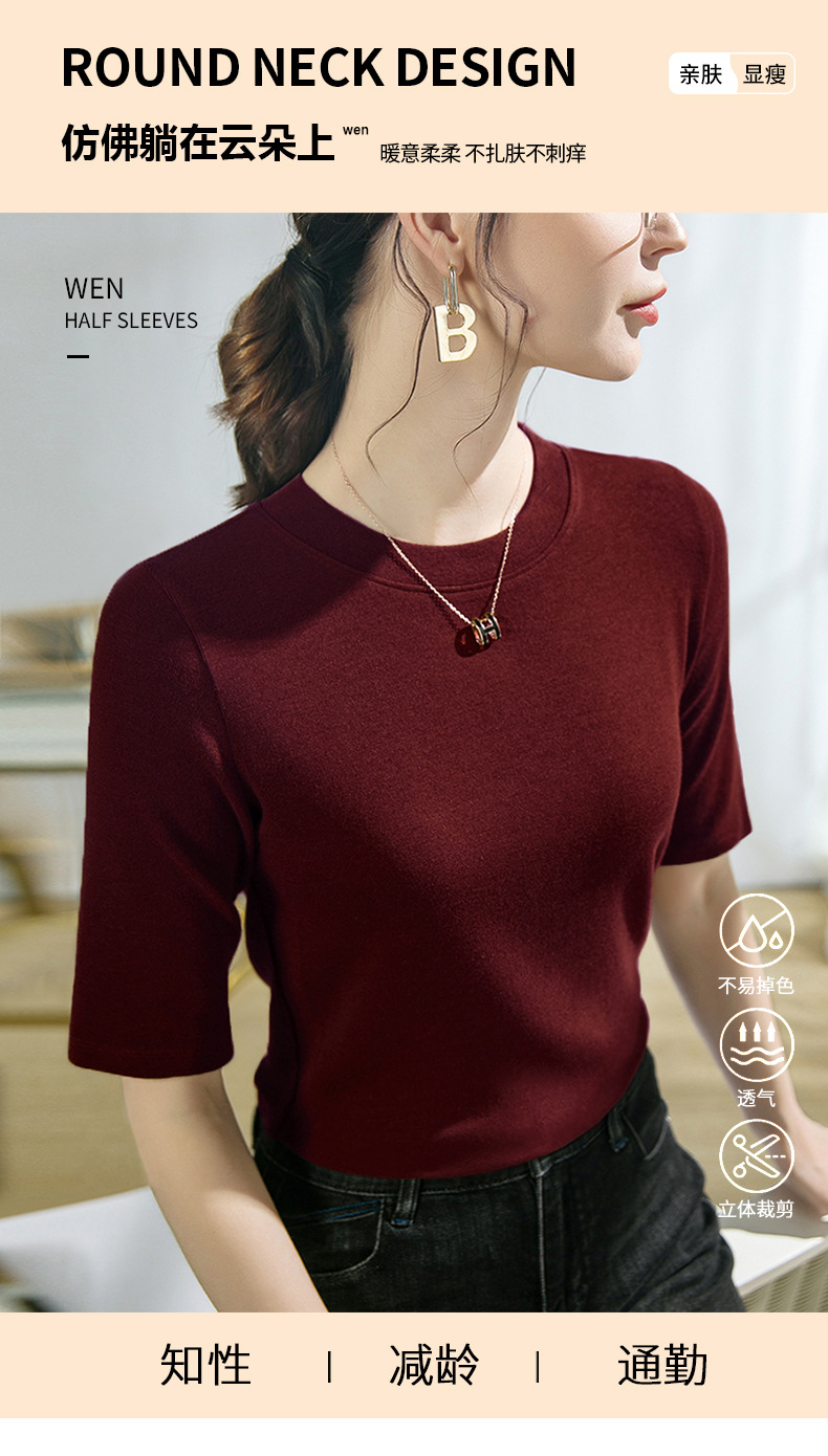 【大牌品质】莫代尔棉圆领中袖上衣 四季可穿内搭显瘦五分袖T恤