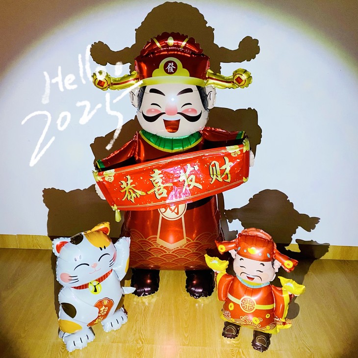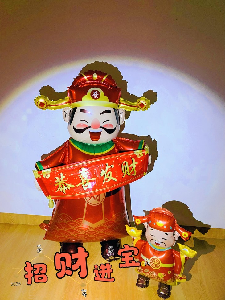 🎈铝膜表面光滑亮丽,有光泽度和质感。在光线的照射下,反射出璀璨的光芒 如同财神爷身上散发的祥瑞之光☀为新年环境增添奢华与喜庆氛围 材质环保无毒🎭无异味 简单好操作,可以和小朋友一起拼装,增进亲子关系 🎗一起装扮新年增添欢乐、吉祥的氛围,在浓郁的新年气息中共同迎接财运与好运的降临,留下美好的新年回忆