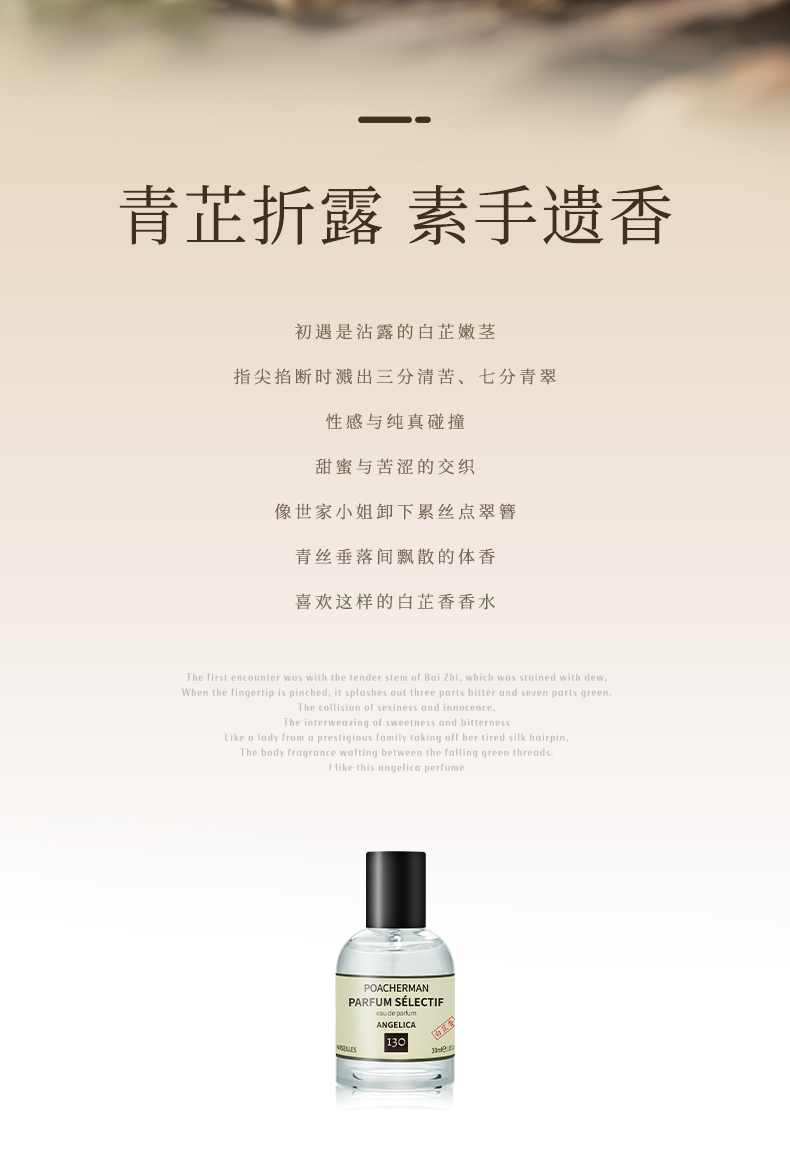 柏世曼130白芷香香水 清冷花香调持久留香药感小众男女士淡雅香氛