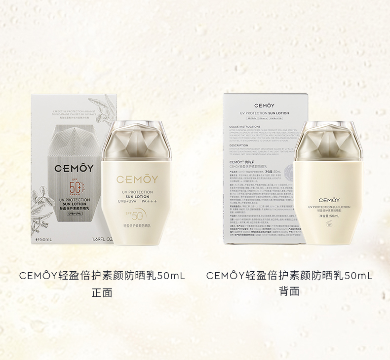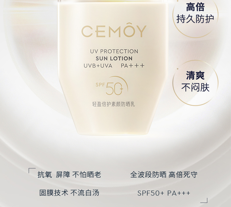 【高倍防晒力 清透好肤感】CEMOY澳诗茉轻盈倍护素颜防晒乳50ml 轻薄防紫外线SPF50+ PA+++,下单即送同款防晒乳17ml*3