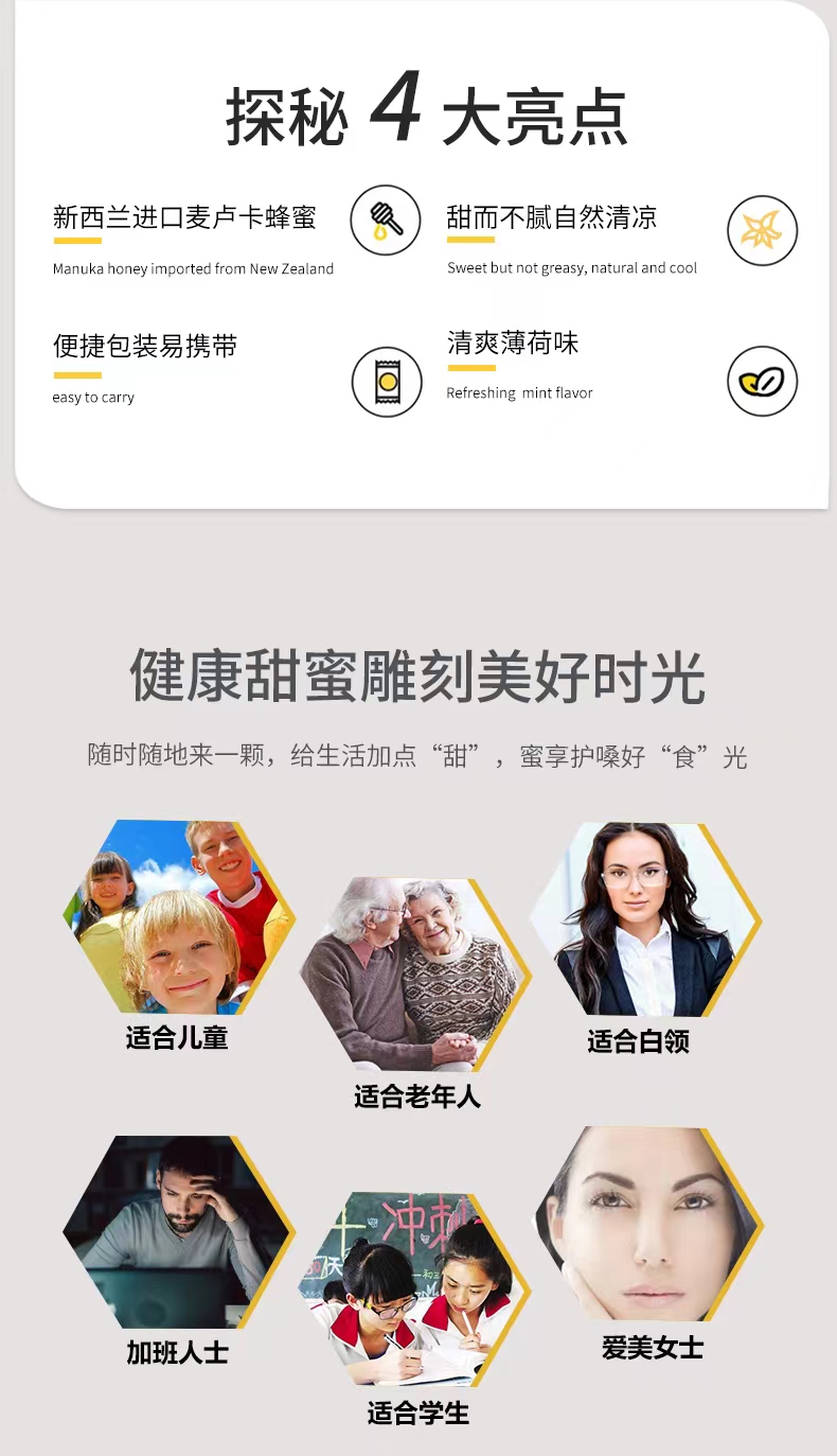 纽西公主麦卢卡蜂蜜薄荷糖 清新口气 润喉护嗓 独立包装易携带(包装颜色随机发)