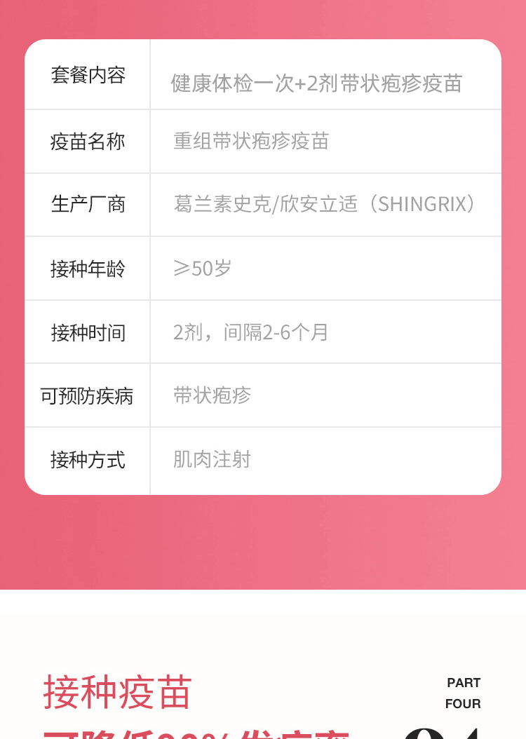 带状疱疹疫苗接种预约代订 50岁以上男女适用(高端老年体检一次+两针套餐)