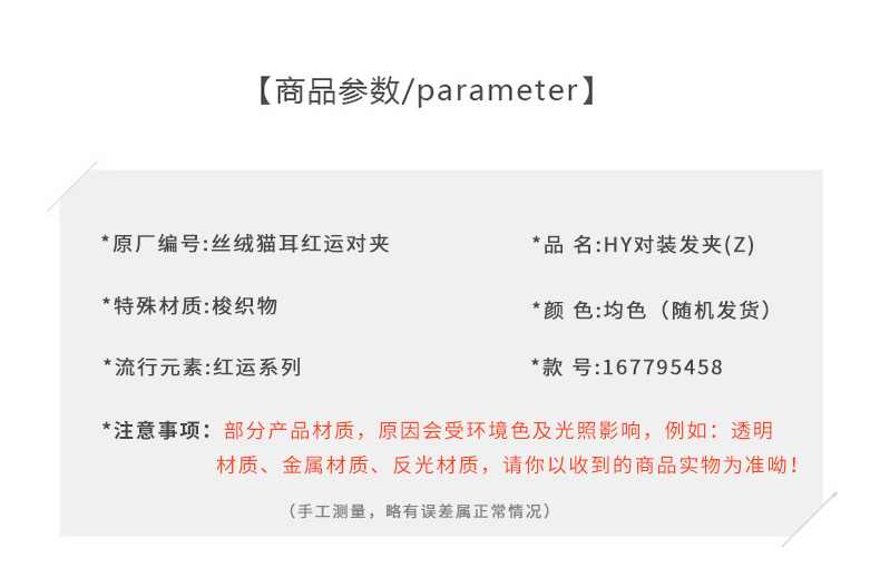 HY丝绒猫耳红运对夹发夹-纪念日百货门店同款167795458