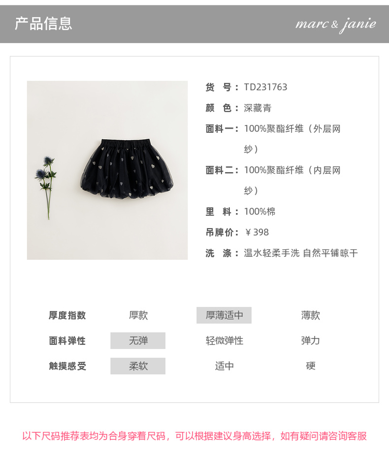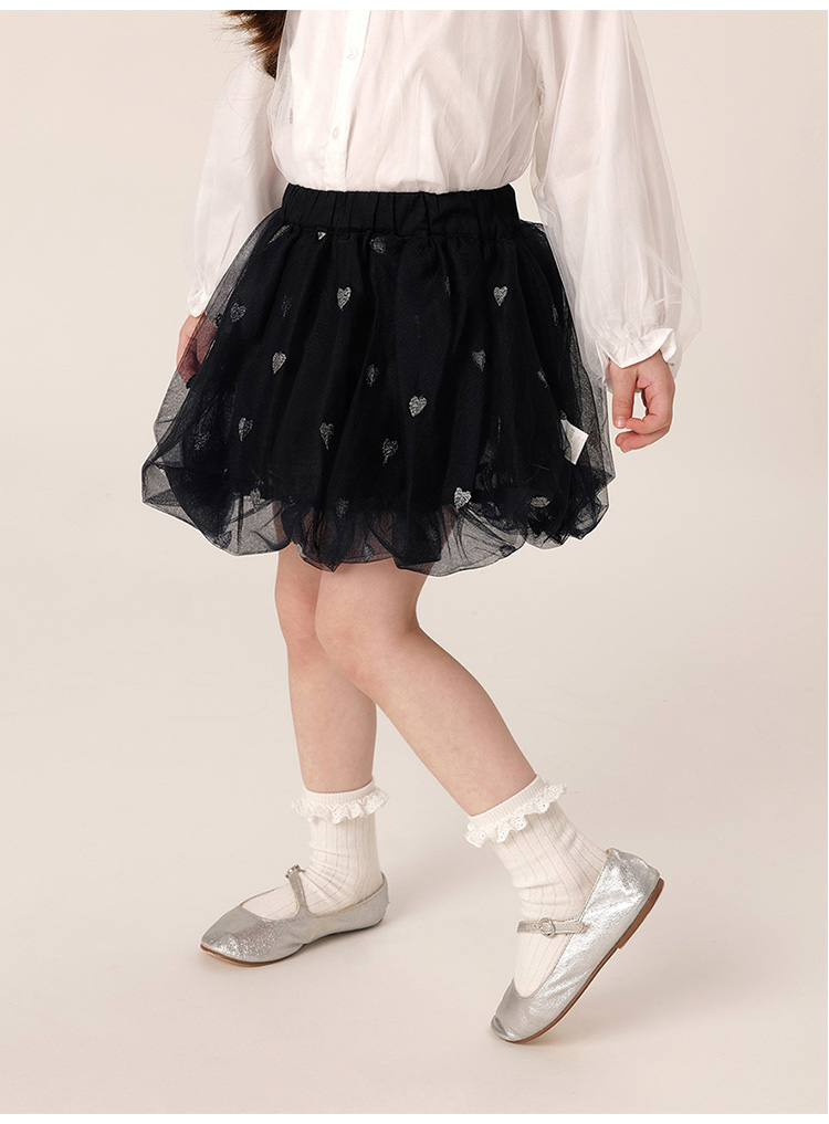 【马克珍妮 芦芙】秋装新款 女童绣花网纱花苞短裙半身裙231763