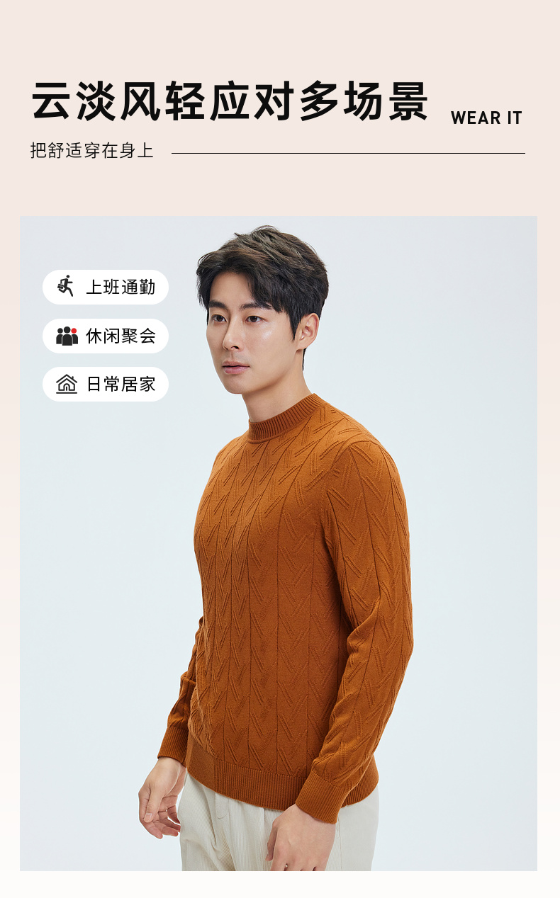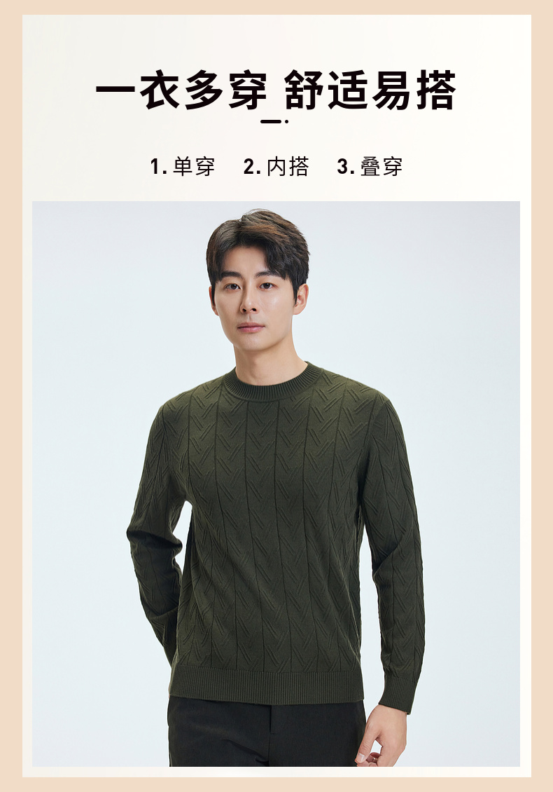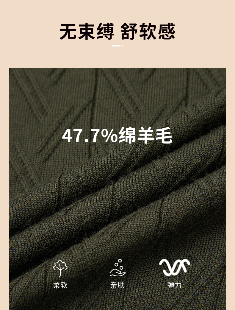 【含绵羊毛】圣得西羊毛混纺针织衫2025秋新款素雅百搭耐穿毛衣男