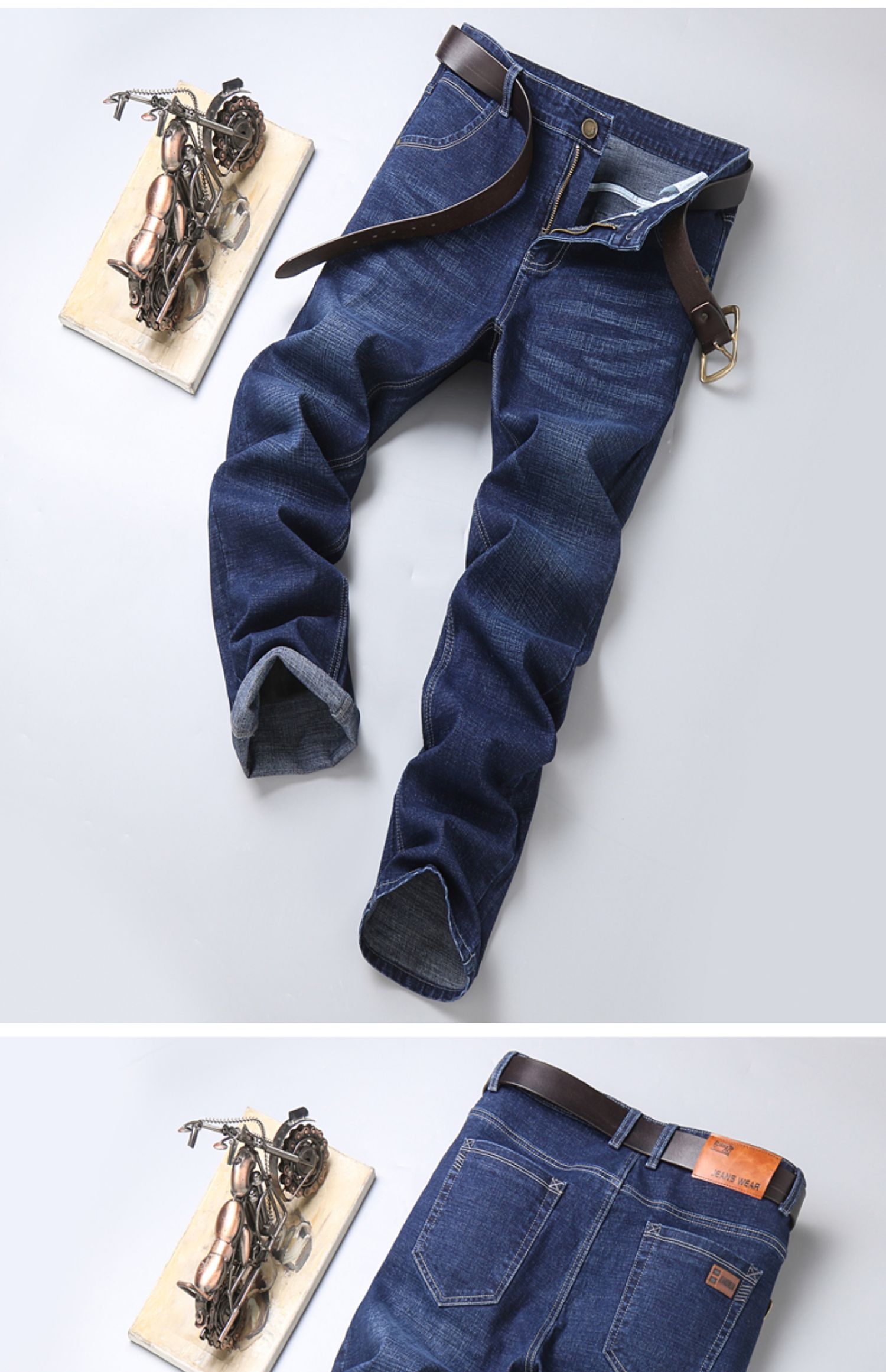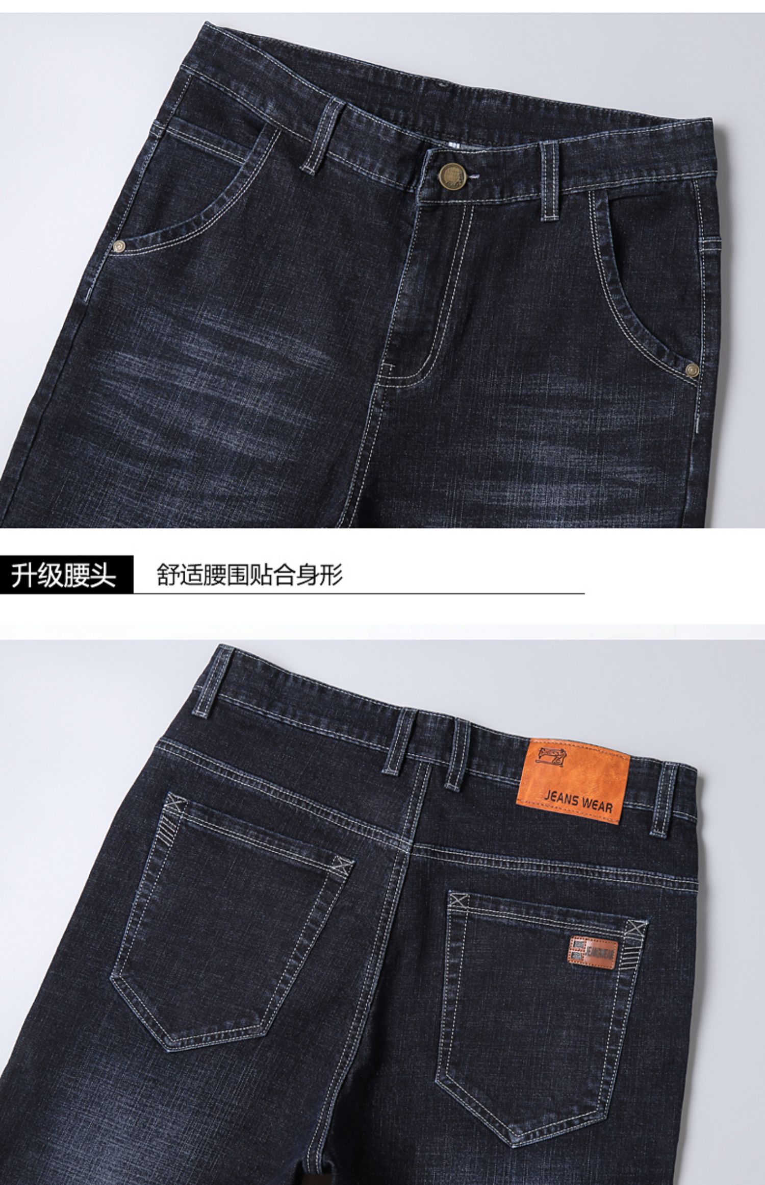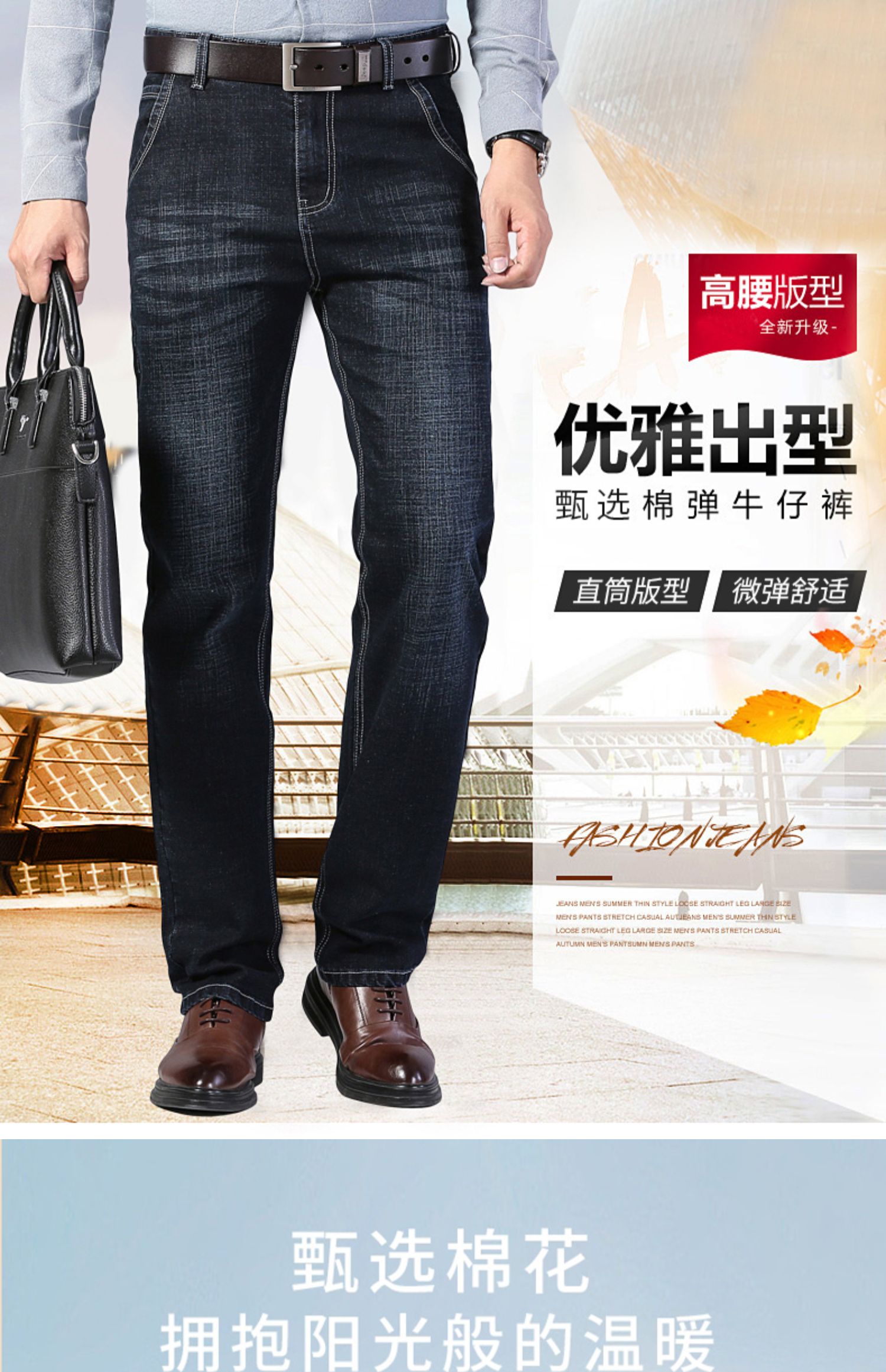 圣得西高腰直筒弹力牛仔裤2025秋季新款中青年棉质百搭休闲长裤男