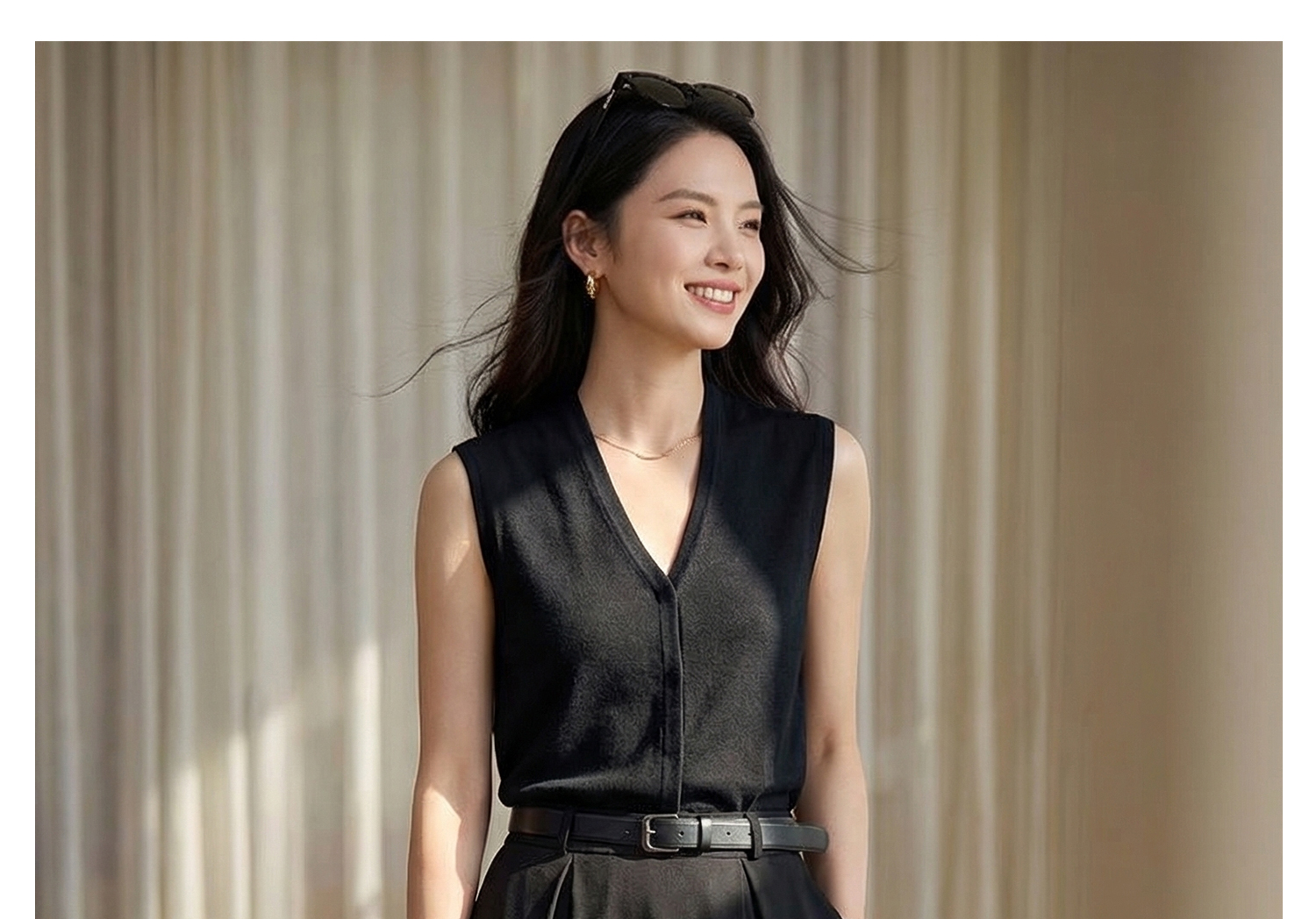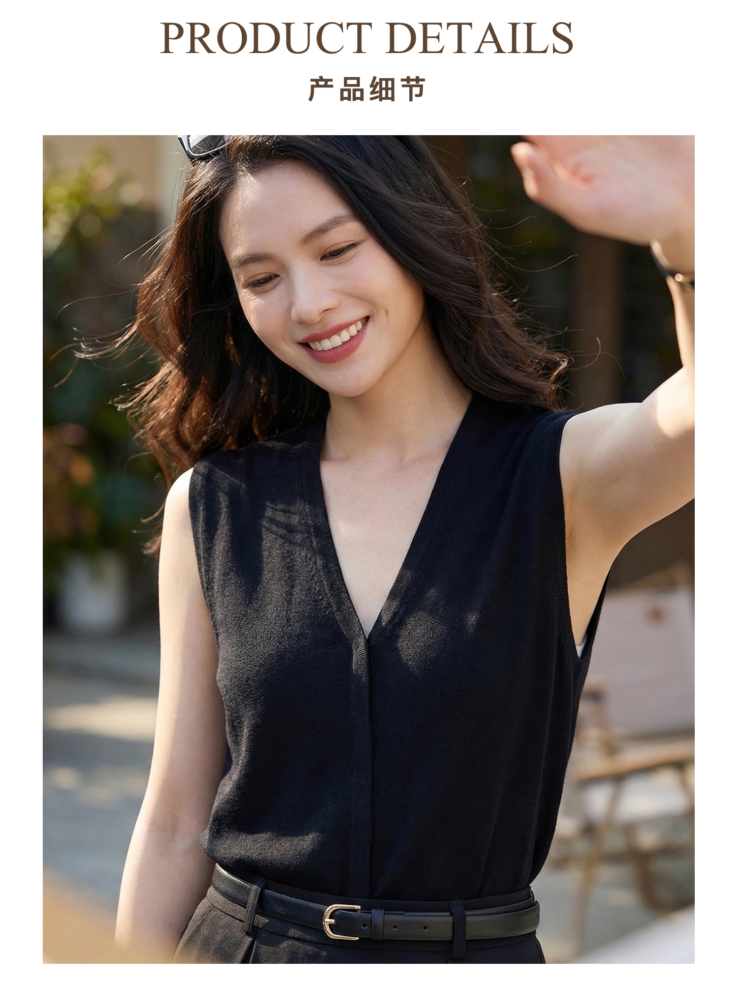 软乎舒服针织内搭 羊毛蚕丝混纺 米思阳2026春夏新款通勤优雅风OL无袖V领内搭背心式针织衫上衣女6075