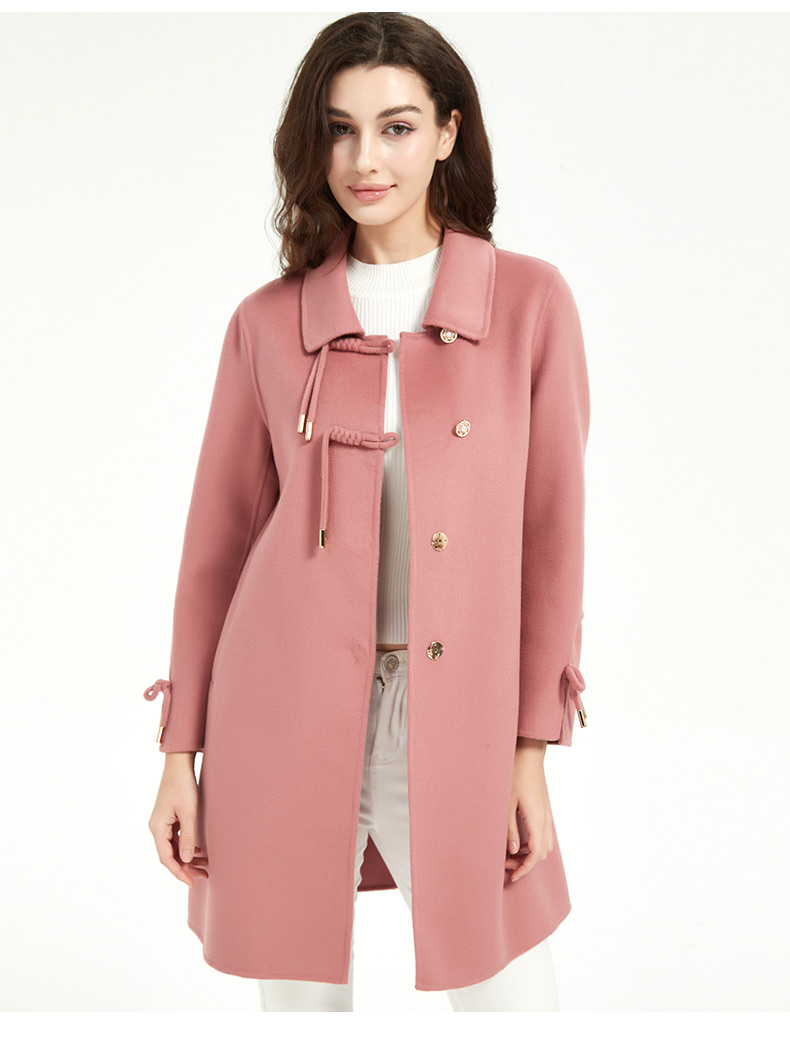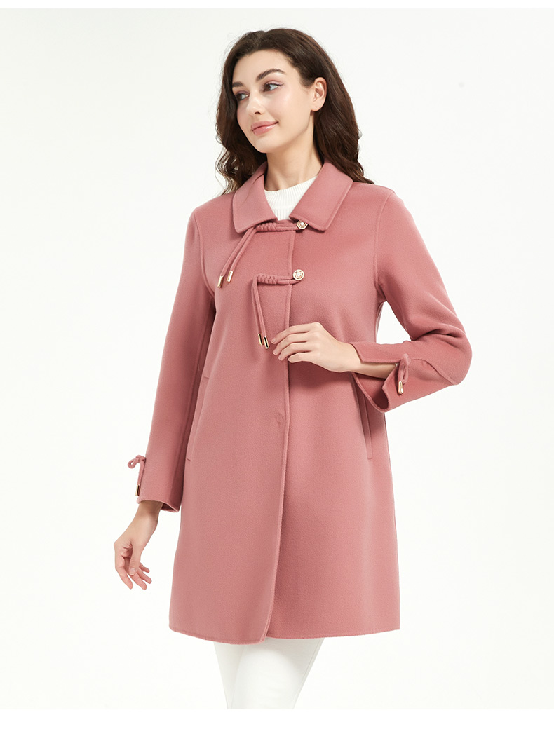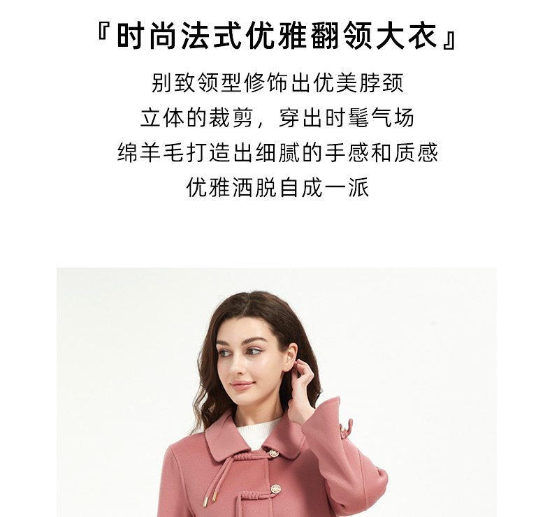皮尔卡丹女装新中式简约百搭毛呢大衣