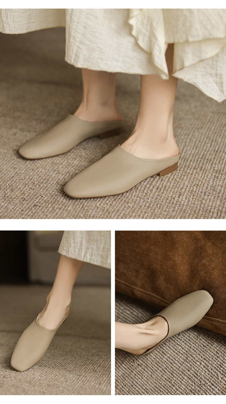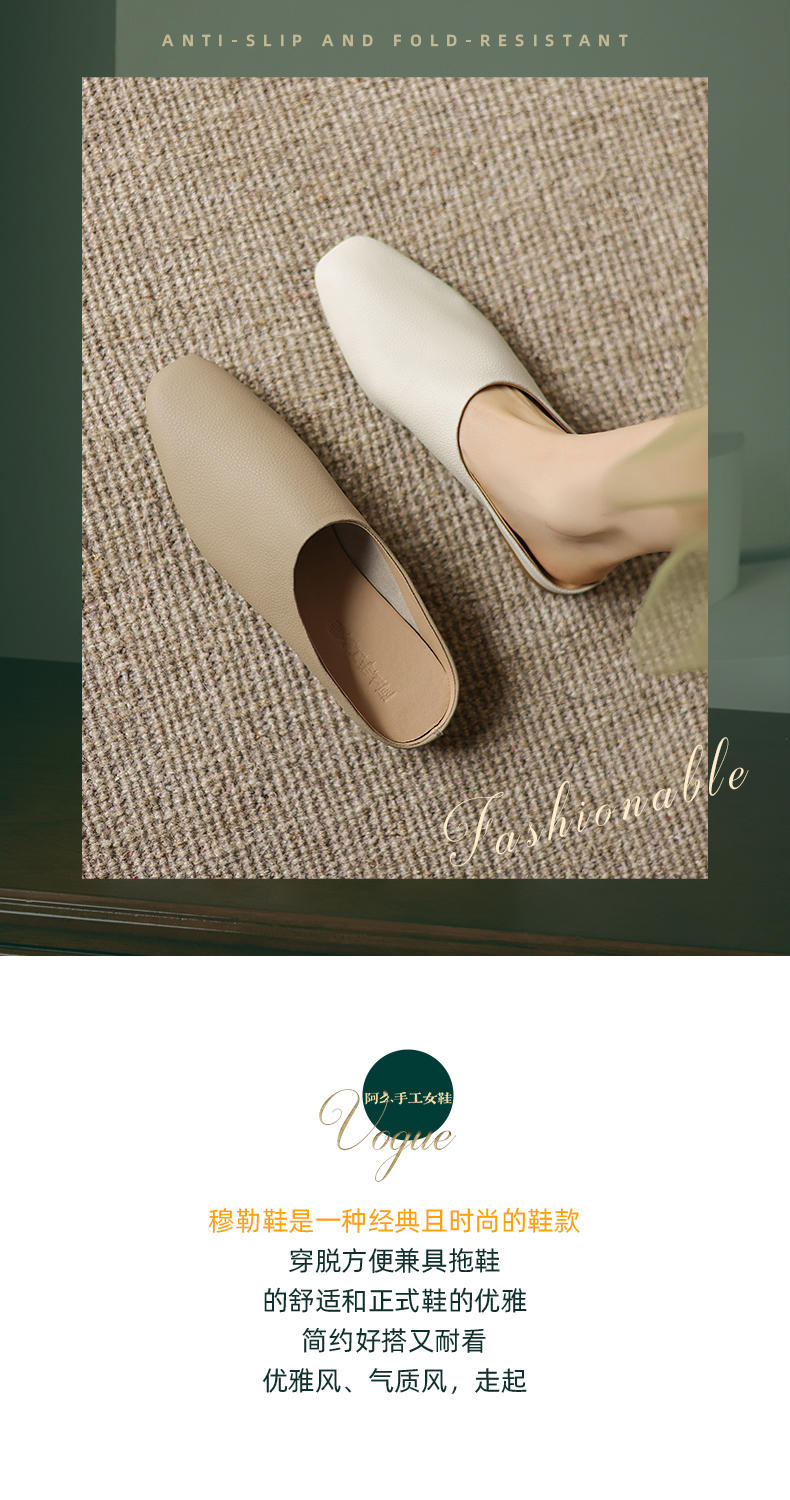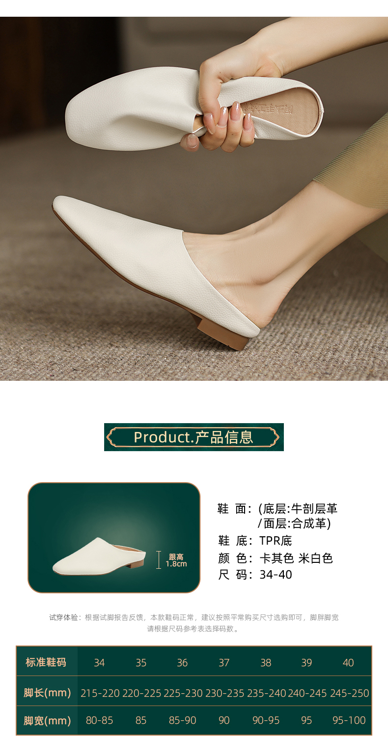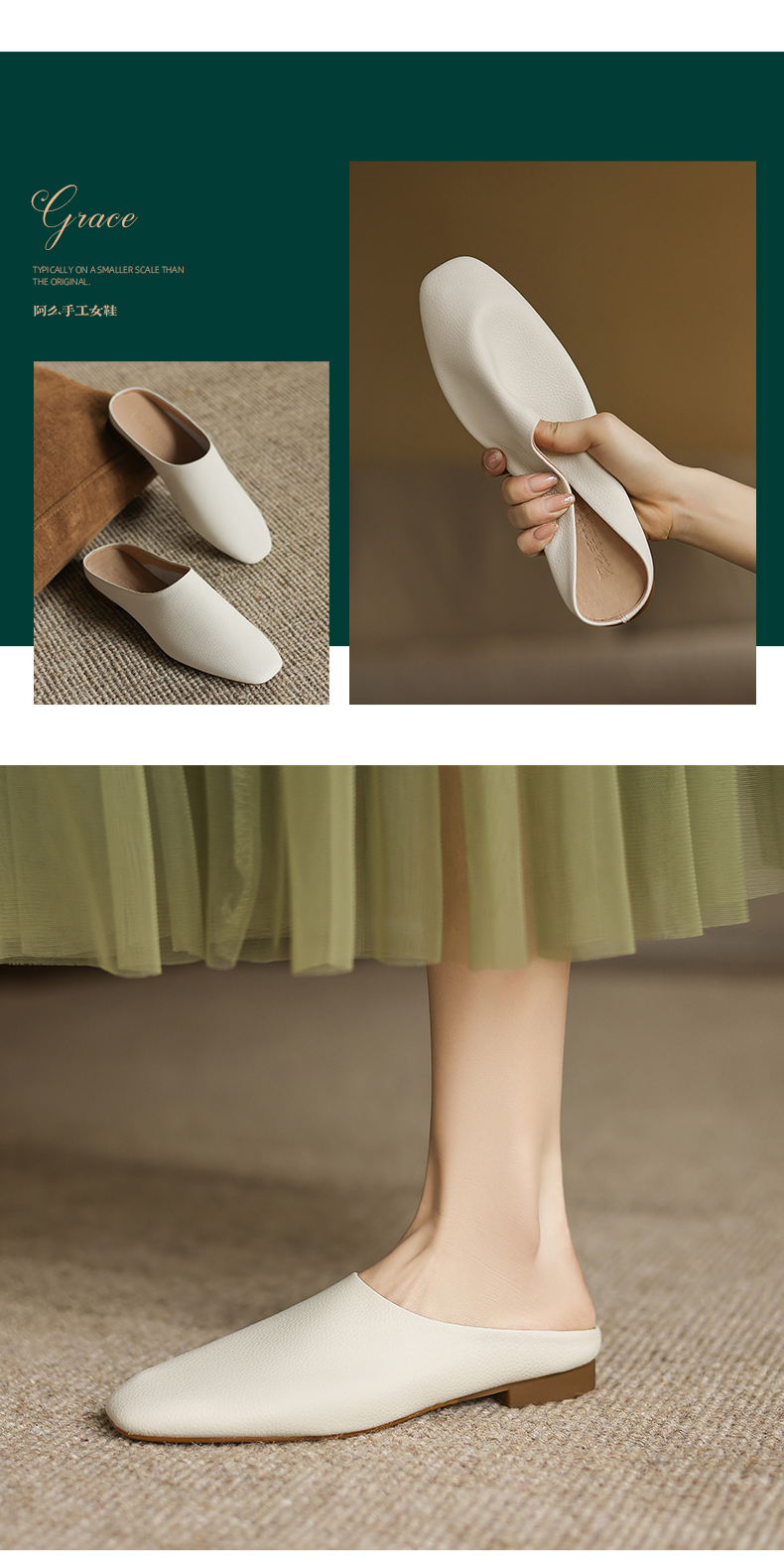 阿么手工女鞋2025新款平底包头拖女夏季百搭外穿温柔穆勒鞋1.8CM