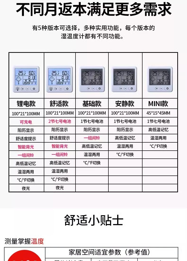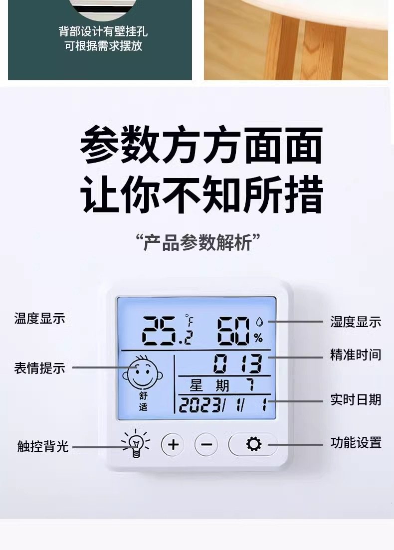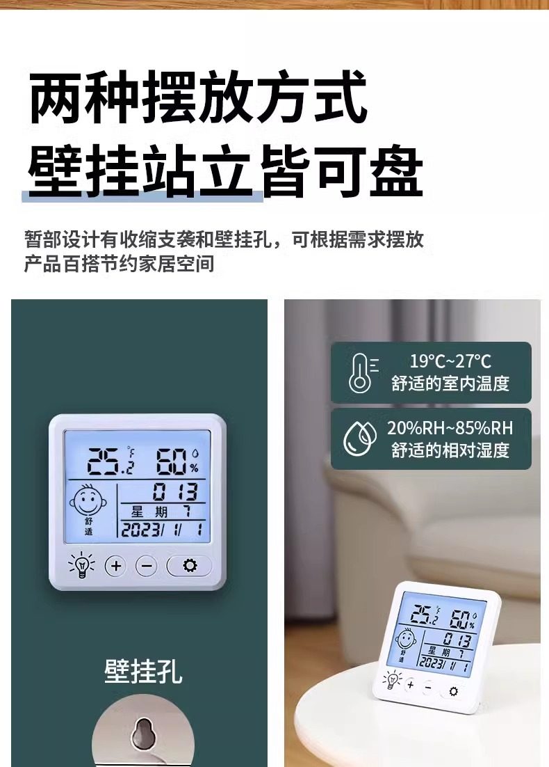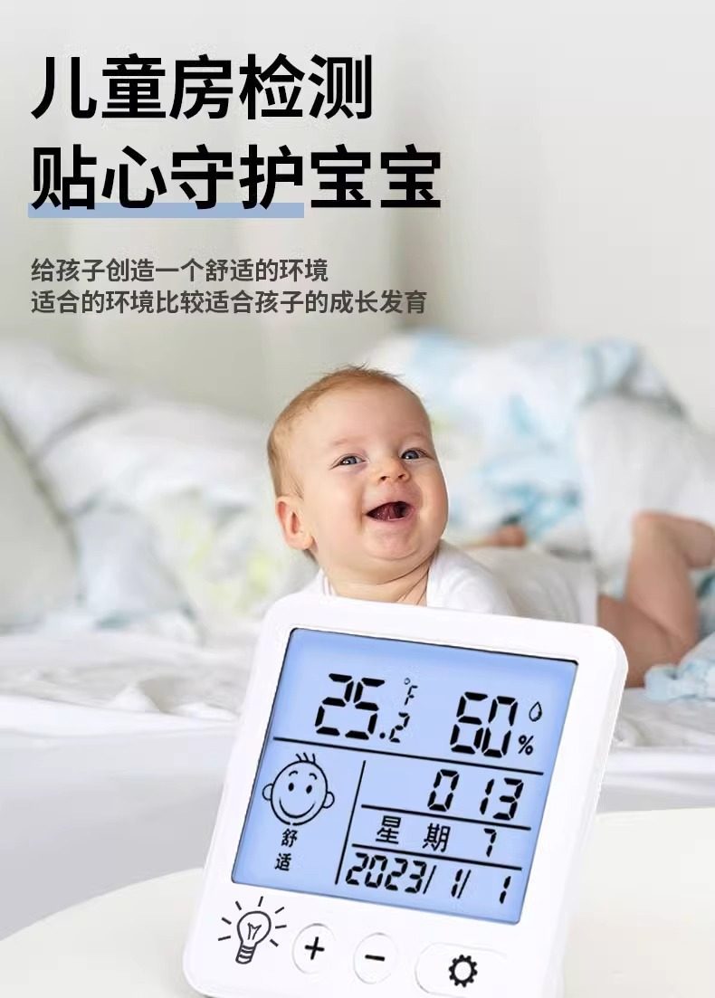 温度闹钟迷你时钟婴儿家用温度表壁挂式精准数显电子温湿度计室内