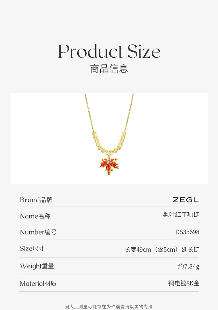 ZEGL枫叶项链女轻奢小众高级设计感小方块红色锁骨毛衣链秋冬配饰