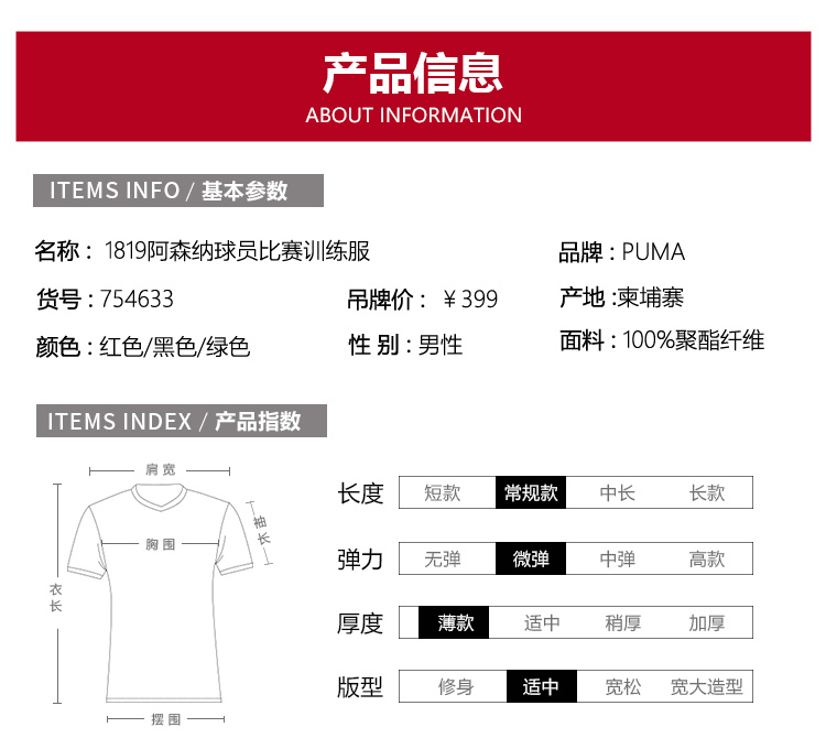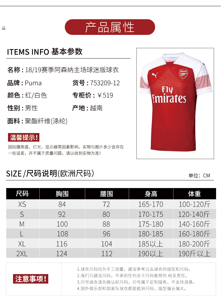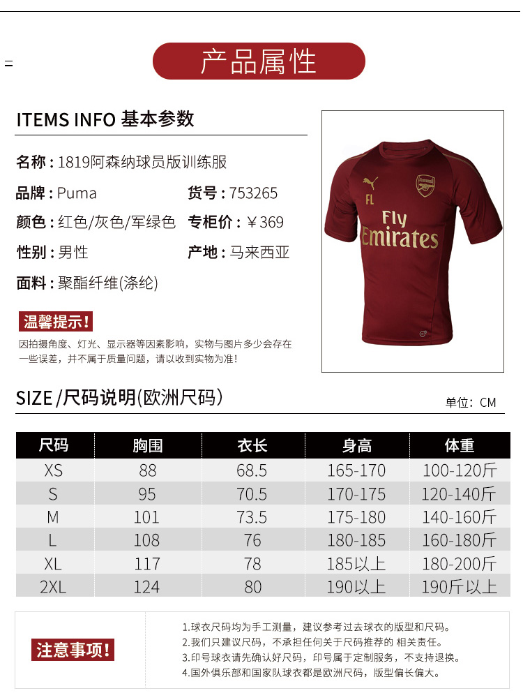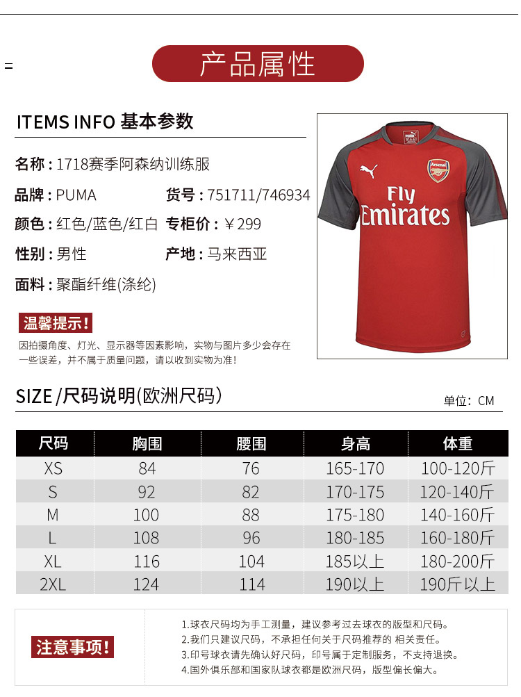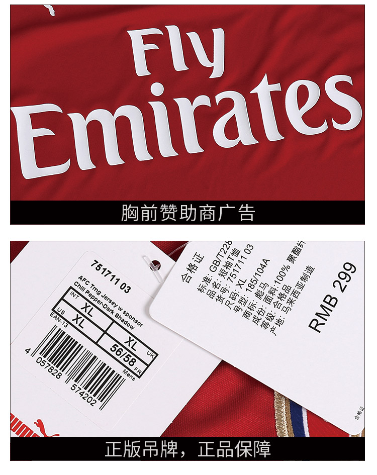 SFS正品 彪马正品特价 阿森纳球员版训练服 赛前热身T恤 男子球衣