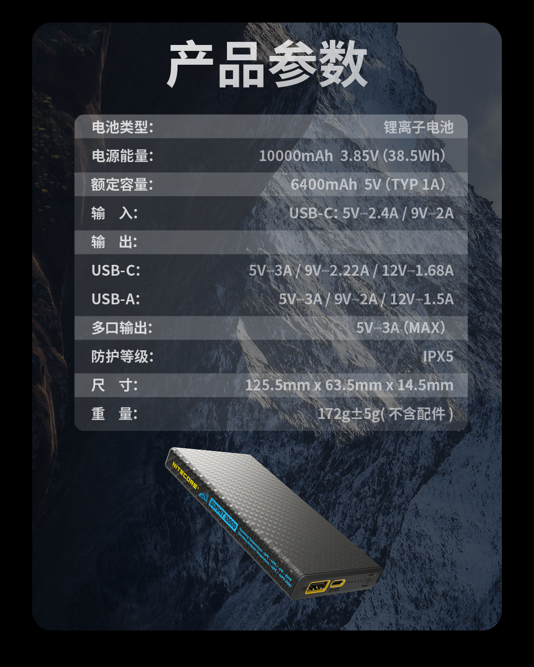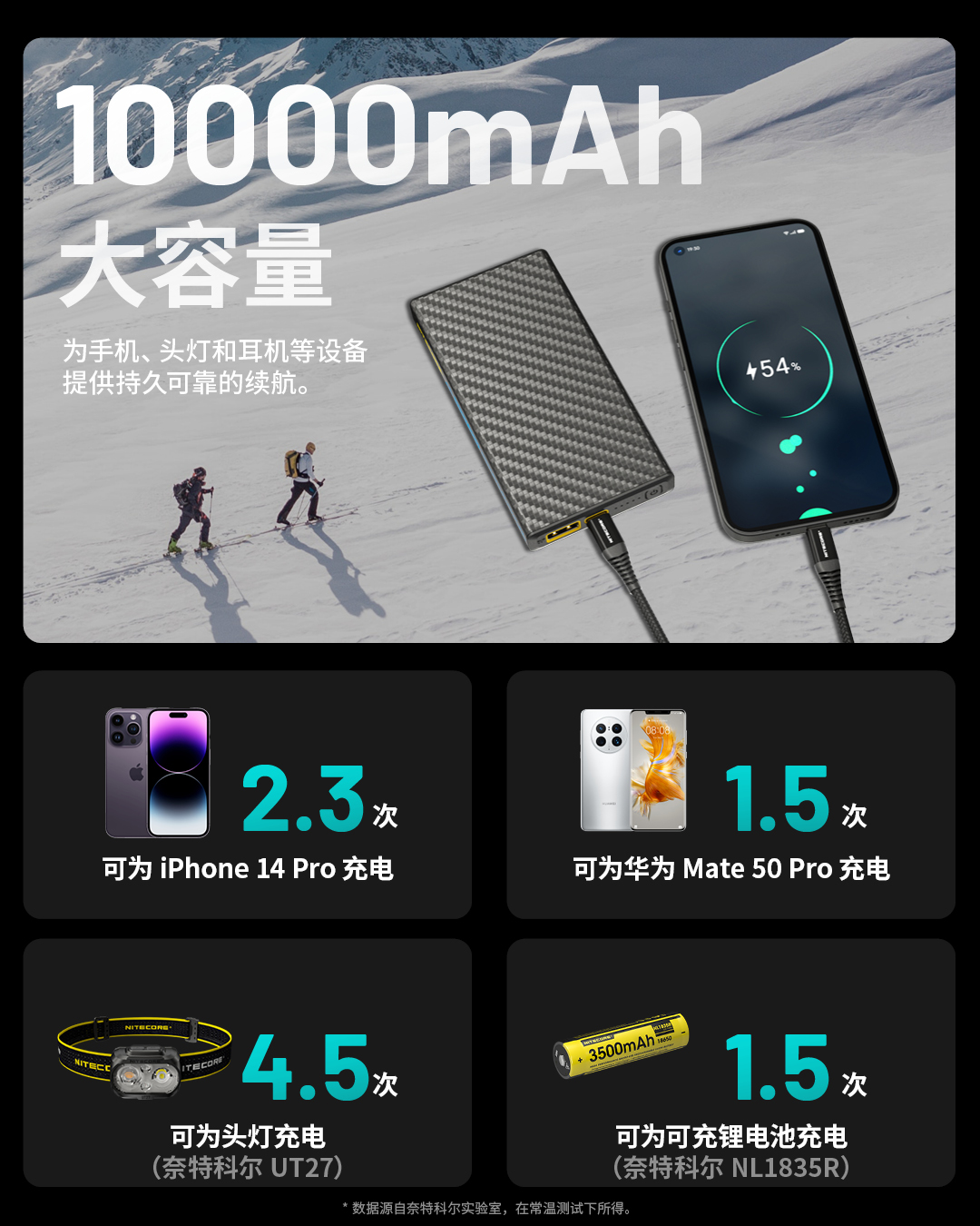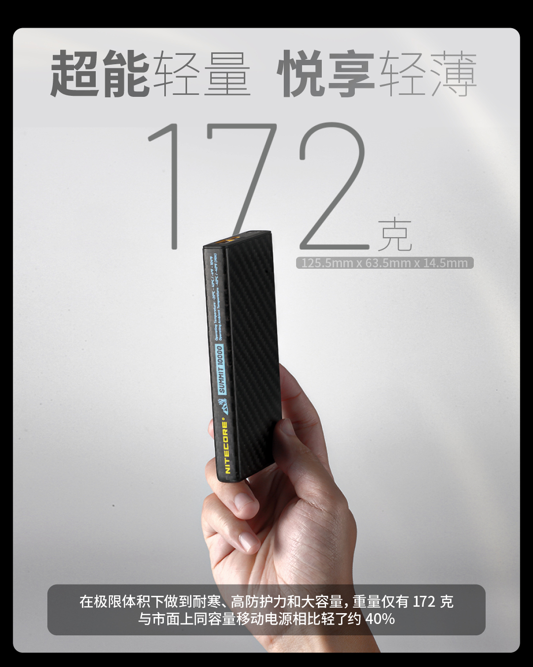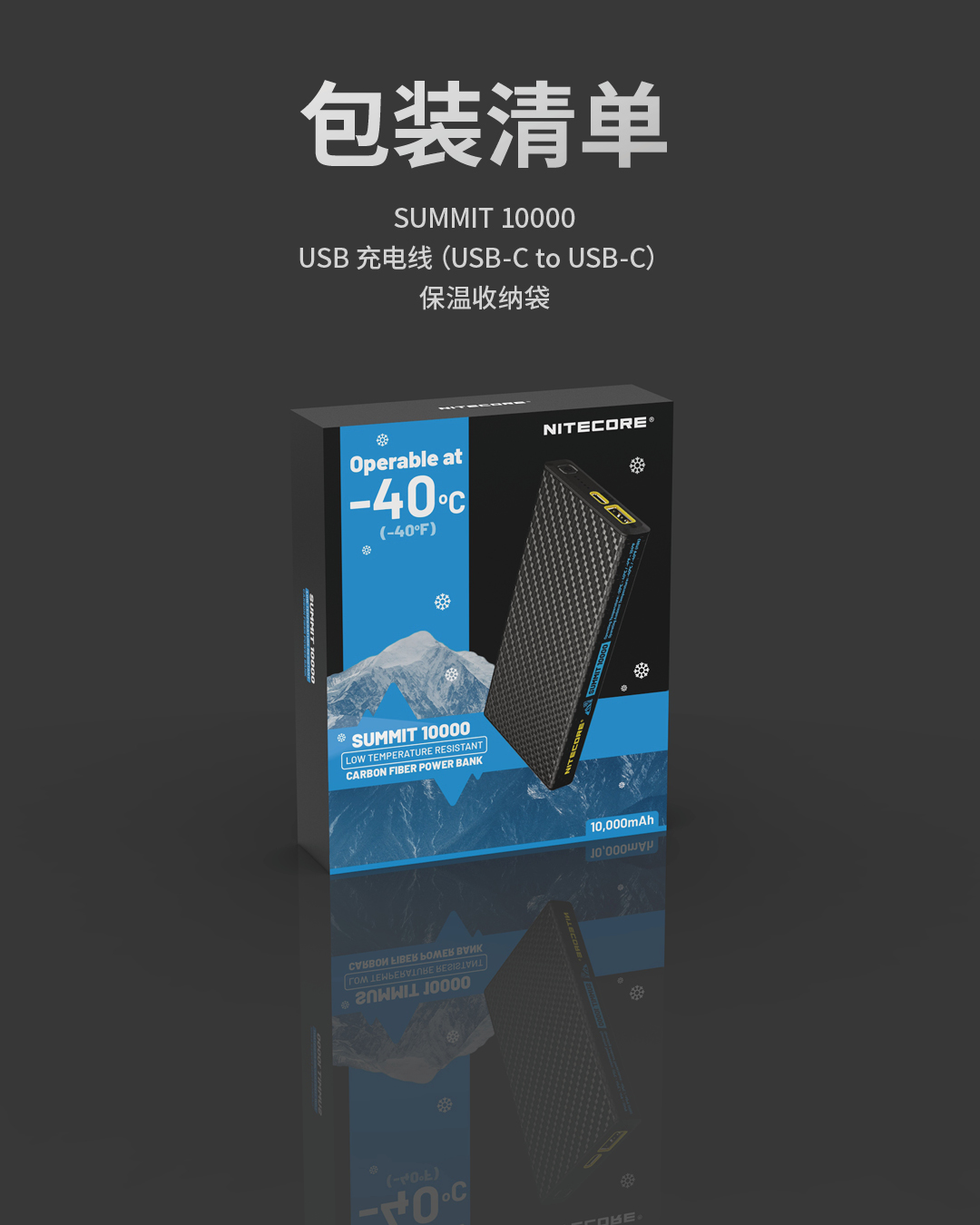 奈特科尔户外移动电源高寒碳纤维充电宝SUMMIT10000mAh毫安大容量