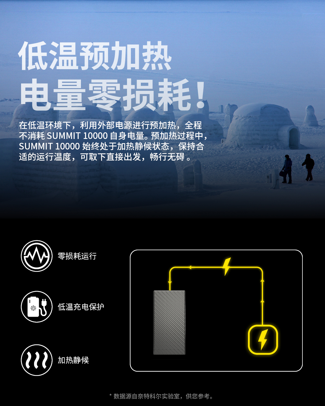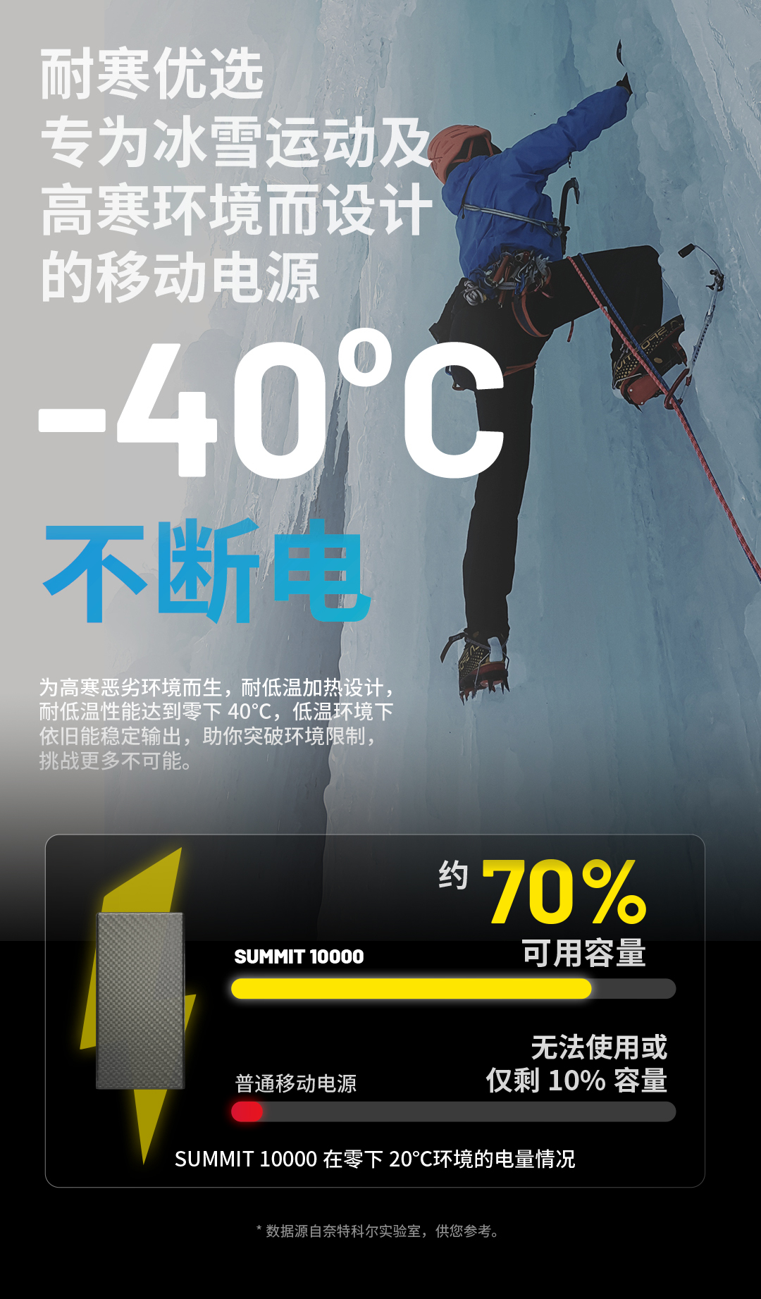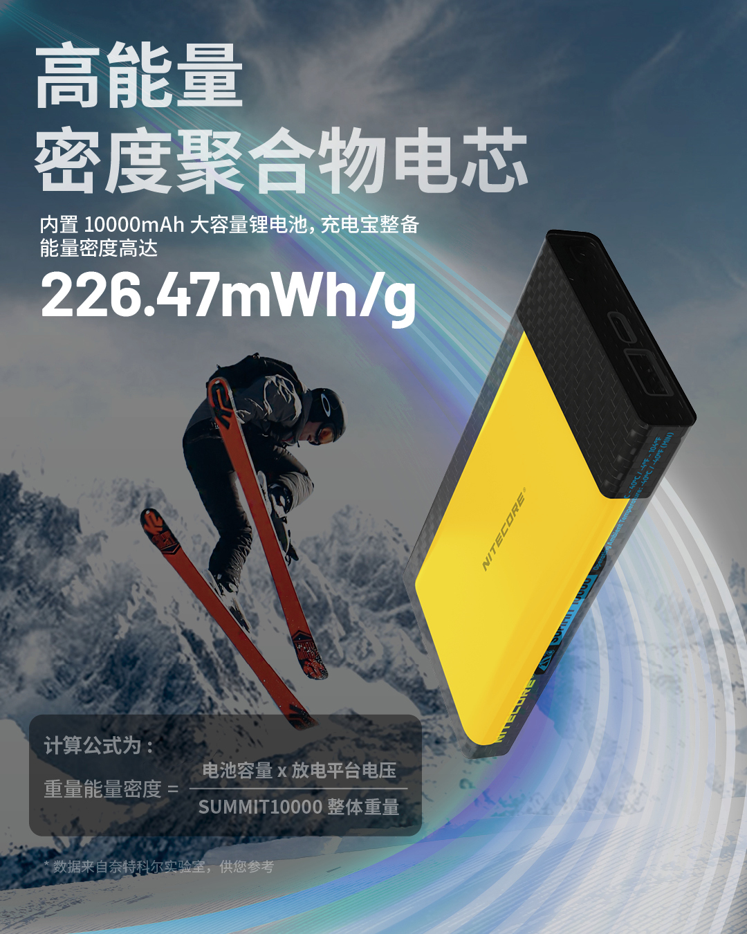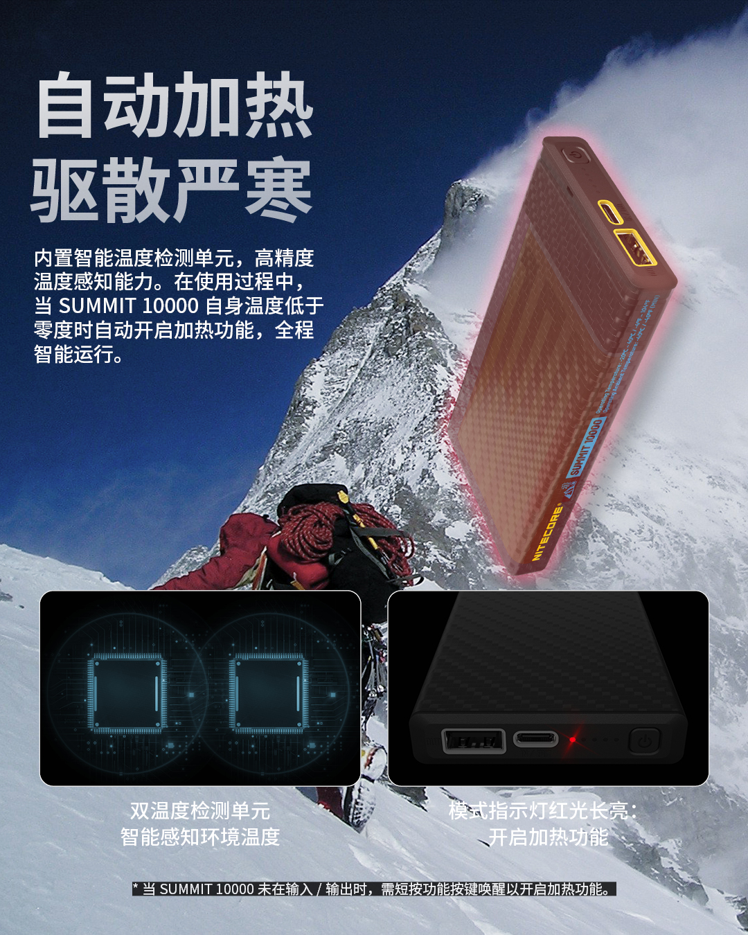 奈特科尔户外移动电源高寒碳纤维充电宝SUMMIT10000mAh毫安大容量