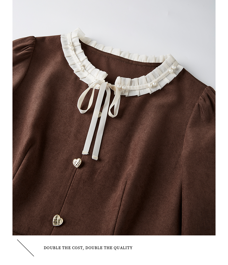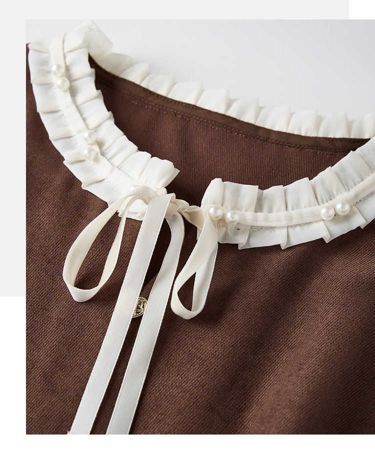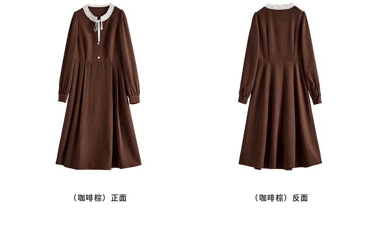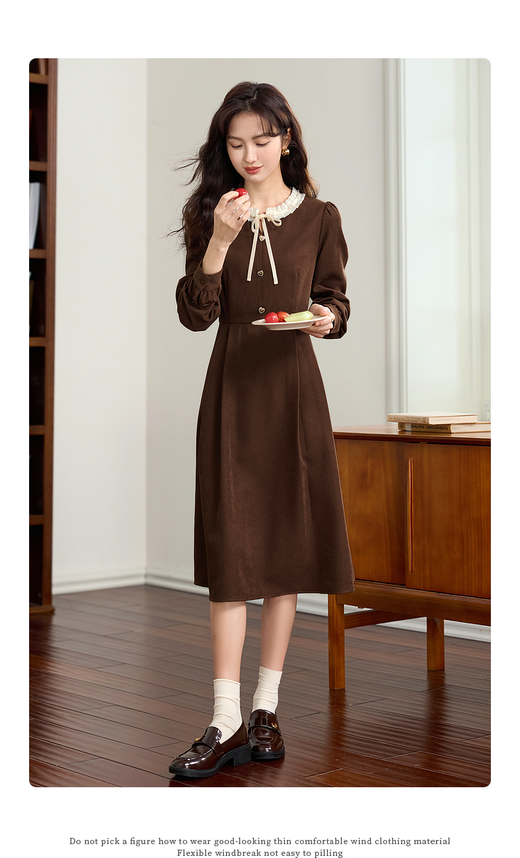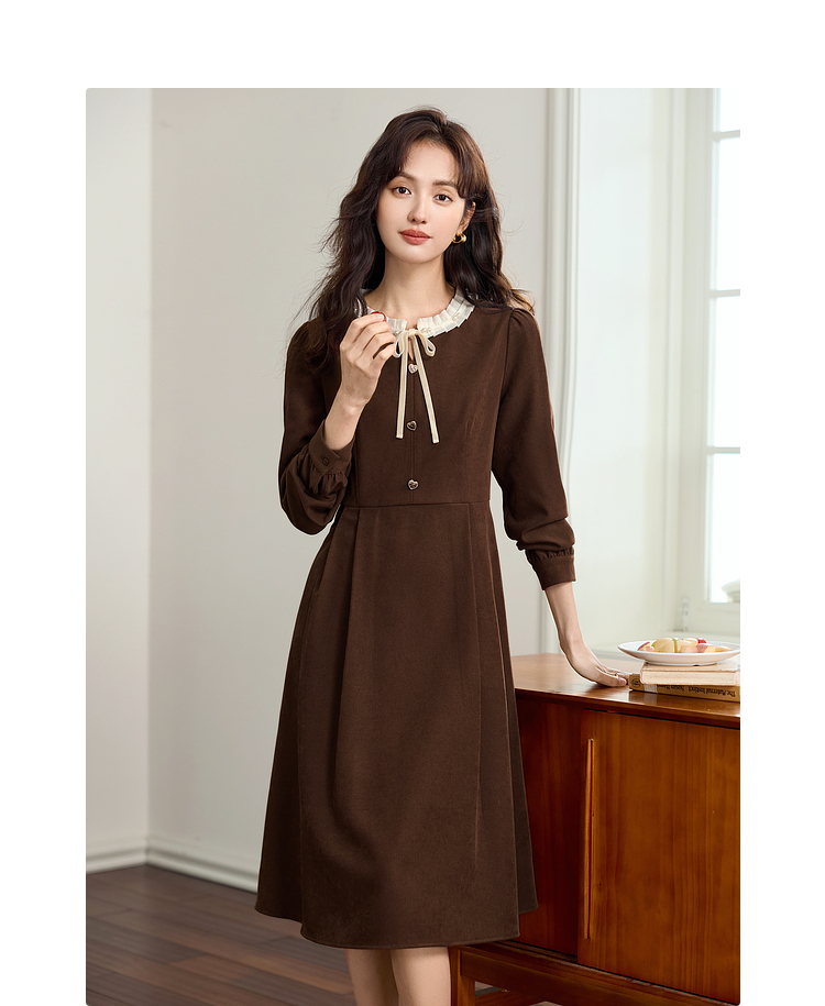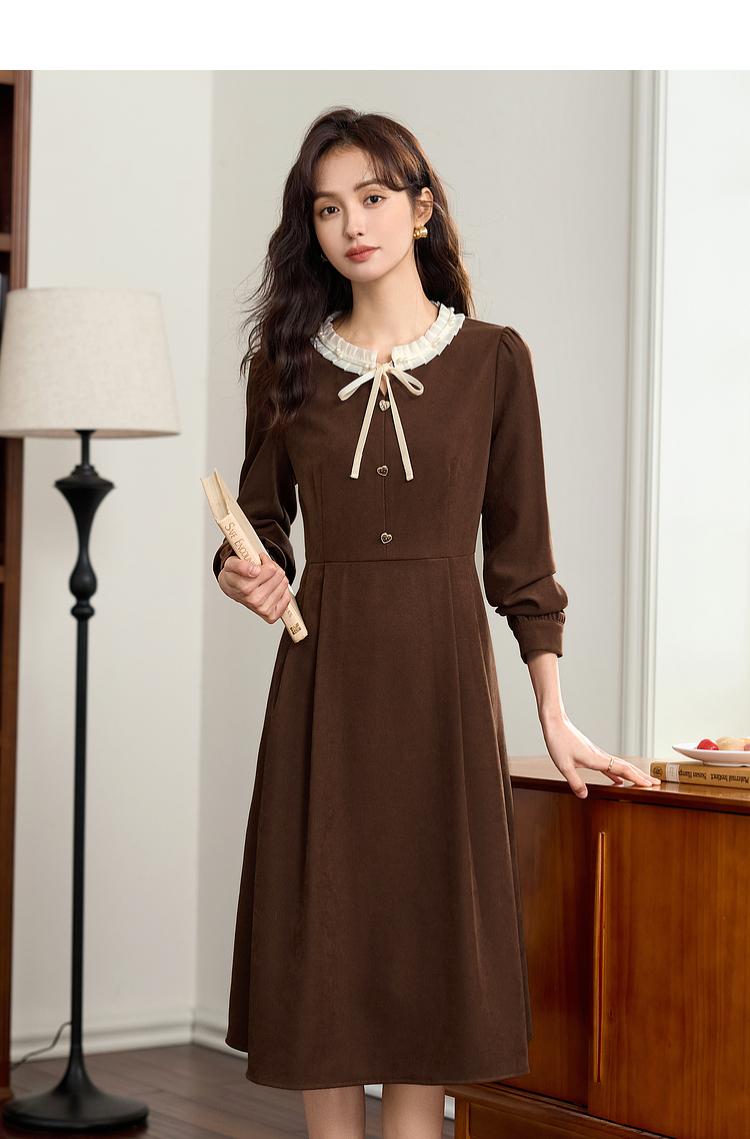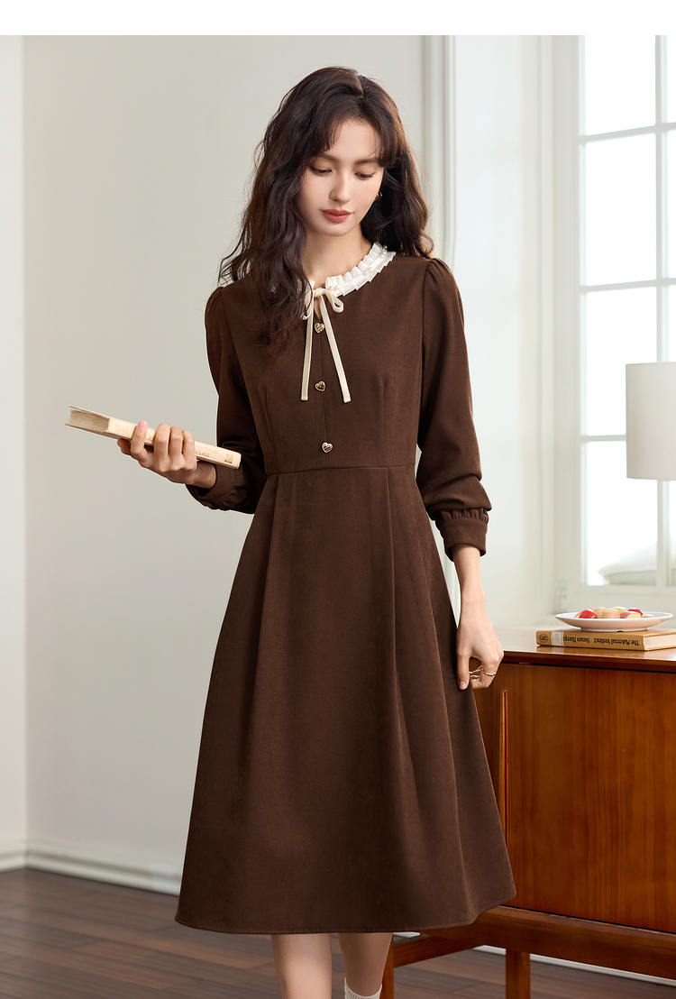 【专属特价】熙世界复古棕色磨毛连衣裙长袖2025秋冬新款气质美拉德穿搭裙子