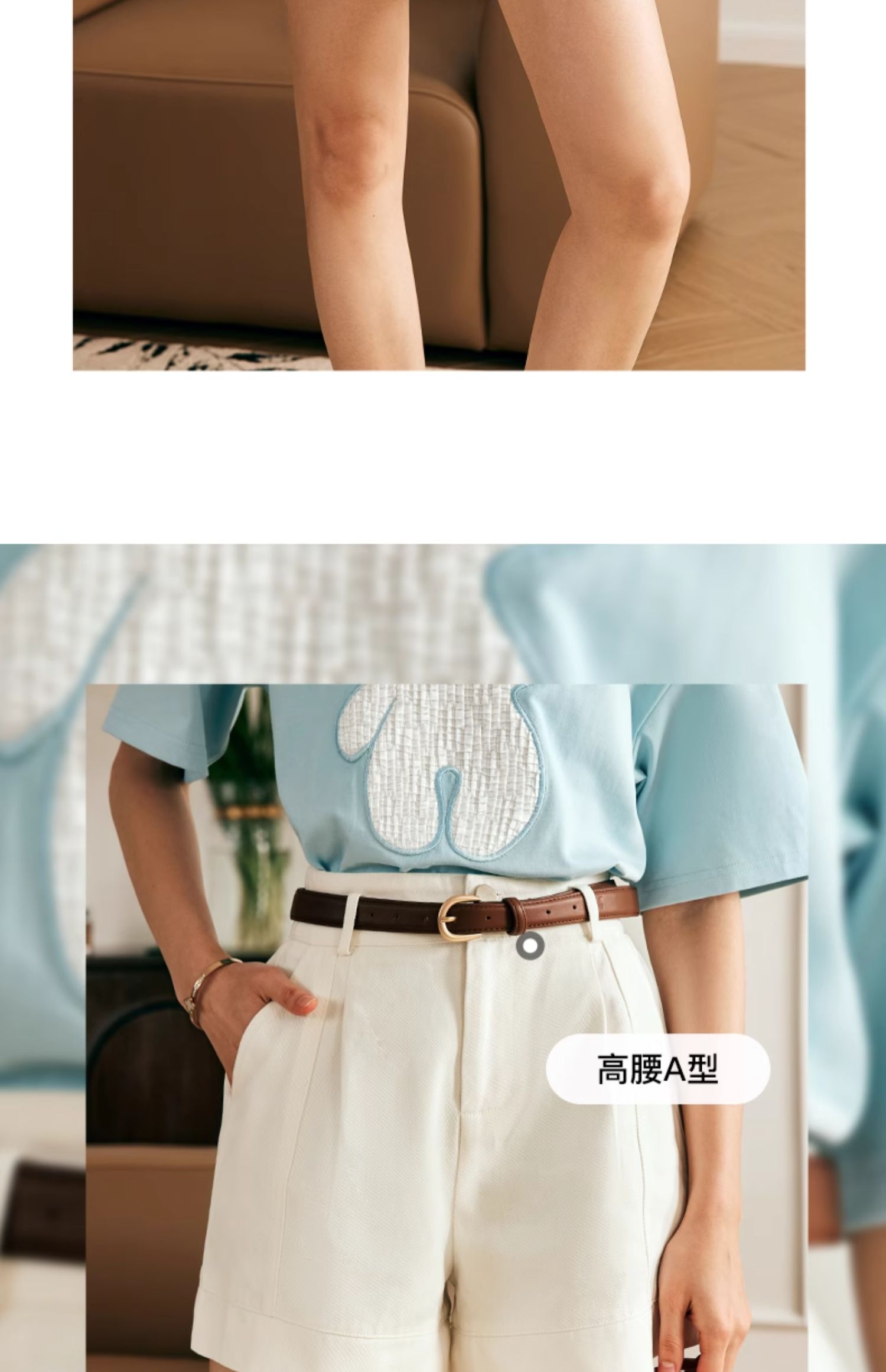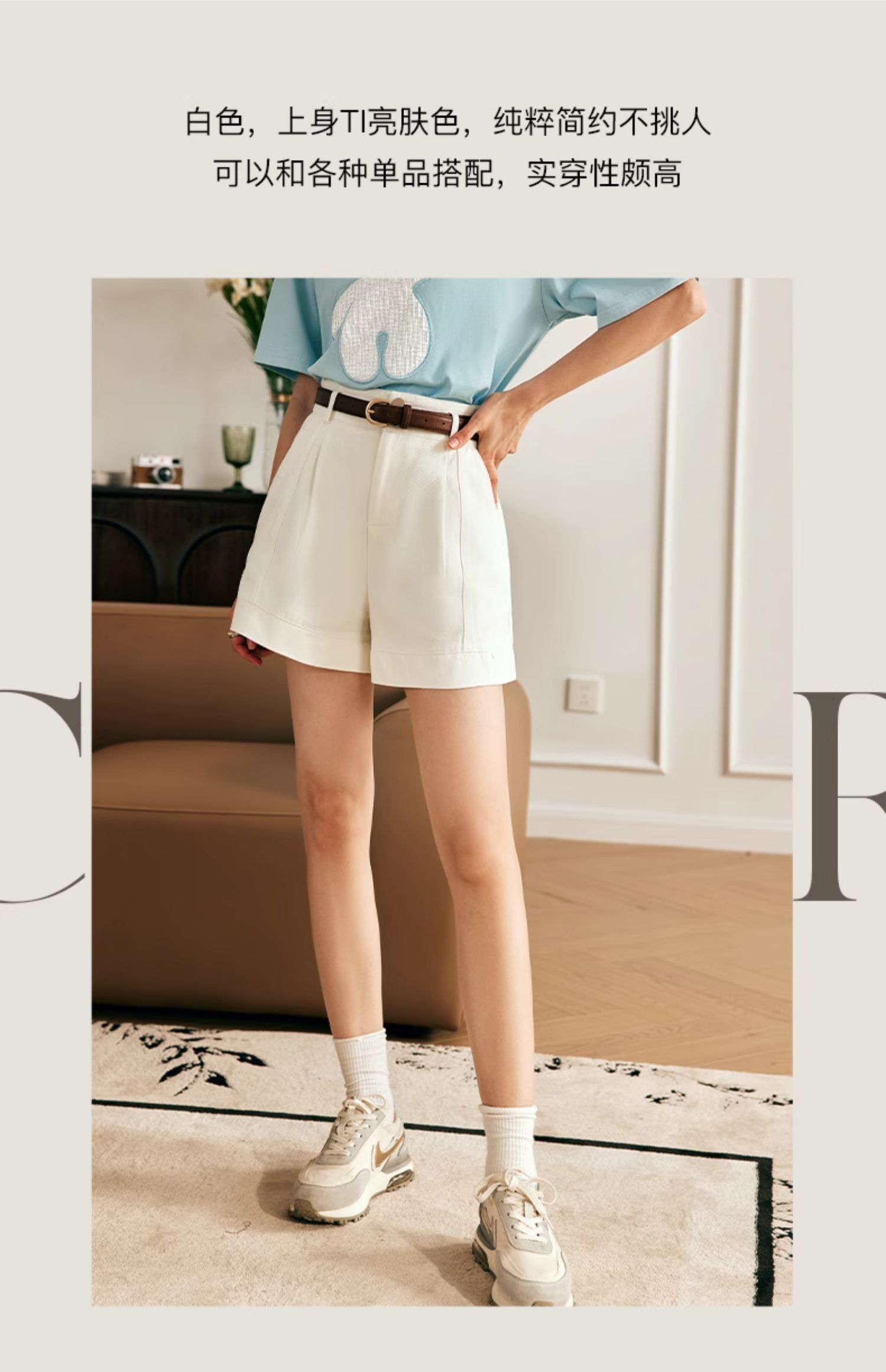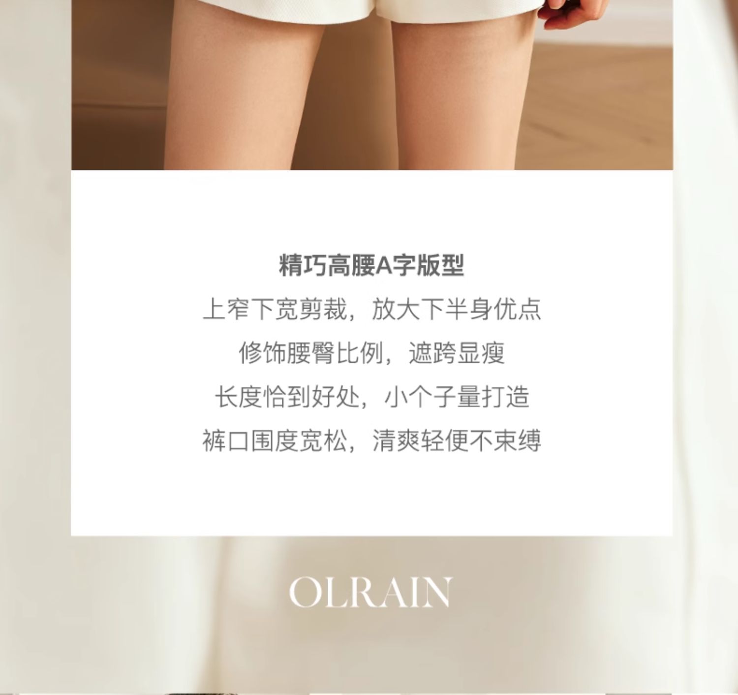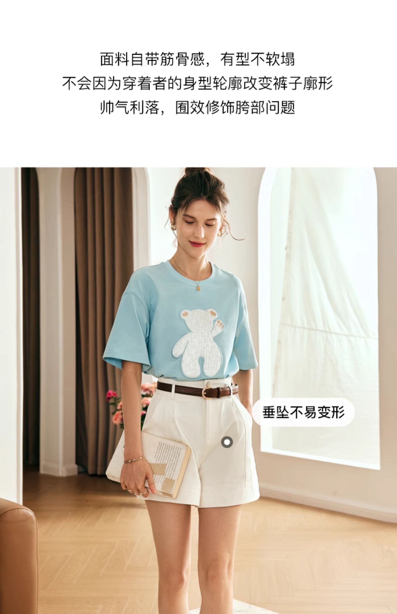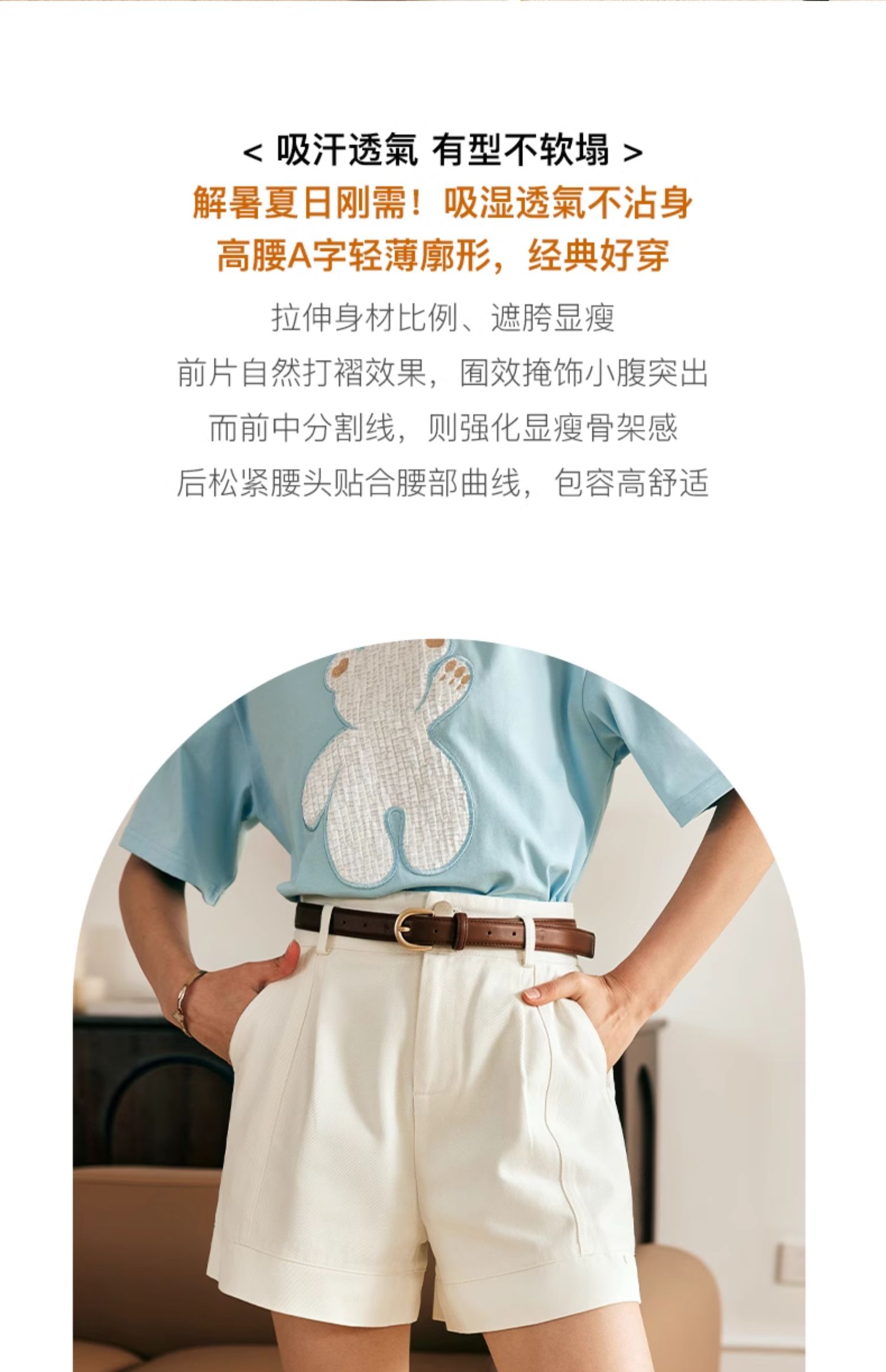 OLrain欧芮儿法式白色休闲裤女夏季2024新款高腰通勤阔腿A字短裤