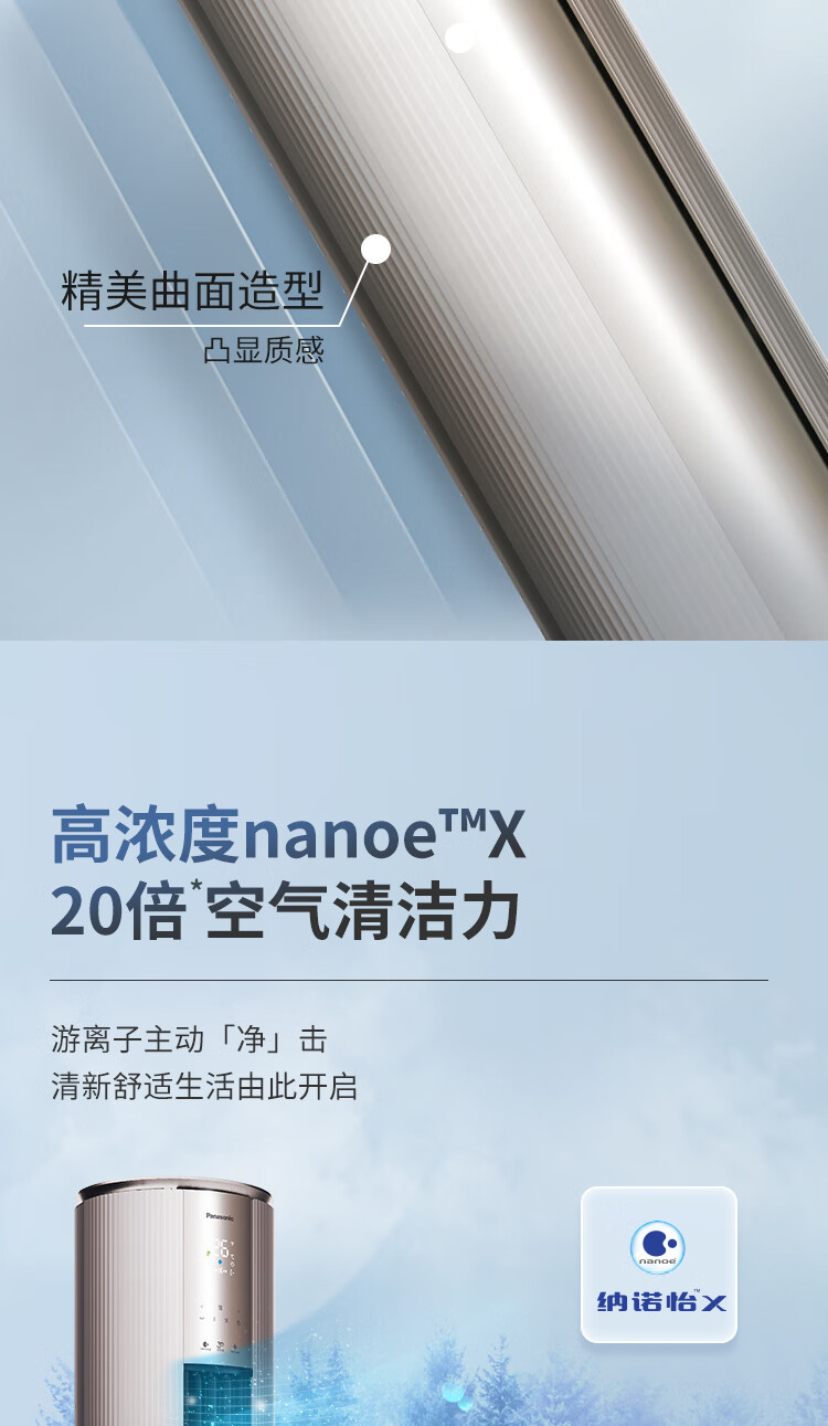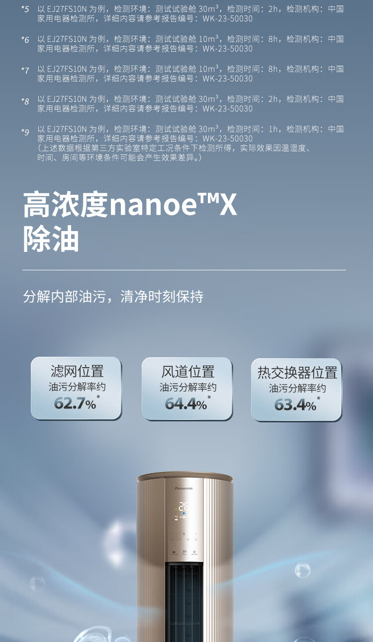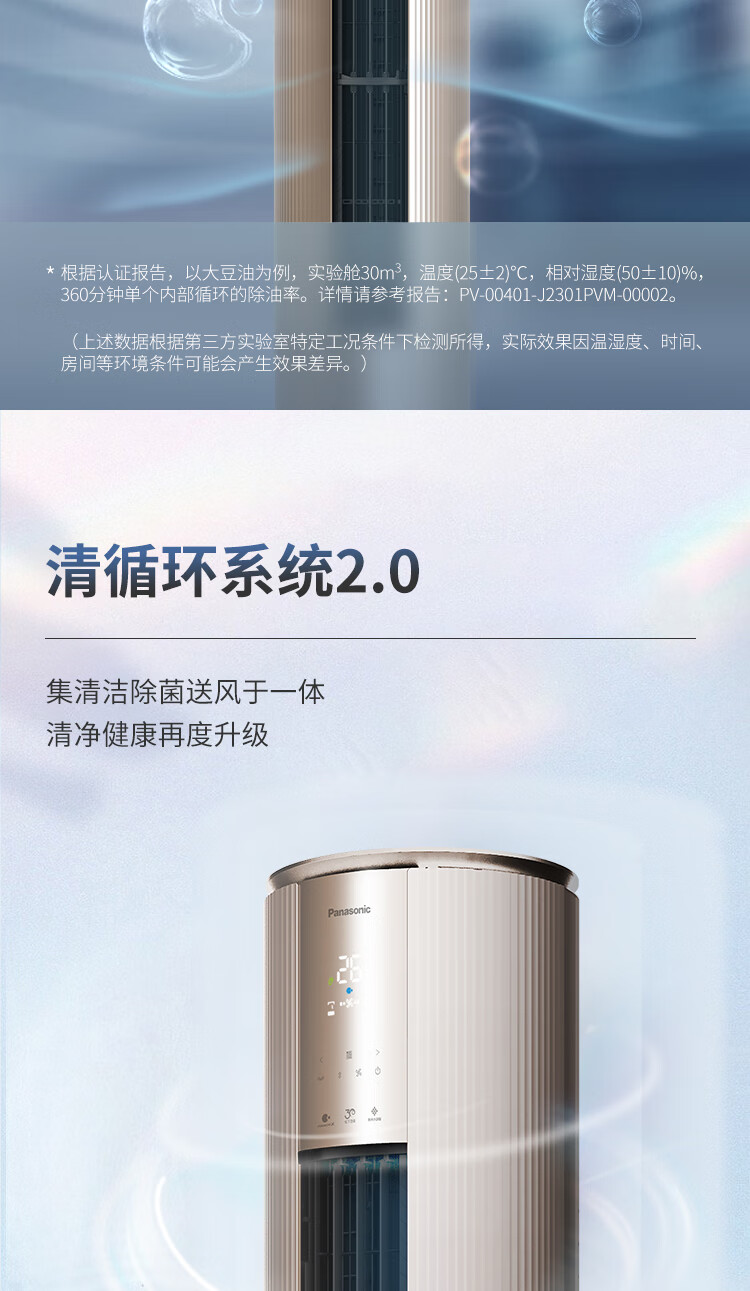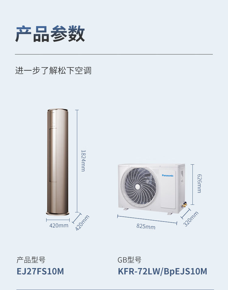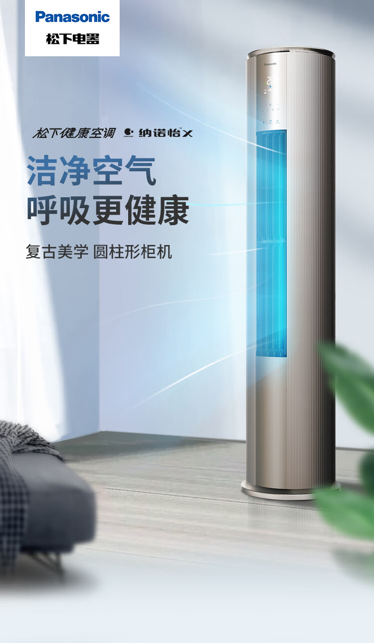 松下空调3匹新一级能效变频冷暖圆柱柜机 纳诺怡除菌洁净客厅立式空调 原装压缩机 EJ27FS10M