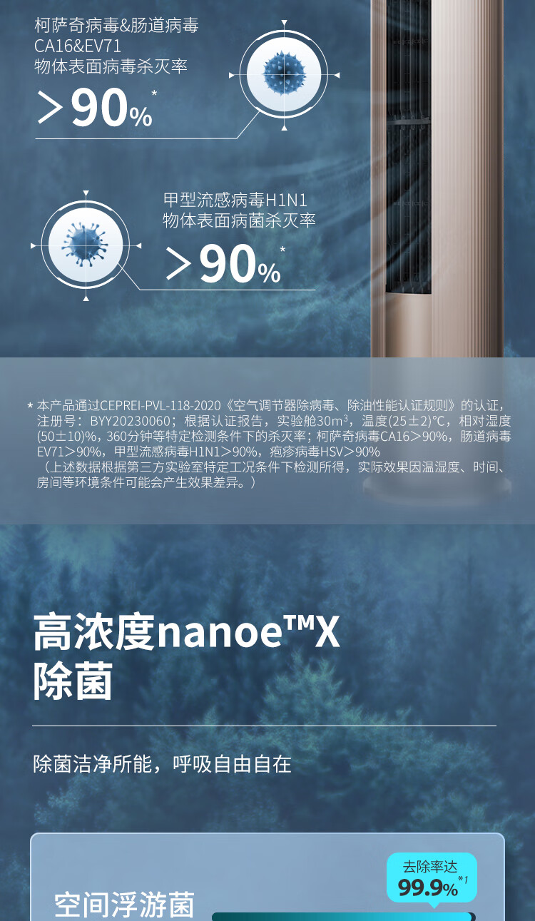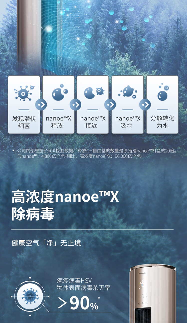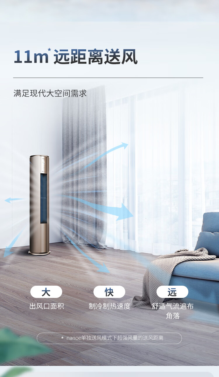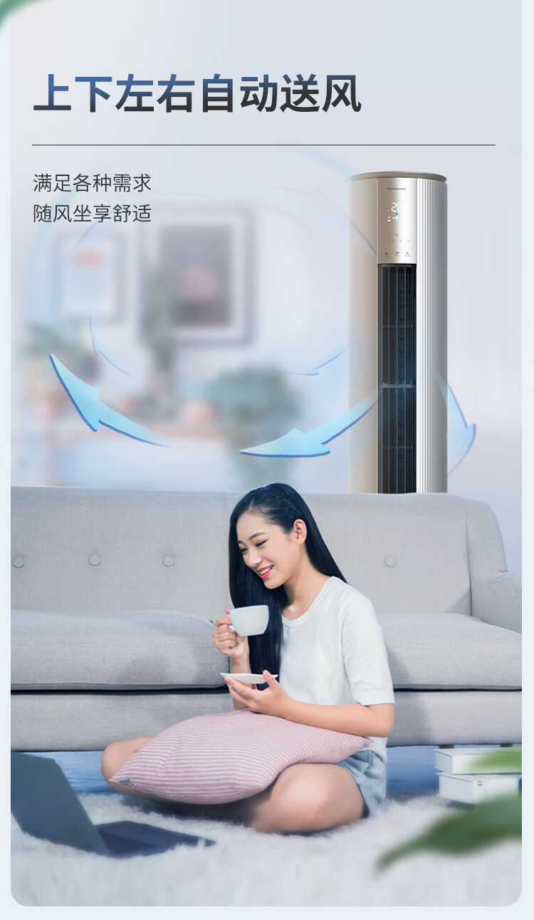 松下空调3匹新一级能效变频冷暖圆柱柜机 纳诺怡除菌洁净客厅立式空调 原装压缩机 EJ27FS10M