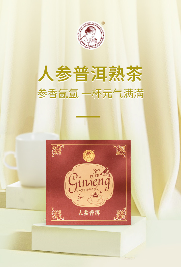 澜沧古茶茶妈妈人参普洱袋泡茶三角茶包普洱茶熟茶茶叶花茶2g*10
