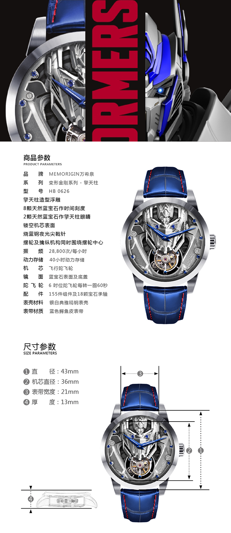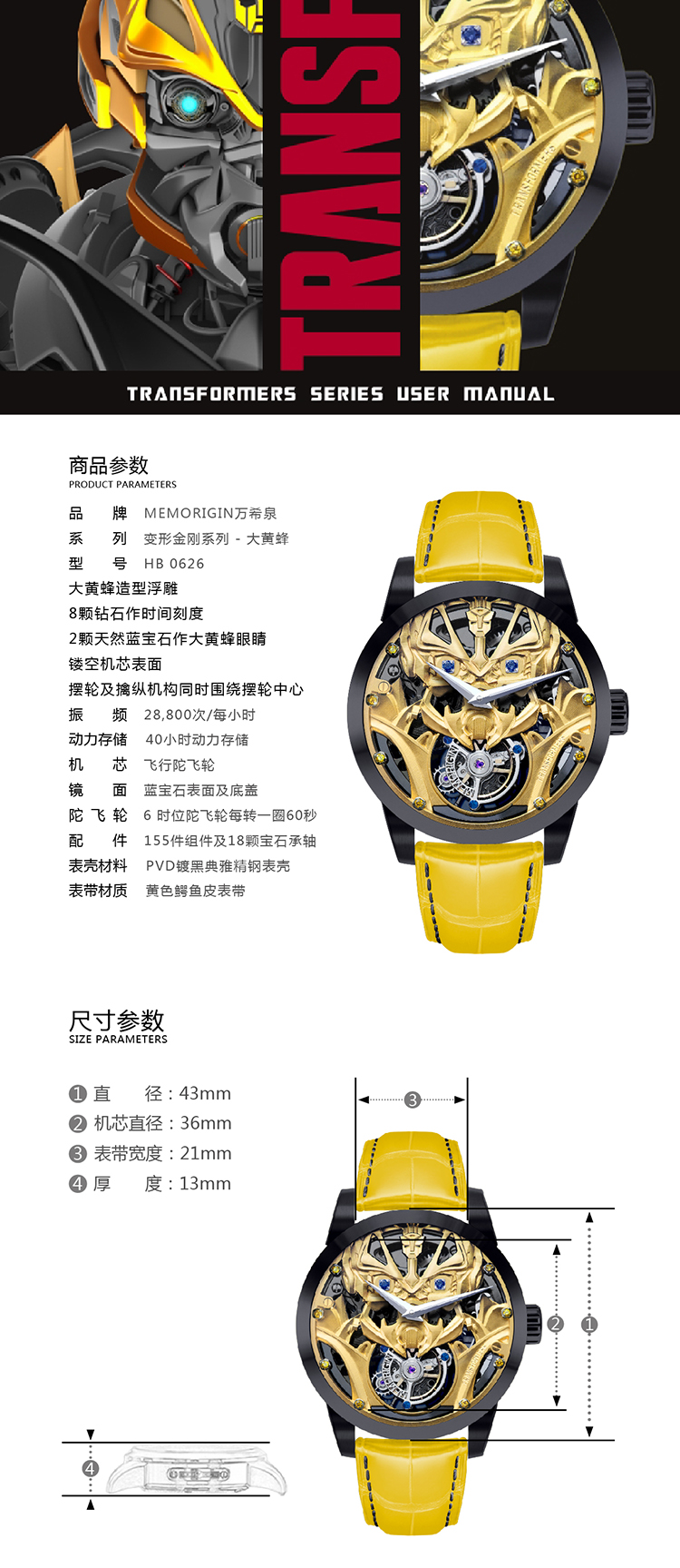MEMORIGIN 万希泉陀飞轮腕表 机械表 变形金刚系列大黄蜂 擎天柱