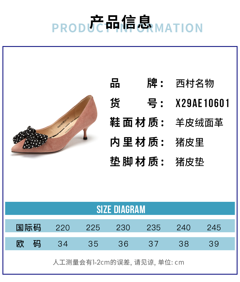西村名物商场同款高跟鞋2019春季新款蝴蝶结细跟正装鞋10601