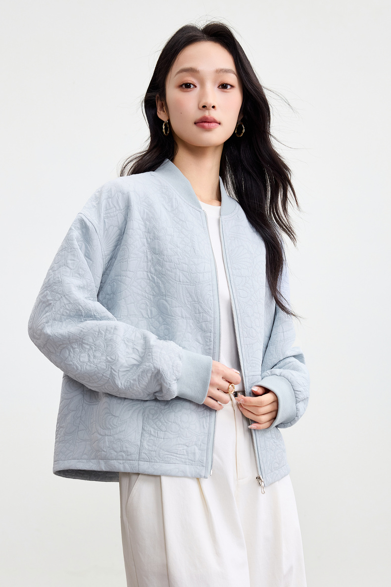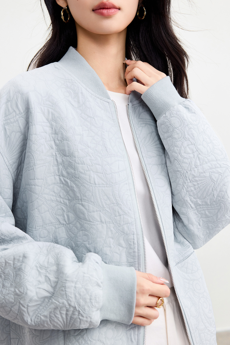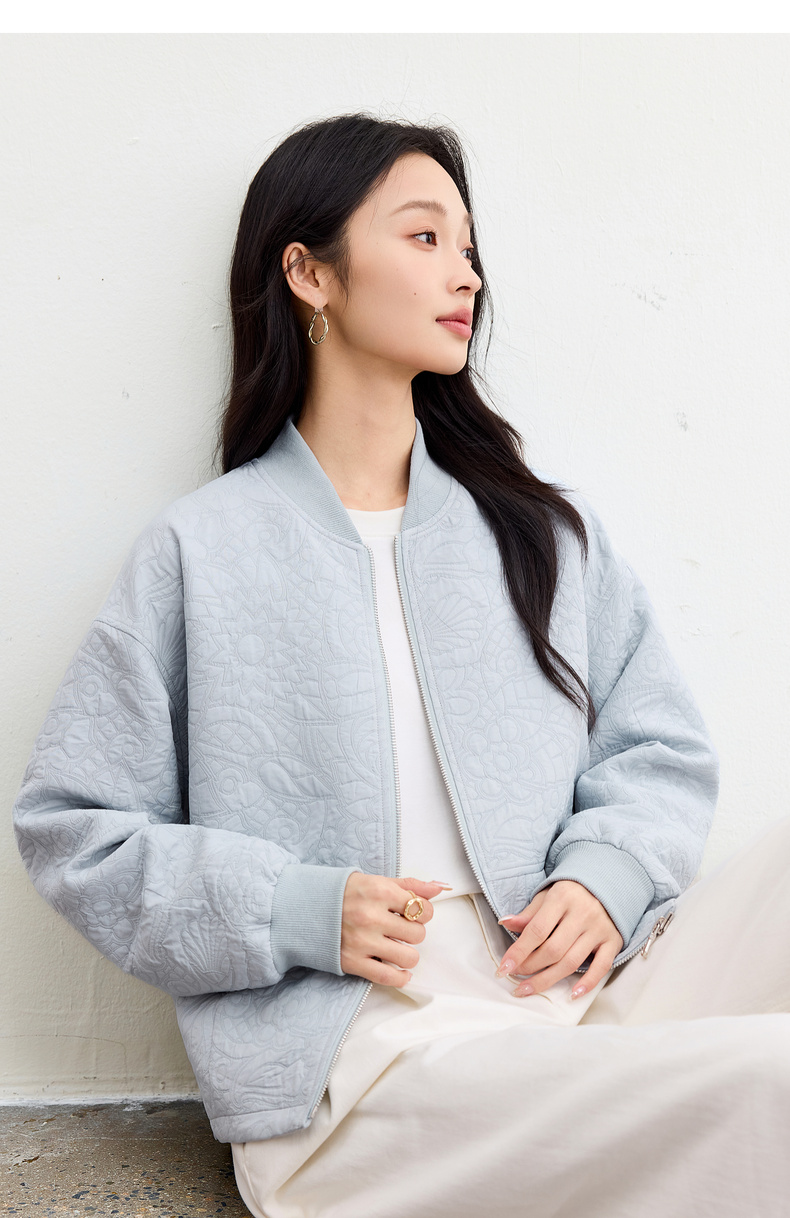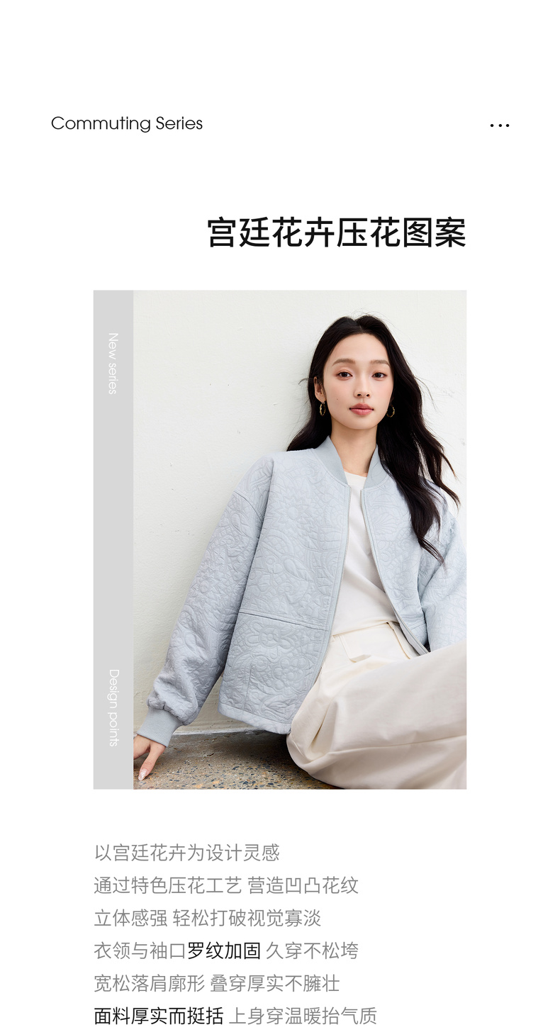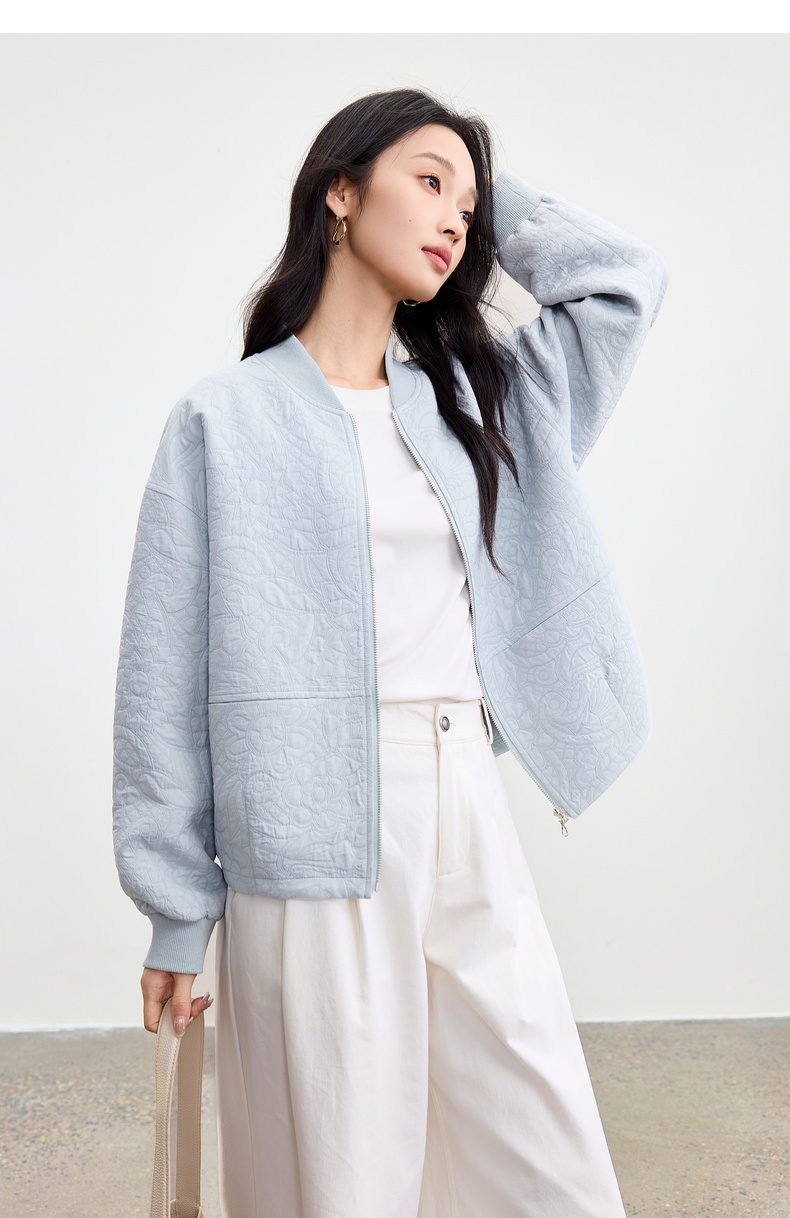 【内购】【厚实保暖】都市通勤棒球领拉链宽松落肩宫廷花卉肌理棒球服外套-153WB3148