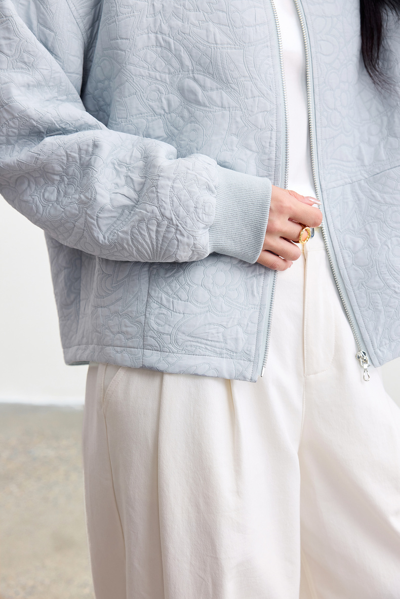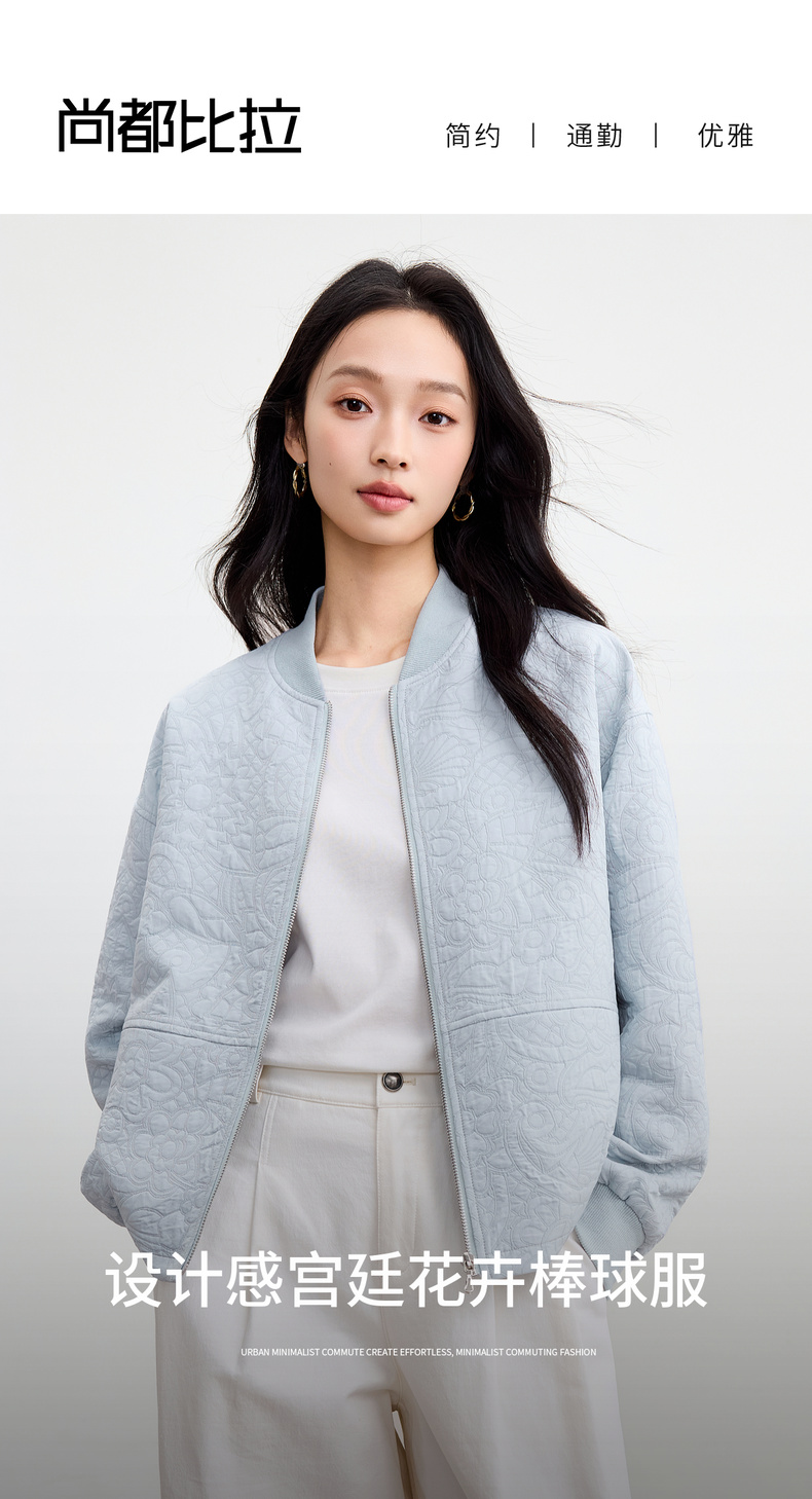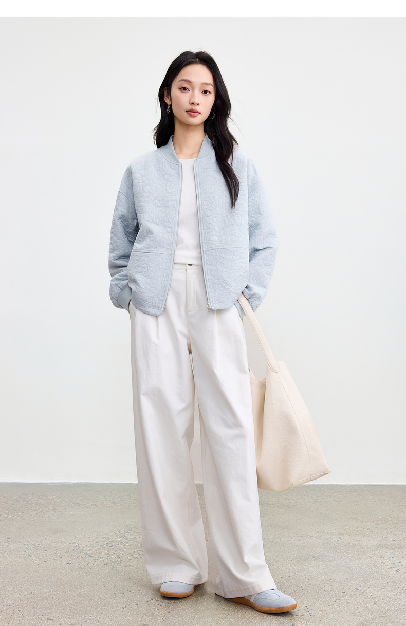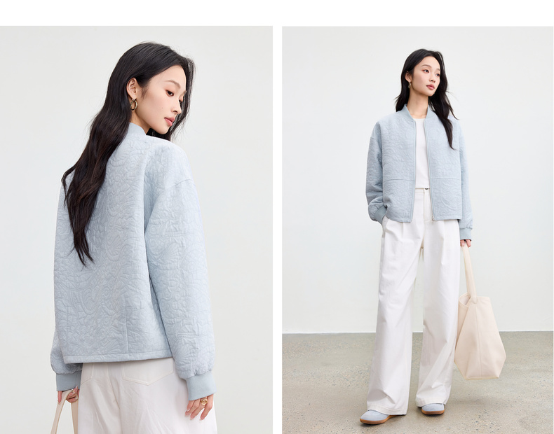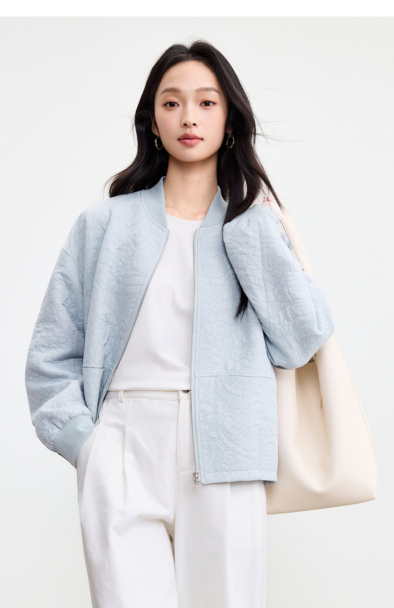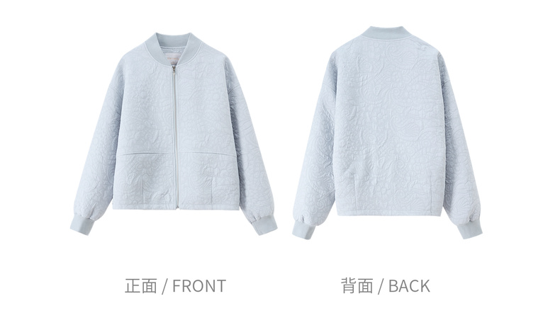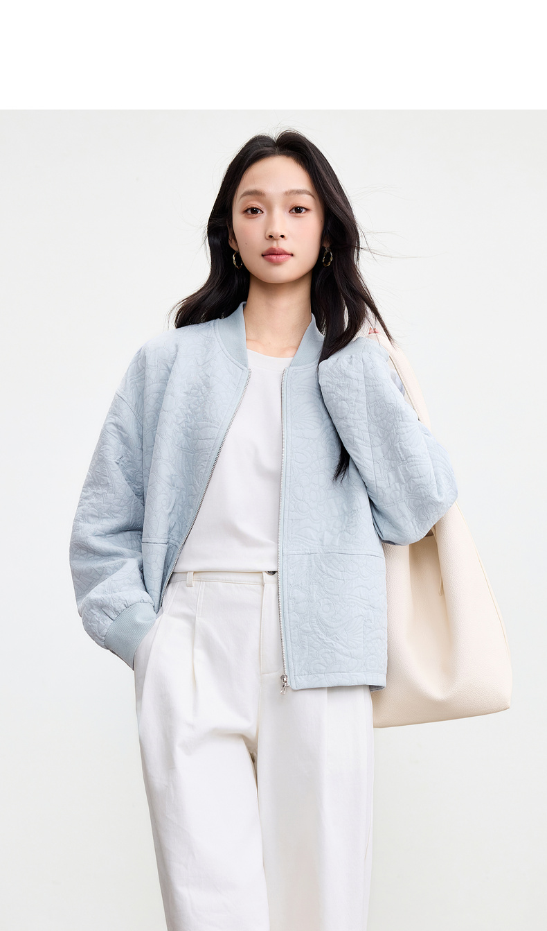 【内购】【厚实保暖】都市通勤棒球领拉链宽松落肩宫廷花卉肌理棒球服外套-153WB3148