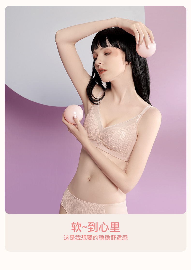 【侧收立体纹三排扣】爱帝女式蕾丝文胸B杯型