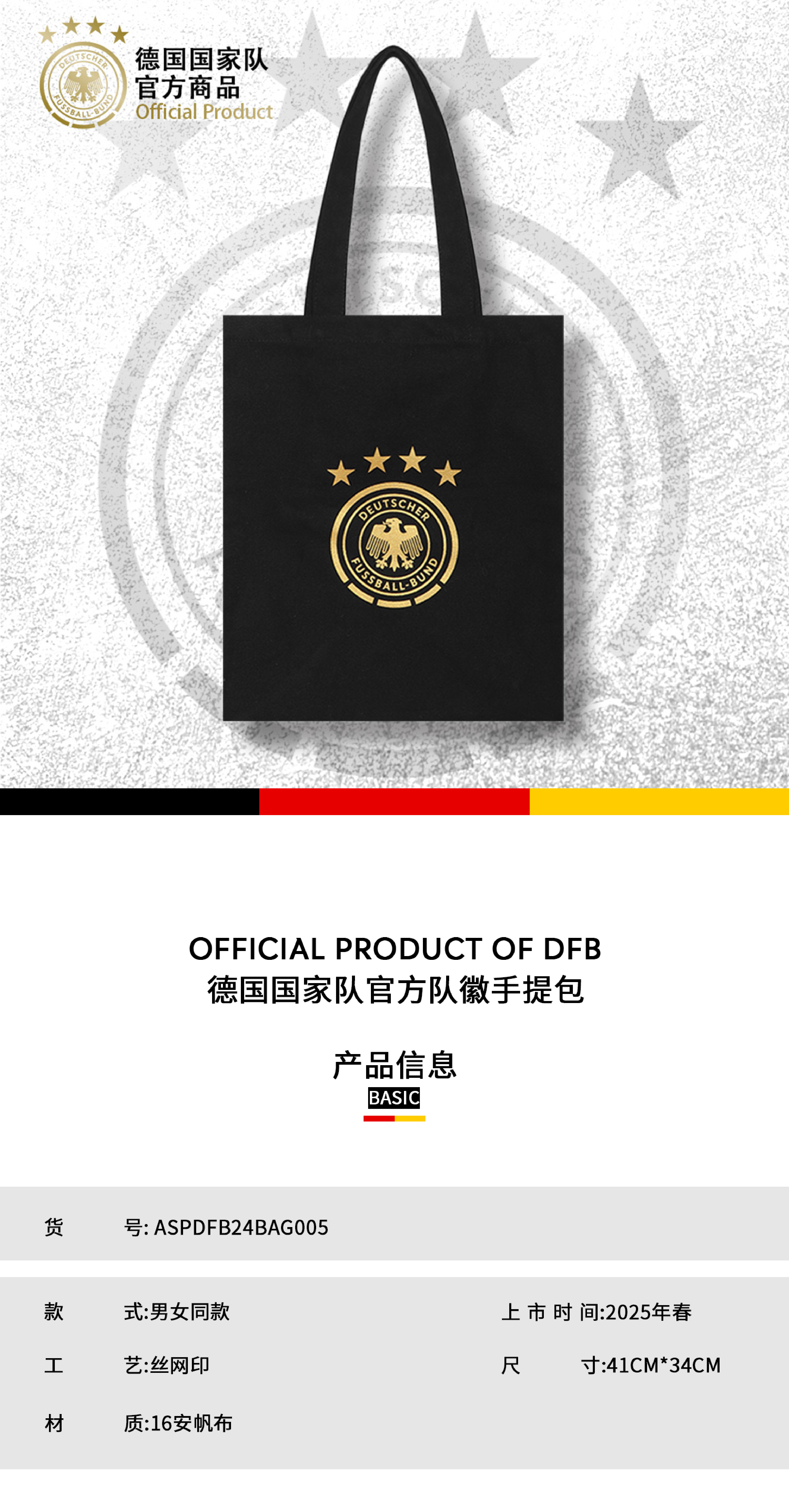 【官方正版】德国国家队 | 队徽手提包足球迷帆布包单肩挎袋子