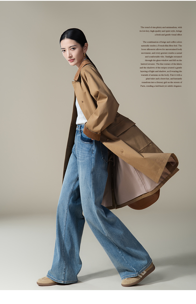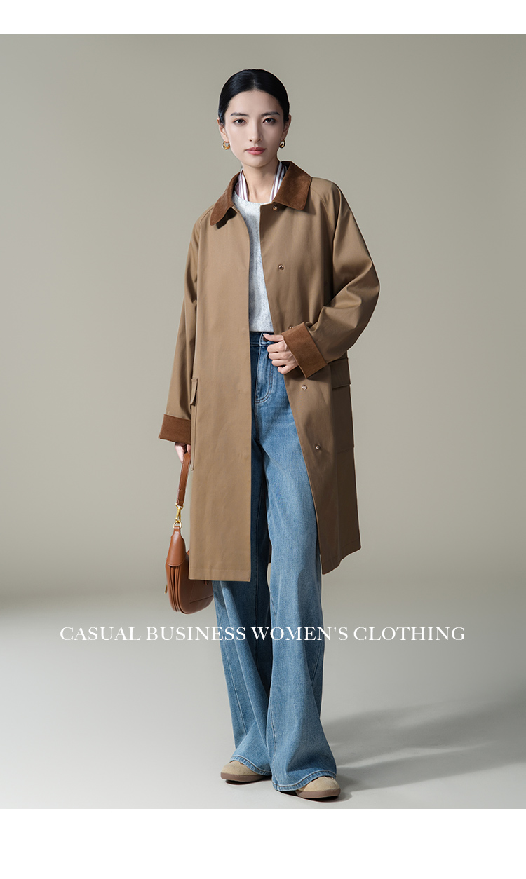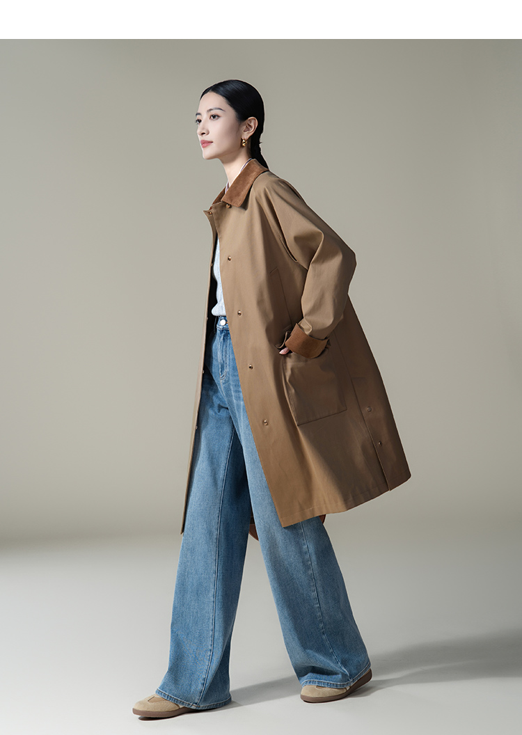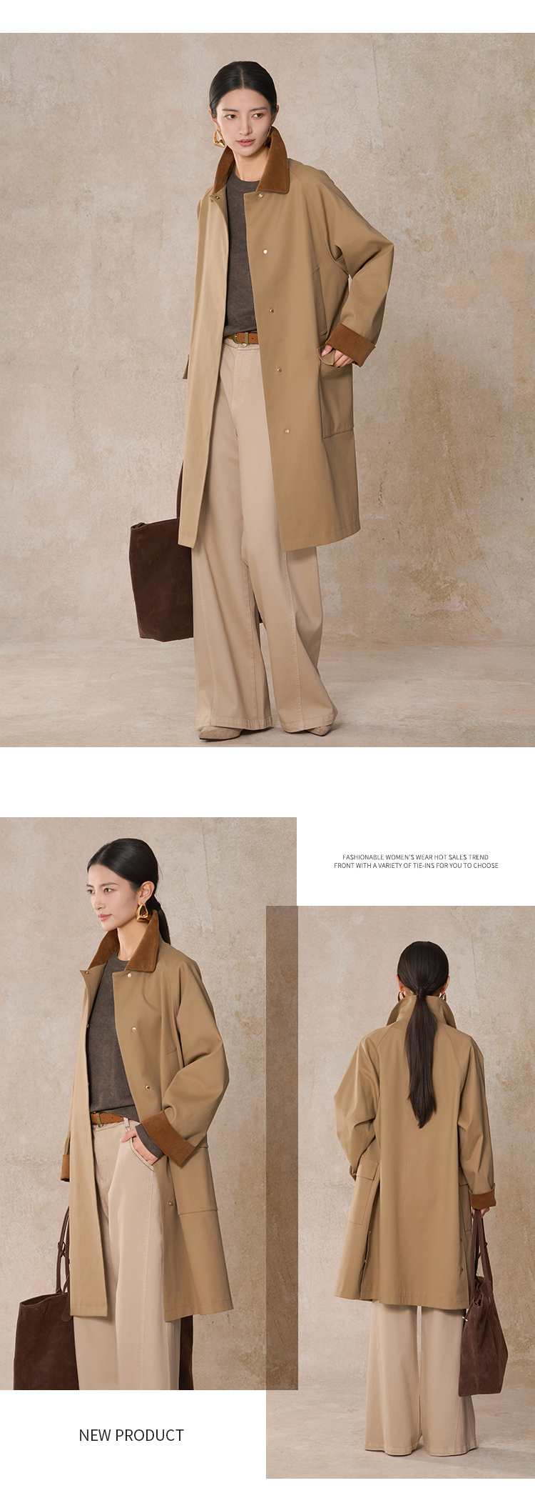 【商场同款】CNG5911 “ 巴恩风衣 ” 领口不同材质拼色 增加层次感 H廓形打造利落大气