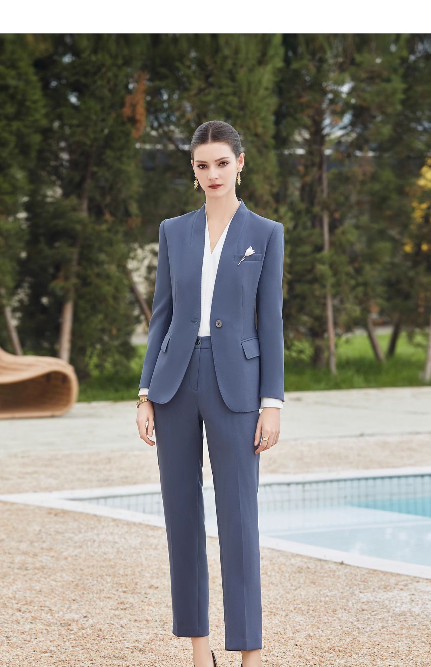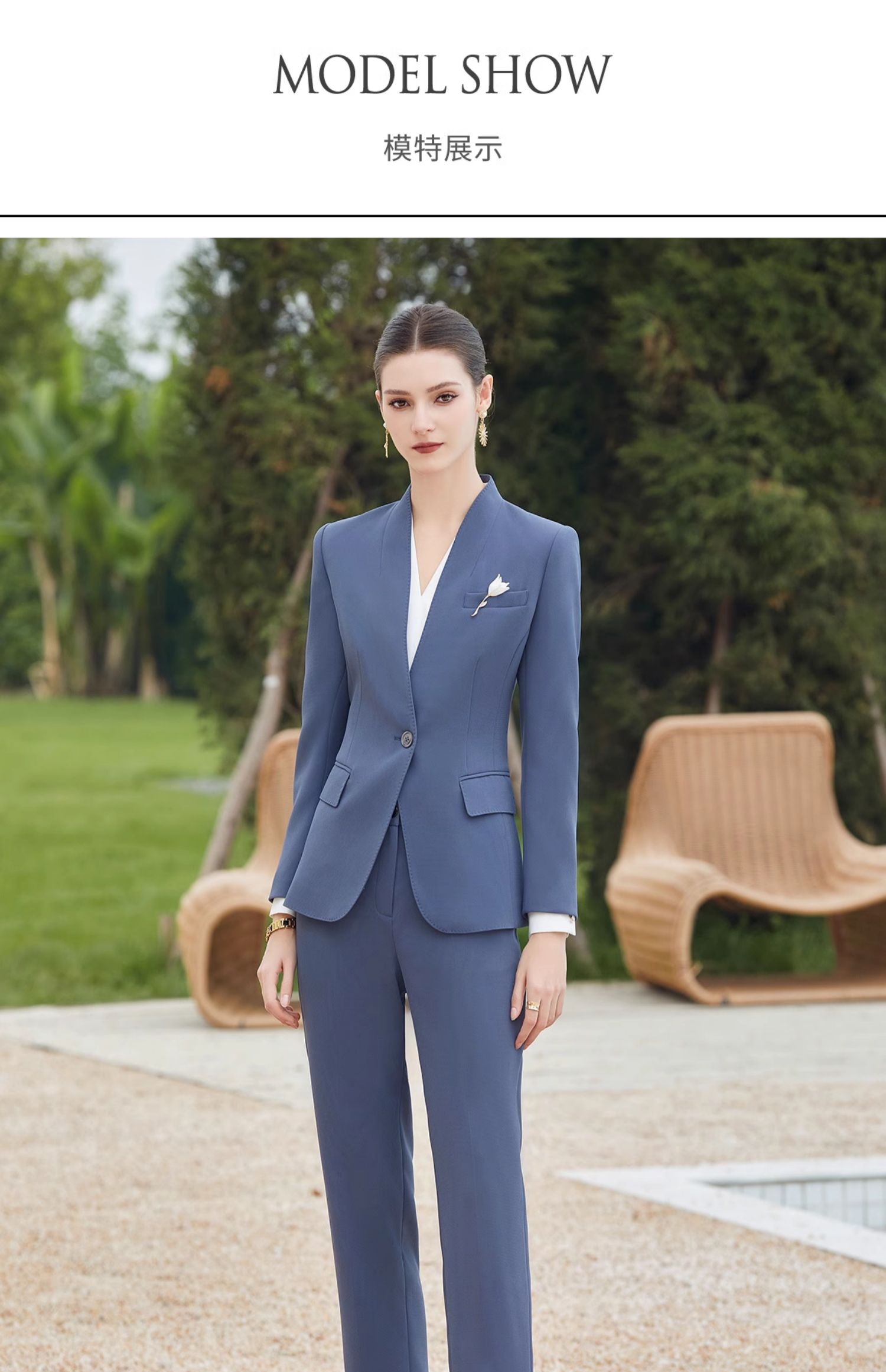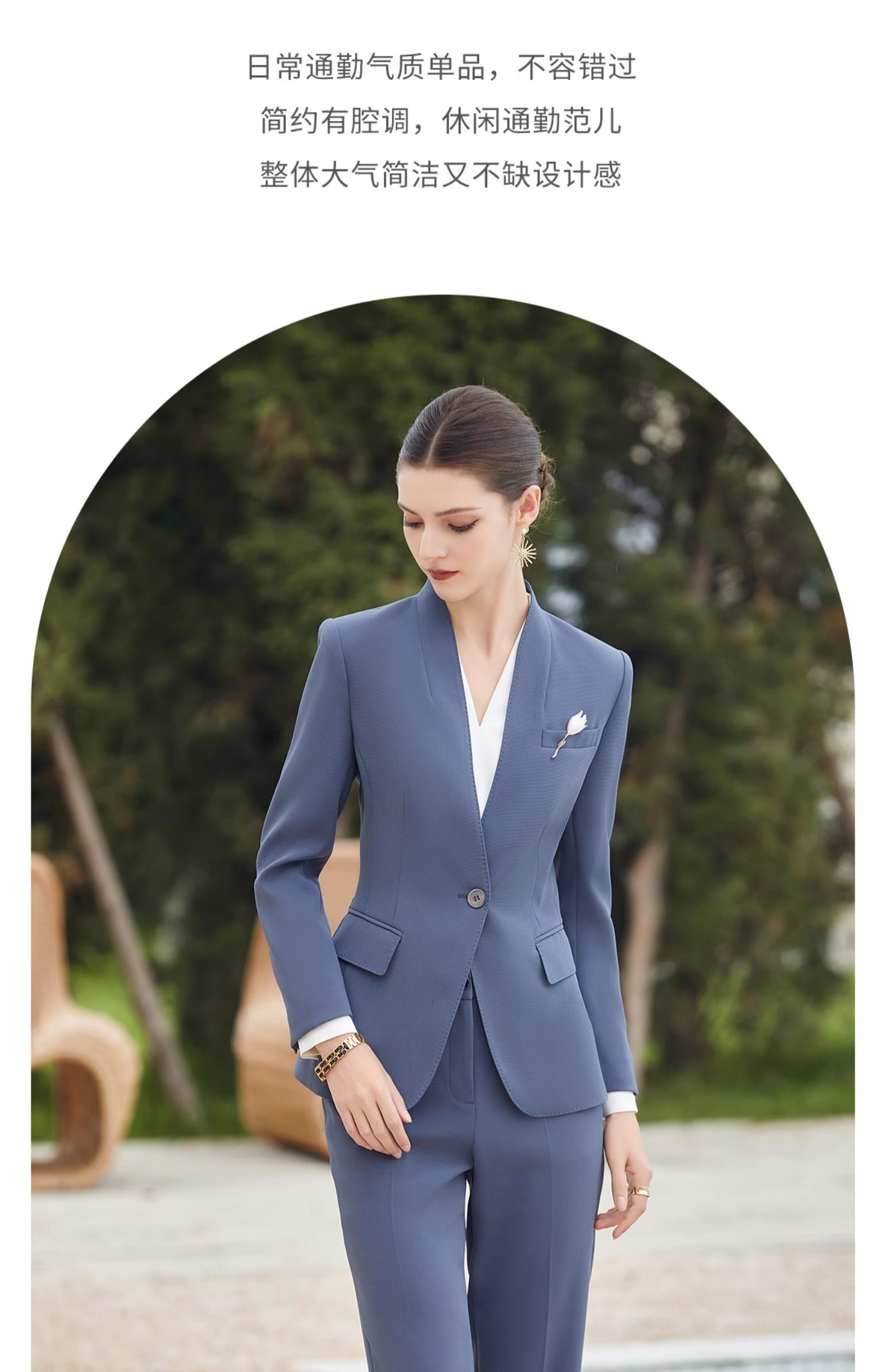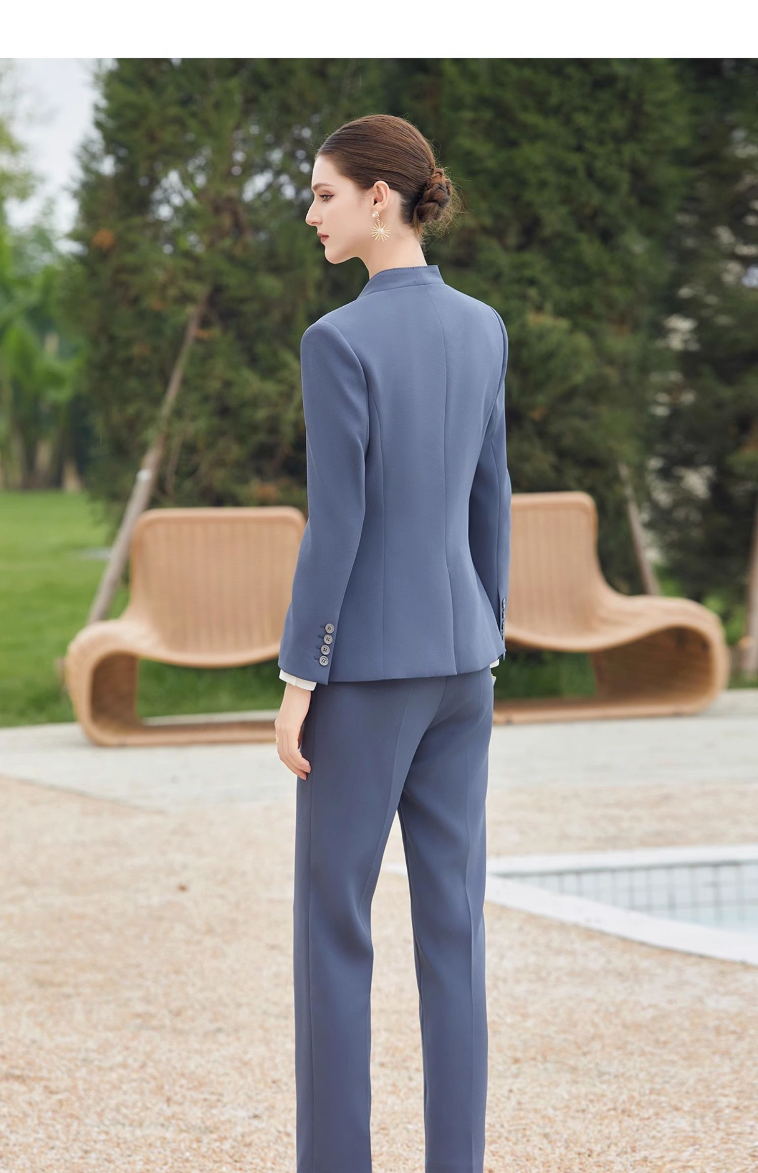 IWY/蓝色高端无领西服外套女士职业装春秋套装女职业装CP2013