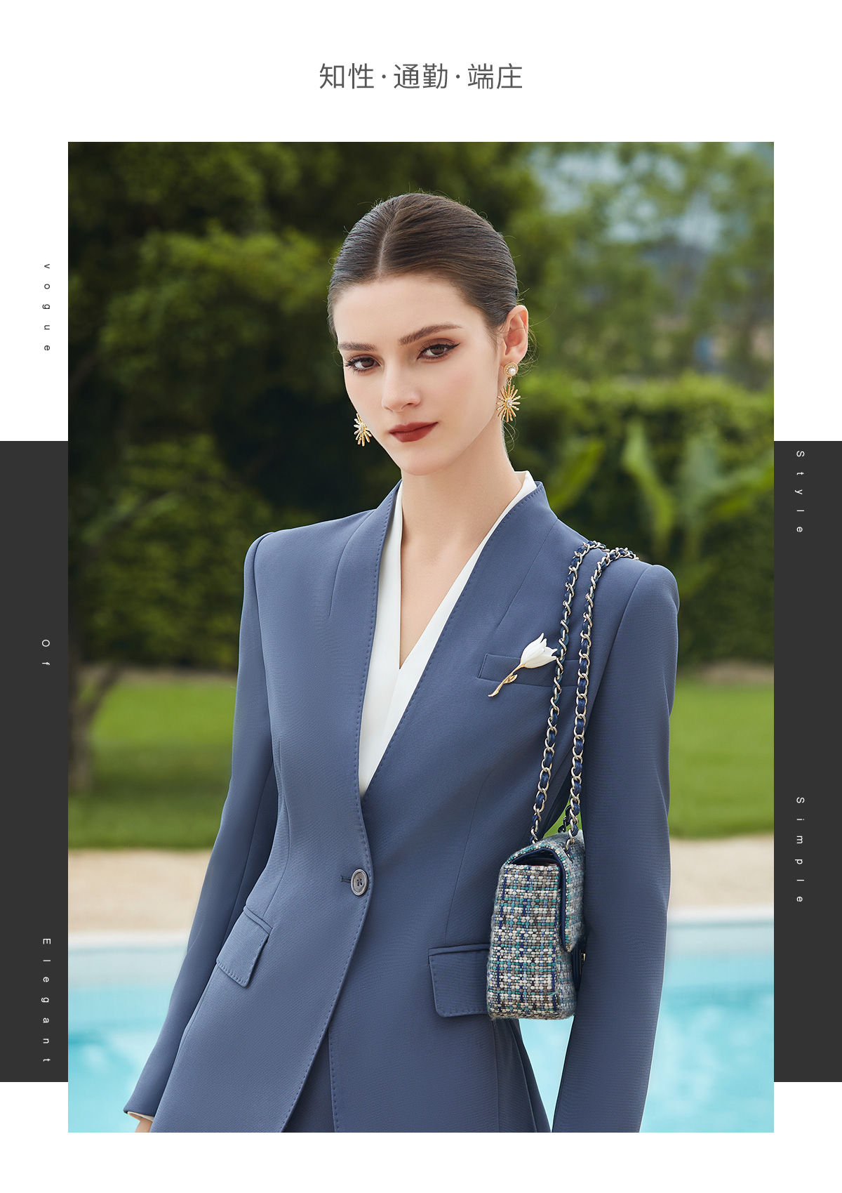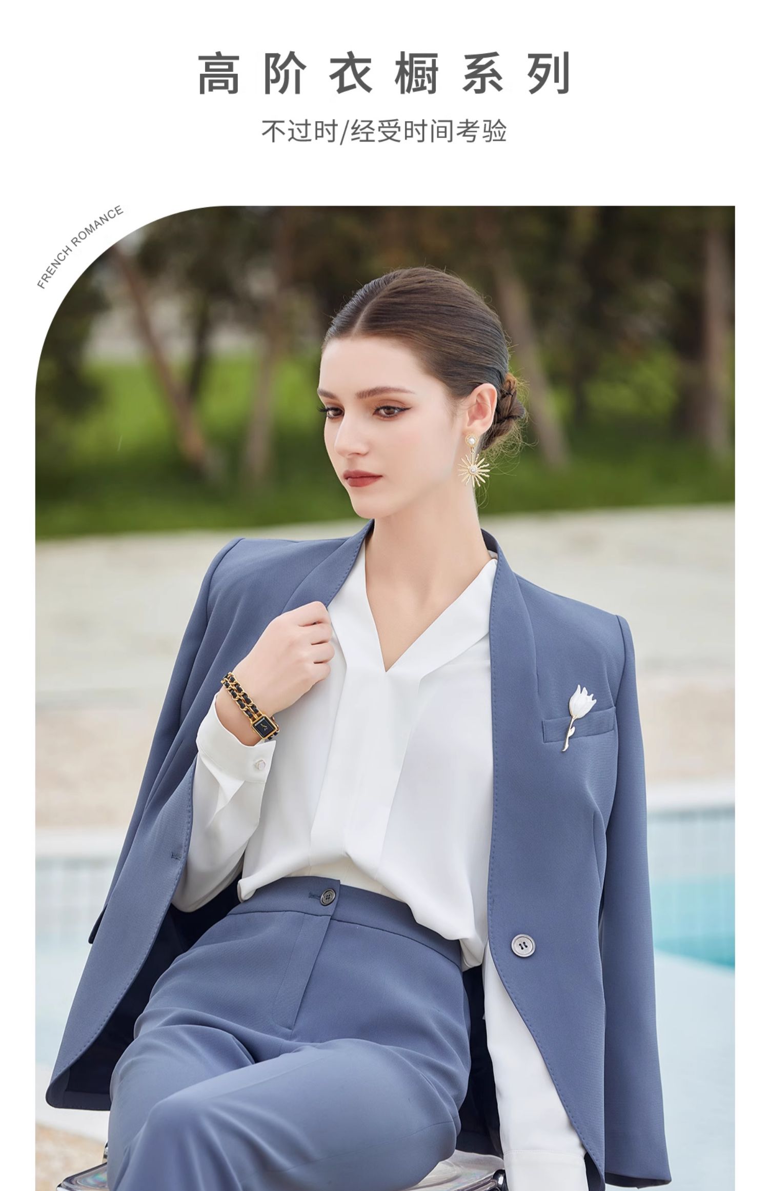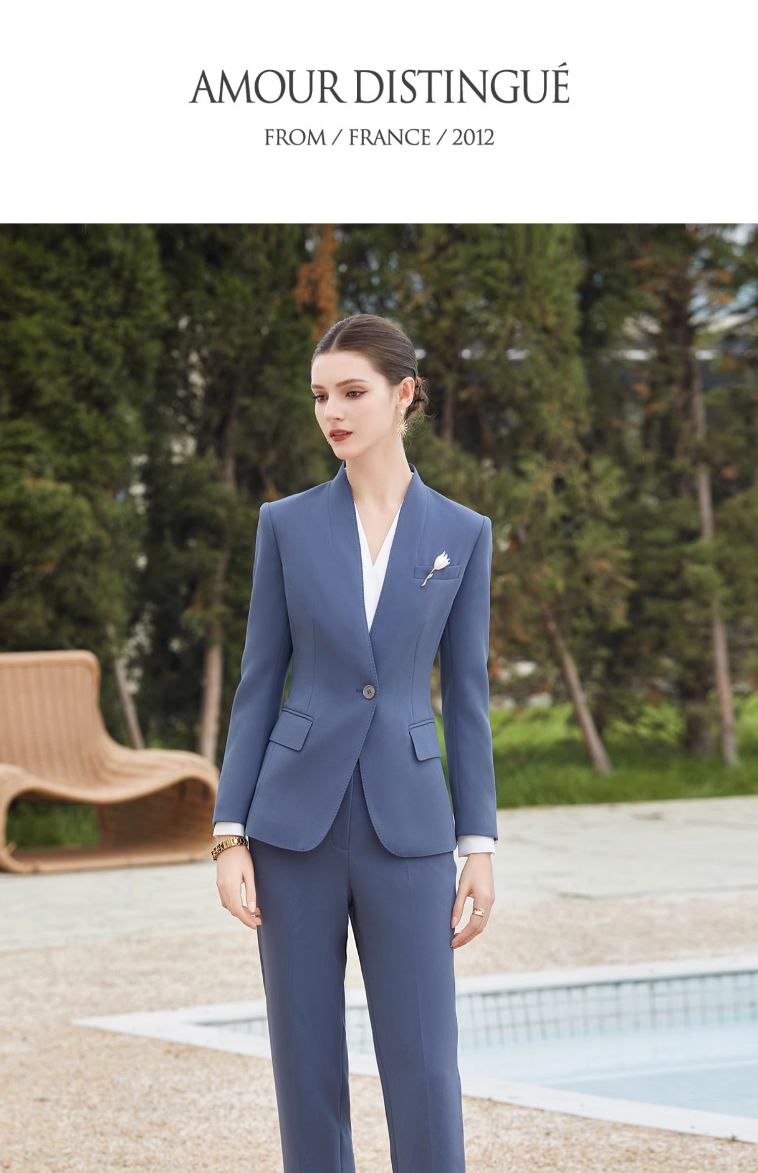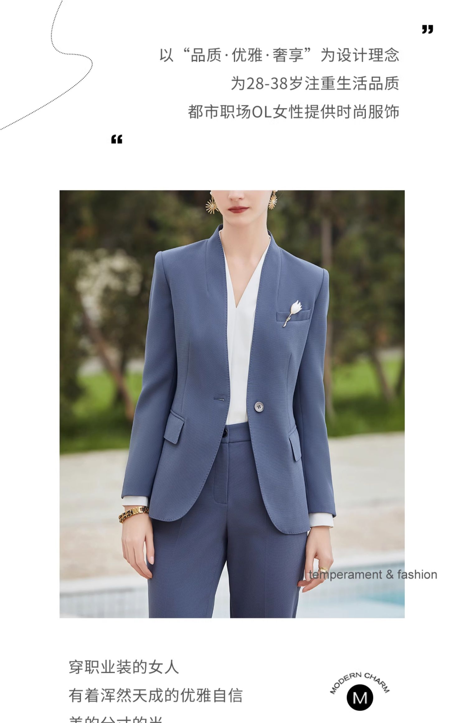 IWY/蓝色高端无领西服外套女士职业装春秋套装女职业装CP2013