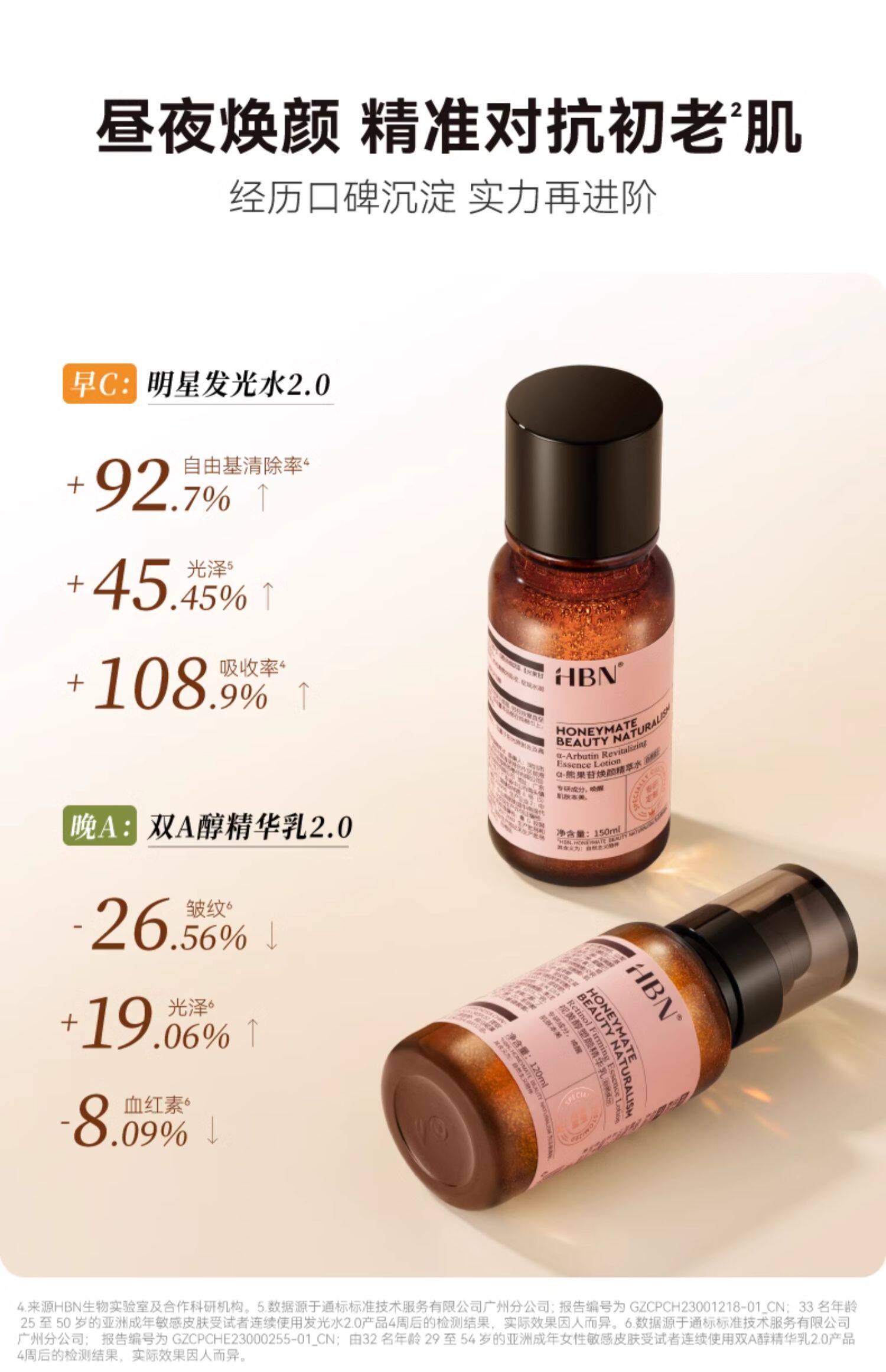 HBN早C晚A水乳套装2.0发光水视黄醇双A醇精华乳