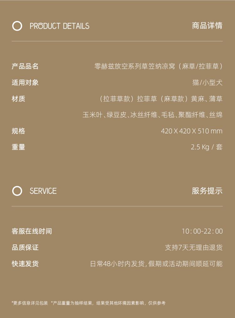 零赫兹草笠纳凉猫窝夏季房子睡垫清凉透气四季别墅可拆洗猫窝镂空