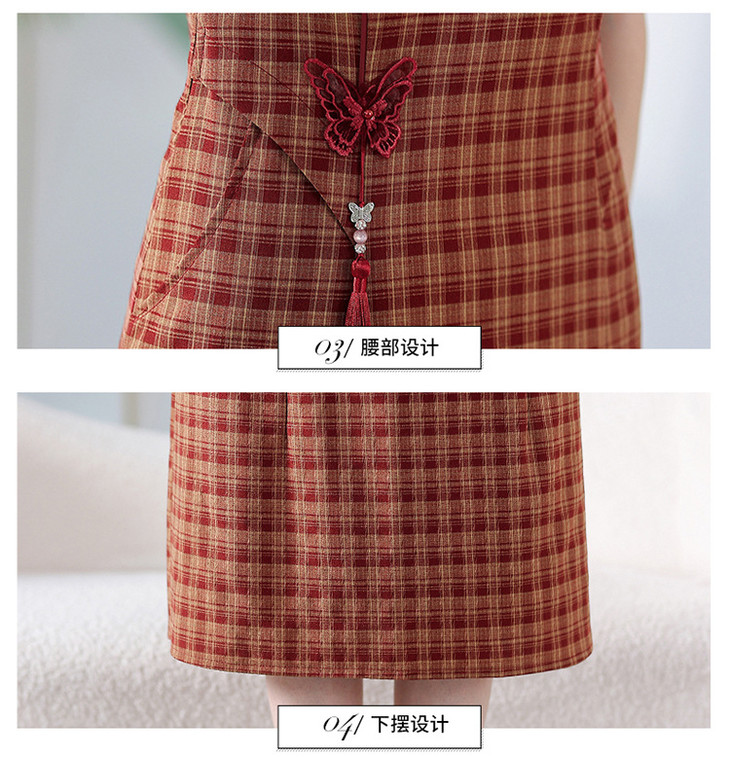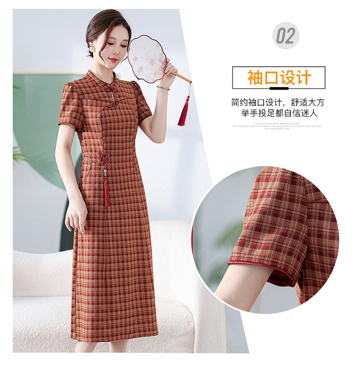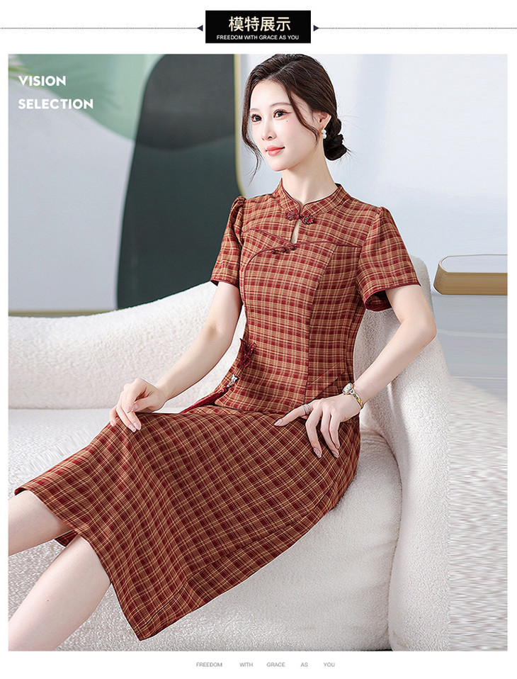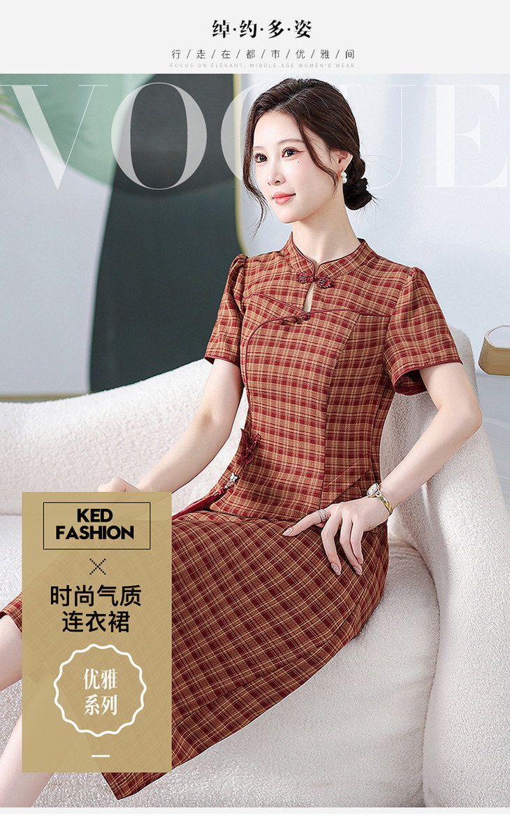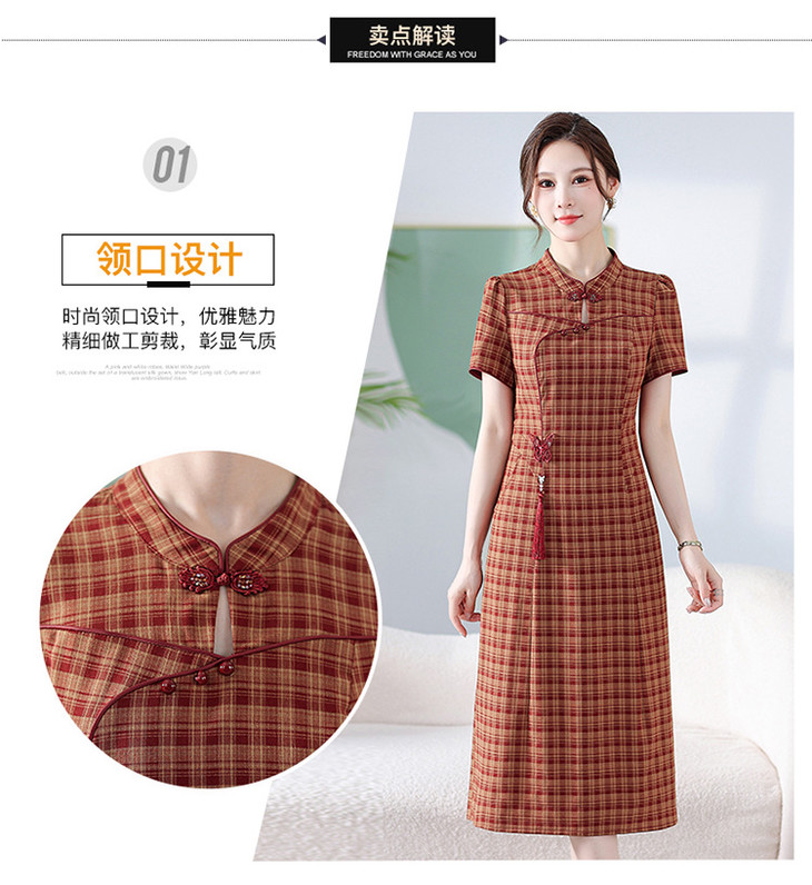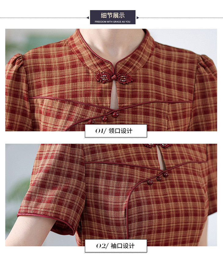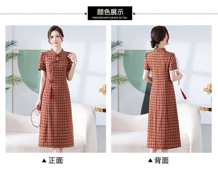 中式旗袍夏款格纹连衣裙QYM-KED-H1962-Y