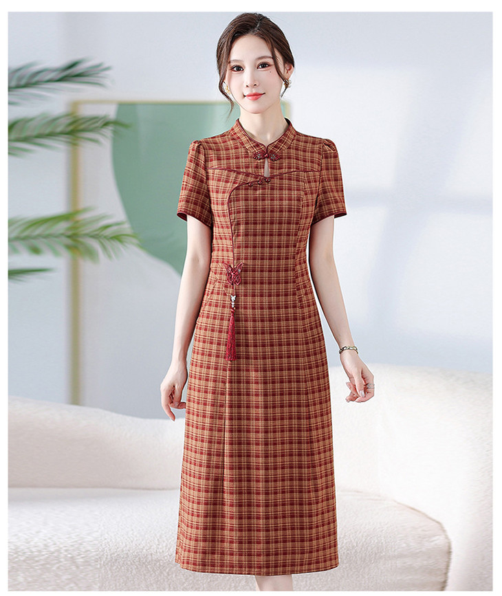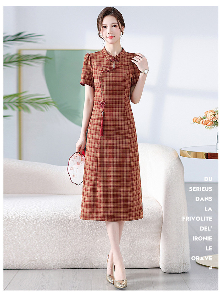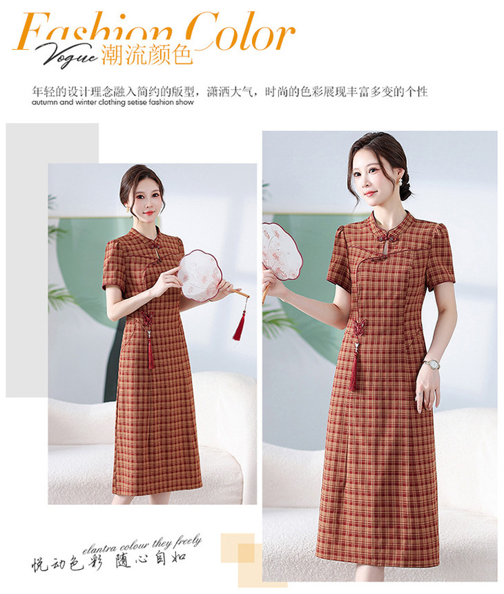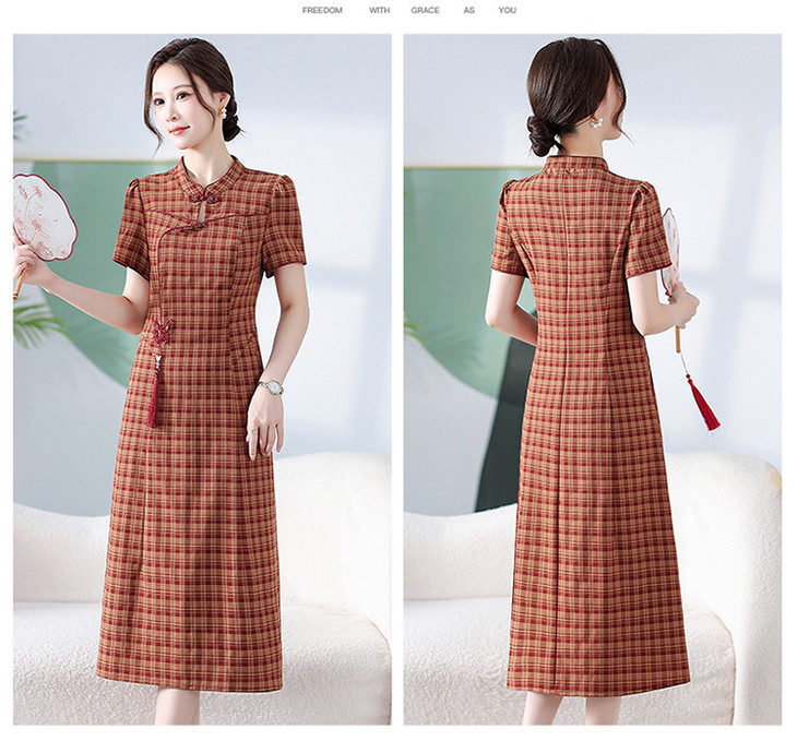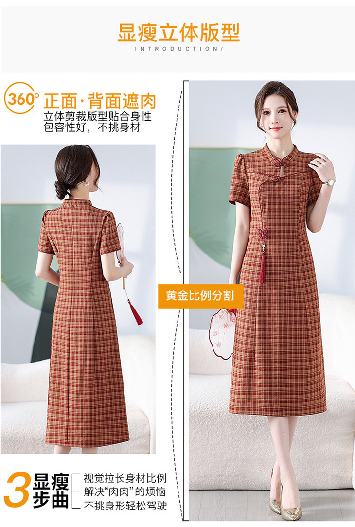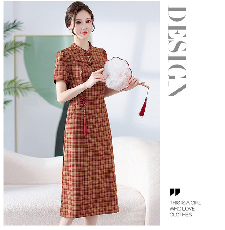 中式旗袍夏款格纹连衣裙QYM-KED-H1962-Y