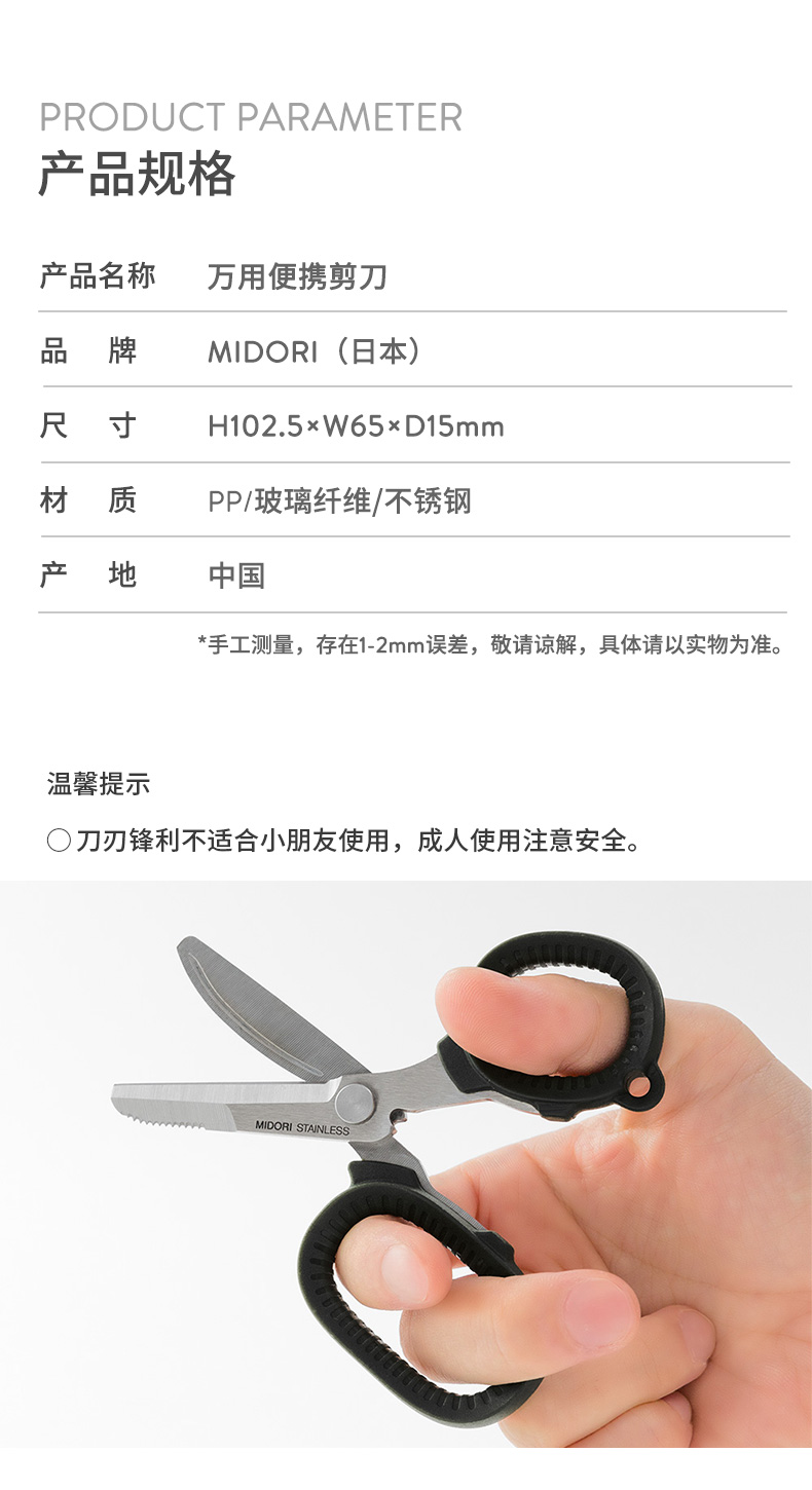 日本MIDORI/万用手工剪刀/安全学生剪刀/便携/办公/家用/钝角小号锋利防滑/剪刀