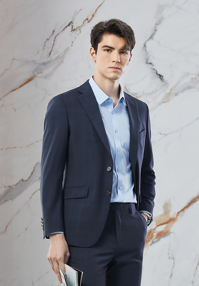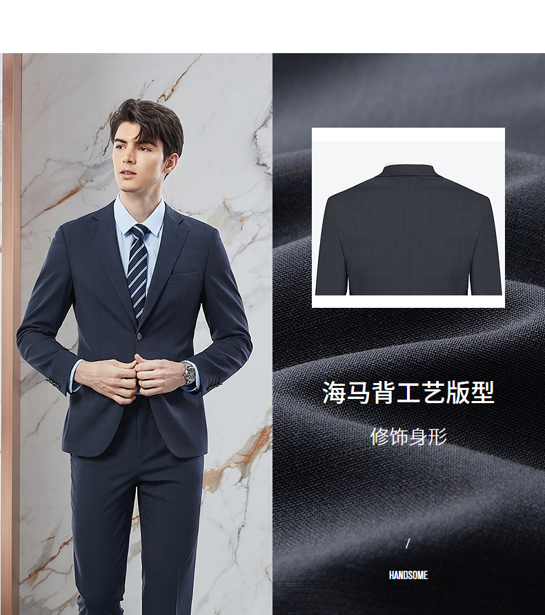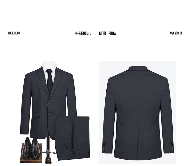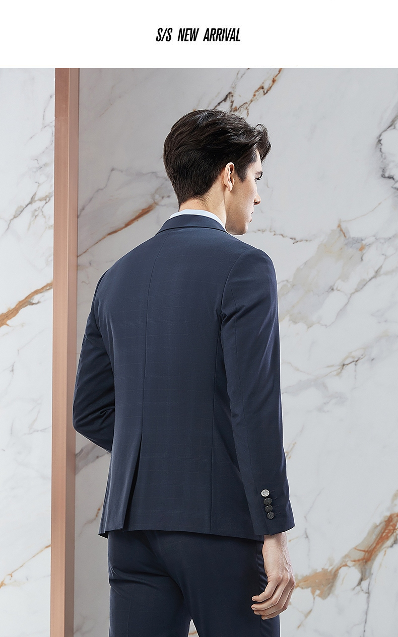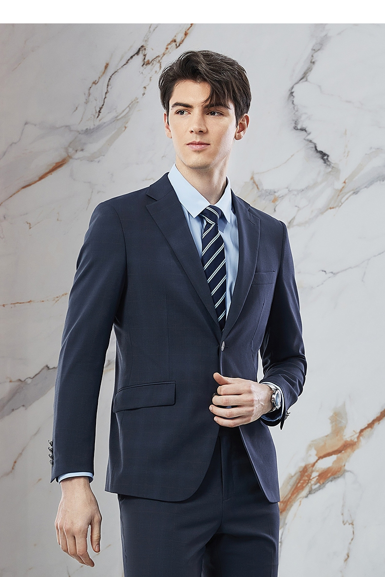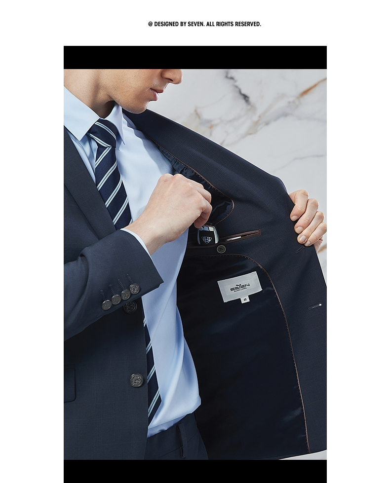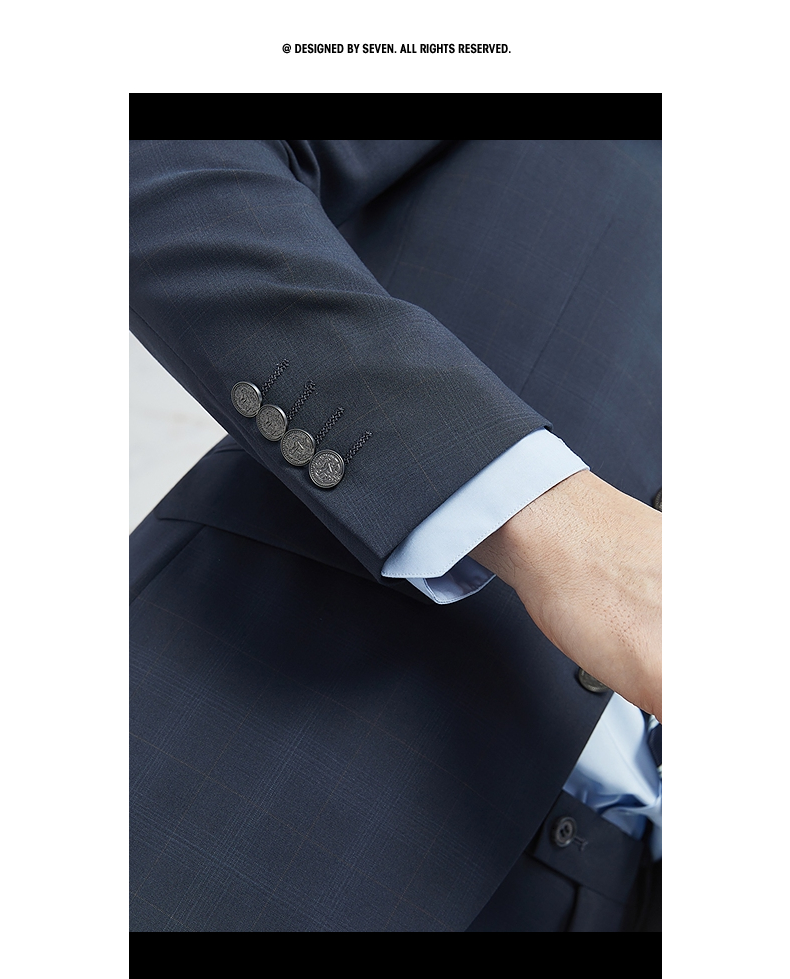 【含羊毛】柒牌男士西服套装商务绅士色织格纹新郎结婚礼服两件套 126C70090